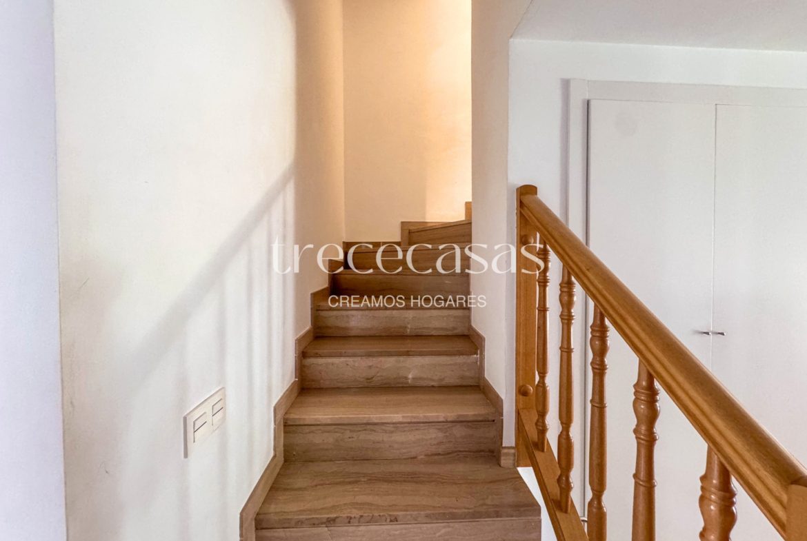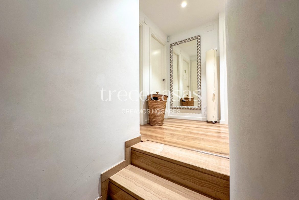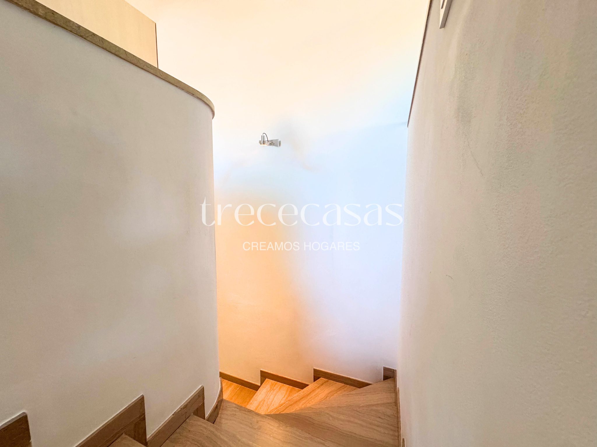 En la planta baja, la zona de día, encontramos una amplia cocina independiente, totalmente equipada, un aseo de cortesía y un salón-comedor luminoso con acceso directo a una terraza privada. Este espacio exterior es perfecto para desayunar al sol, organizar comidas o simplemente desconectar al final del día.