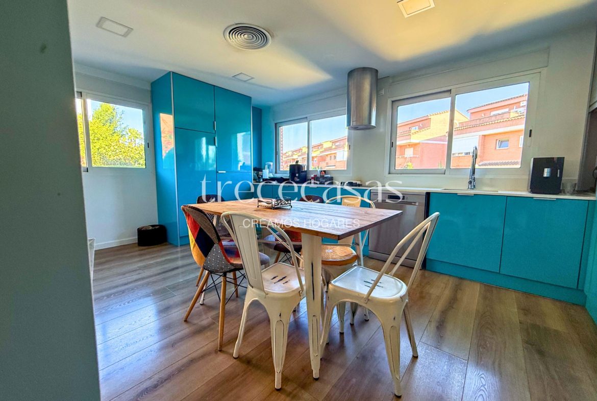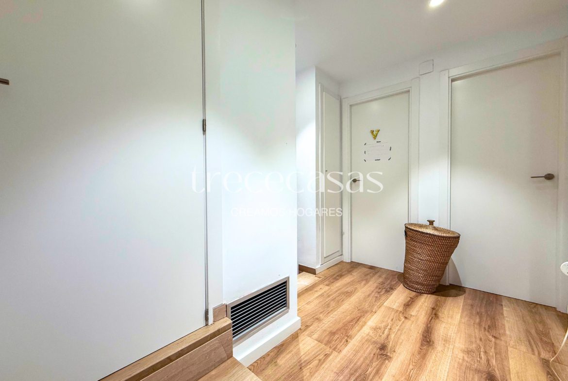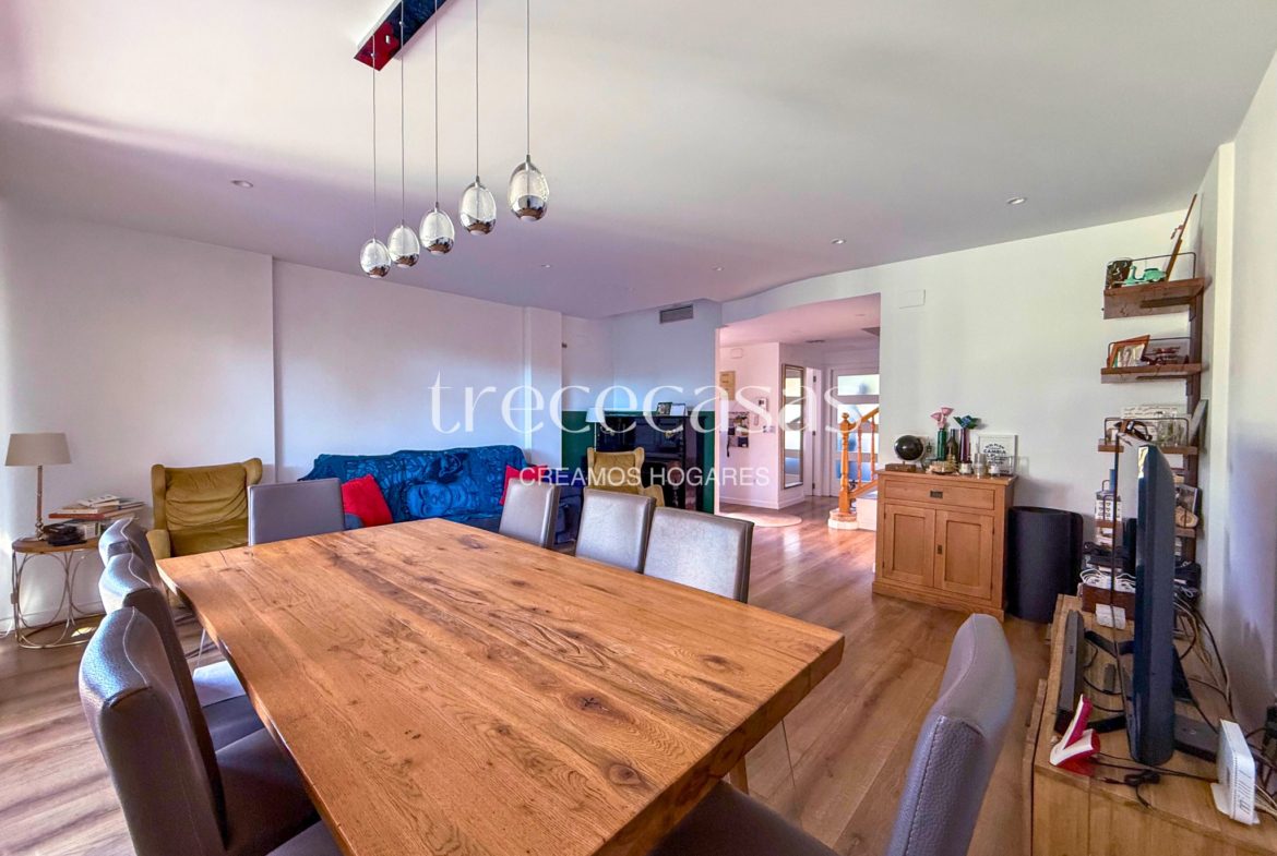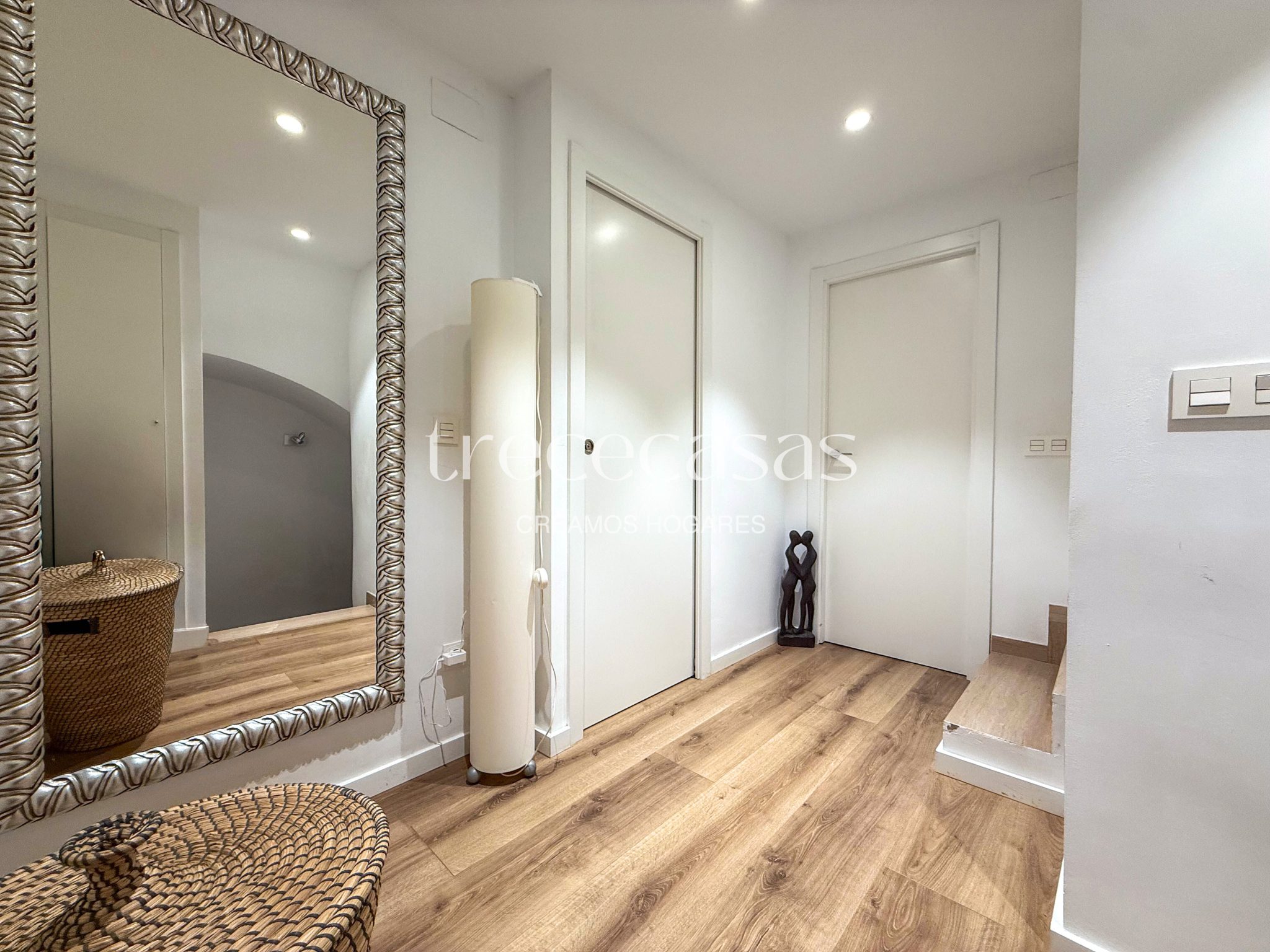 En la planta baja, la zona de día, encontramos una amplia cocina independiente, totalmente equipada, un aseo de cortesía y un salón-comedor luminoso con acceso directo a una terraza privada. Este espacio exterior es perfecto para desayunar al sol, organizar comidas o simplemente desconectar al final del día.