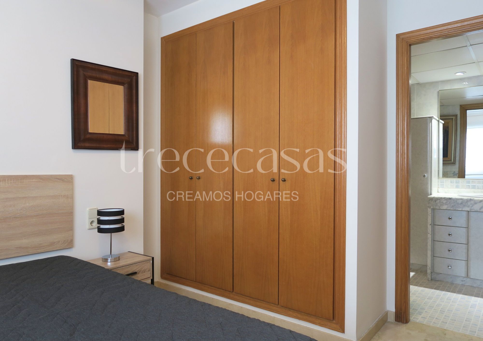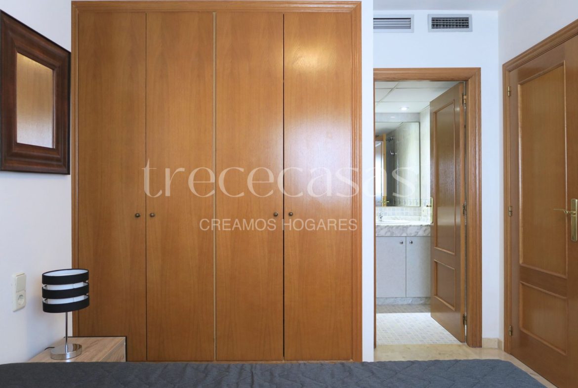 La zona de noche dispone de una habitación doble con baño completo en su interior, pensada para ofrecer intimidad y confort. Los armarios empotrados permiten aprovechar al máximo el espacio, manteniendo el orden y la estética.