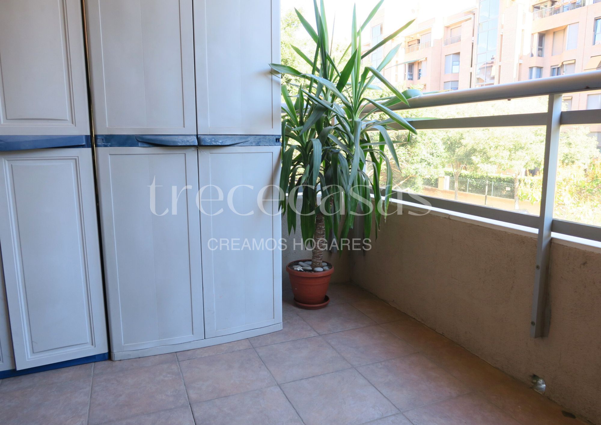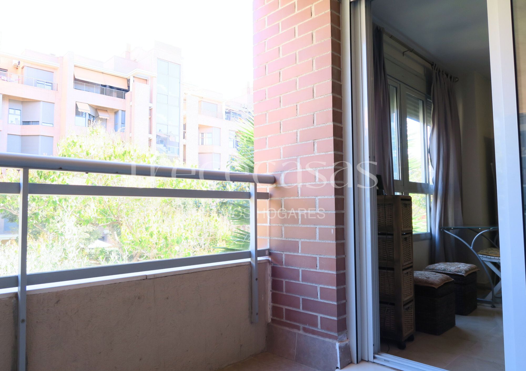 La terraza es el gran valor diferencial de este apartamento en alquiler con terraza en San Pau. Se abre desde el salón y amplía la vida hacia el exterior. Es un espacio ideal para desayunar, descansar después del trabajo o disfrutar del clima mediterráneo durante casi todo el año. Tener plaza de garaje en el mismo edificio añade comodidad, algo que se agradece especialmente en esta zona.