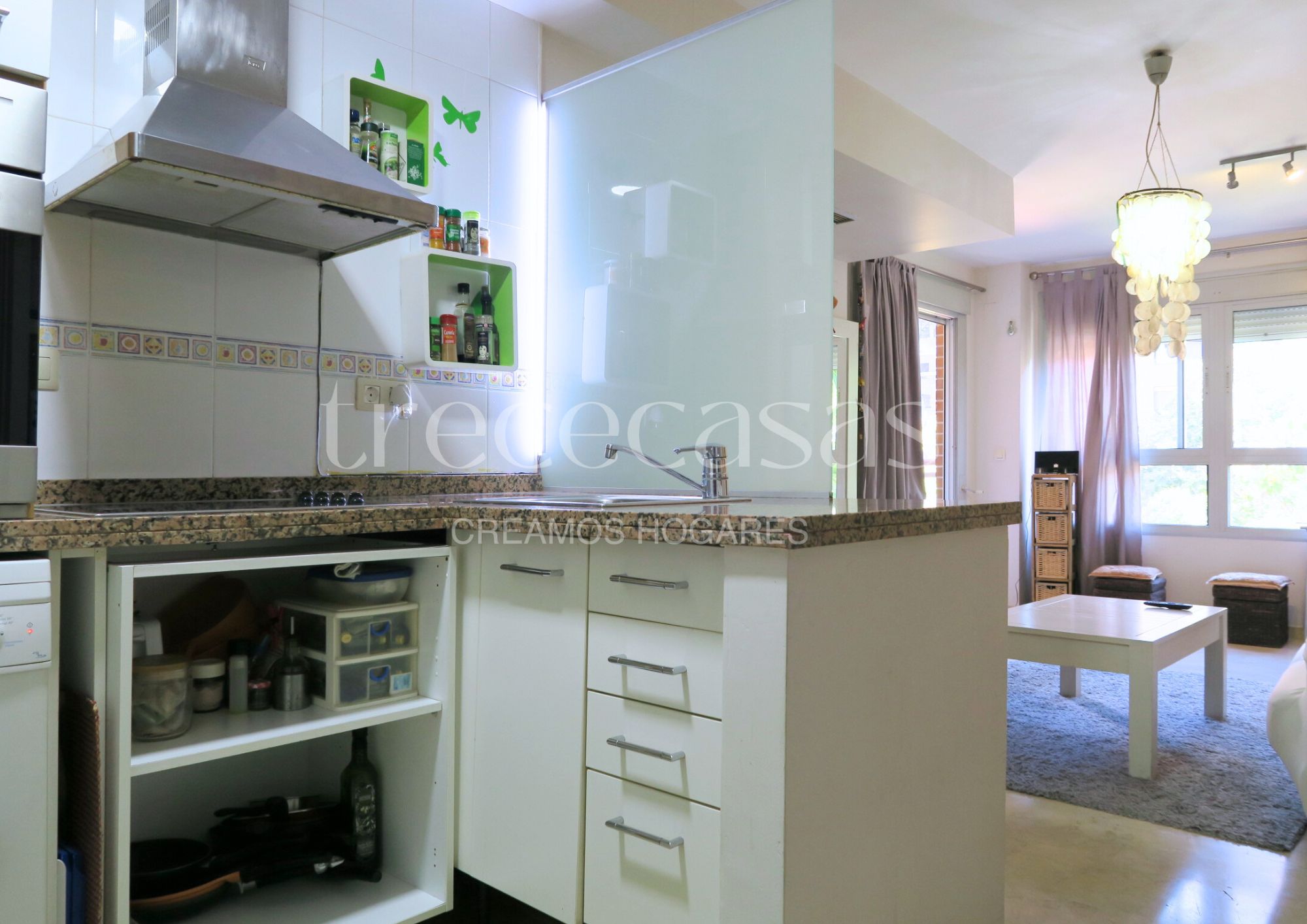 El corazón de la casa es el salón comedor. La luz natural entra con fuerza y se integra con la cocina abierta, lo que crea un ambiente fluido para trabajar, cocinar o recibir visitas. La verdad es que este espacio funciona muy bien como zona social. La habitación doble se concibe como un refugio tranquilo. El baño completo, con acabados actuales, ofrece funcionalidad y una estética cuidada.