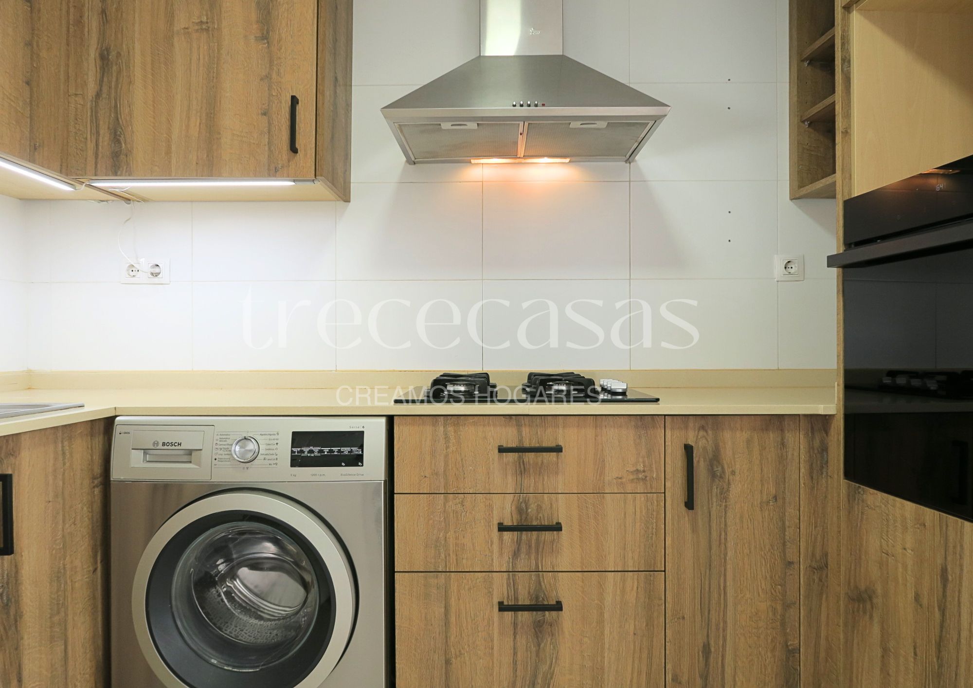 El interior mantiene una estética actual y funcional. Los suelos de parquet aportan calidez y continuidad visual. La carpintería blanca y las paredes despejadas facilitan la entrada de luz. Además, el baño ha sido renovado por completo con un diseño práctico y actual. La orientación favorece una iluminación constante en todas las estancias.