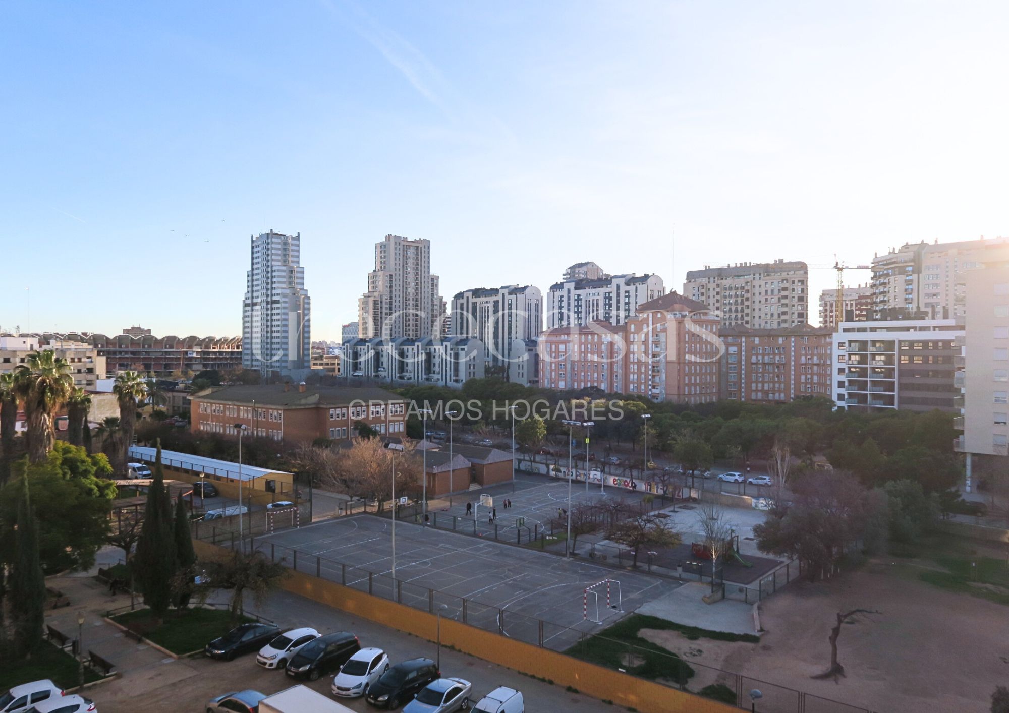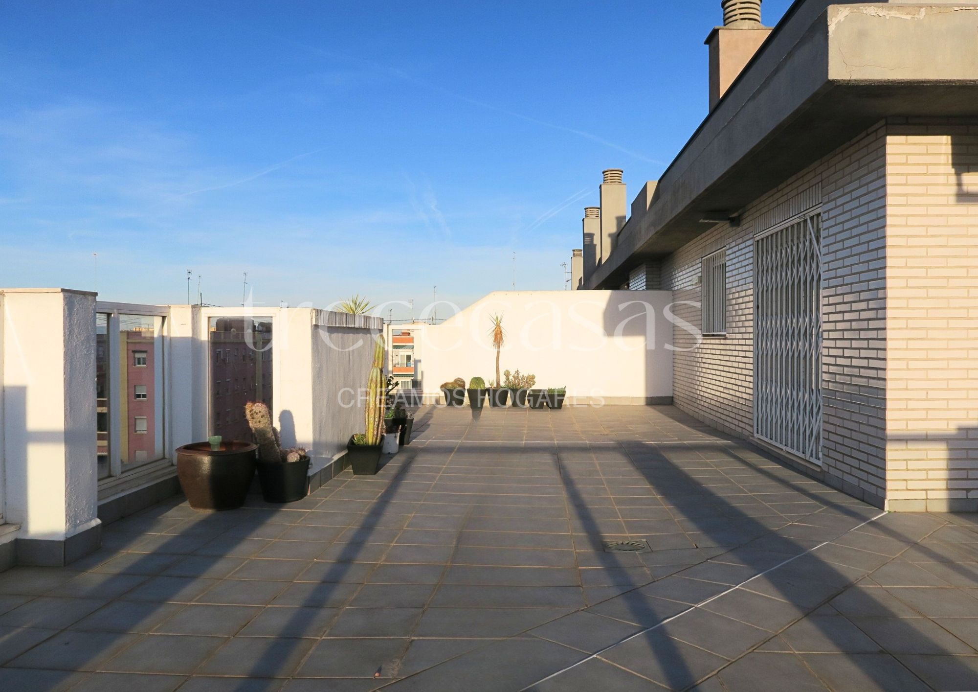La terraza de 80 m² es uno de los grandes valores de este ático dúplex en alquiler en Valencia con terraza. Funciona como una extensión real de la vivienda. Es un espacio pensado para comer al aire libre, leer o simplemente disfrutar del sol. Su tamaño permite distintos usos sin perder comodidad.
