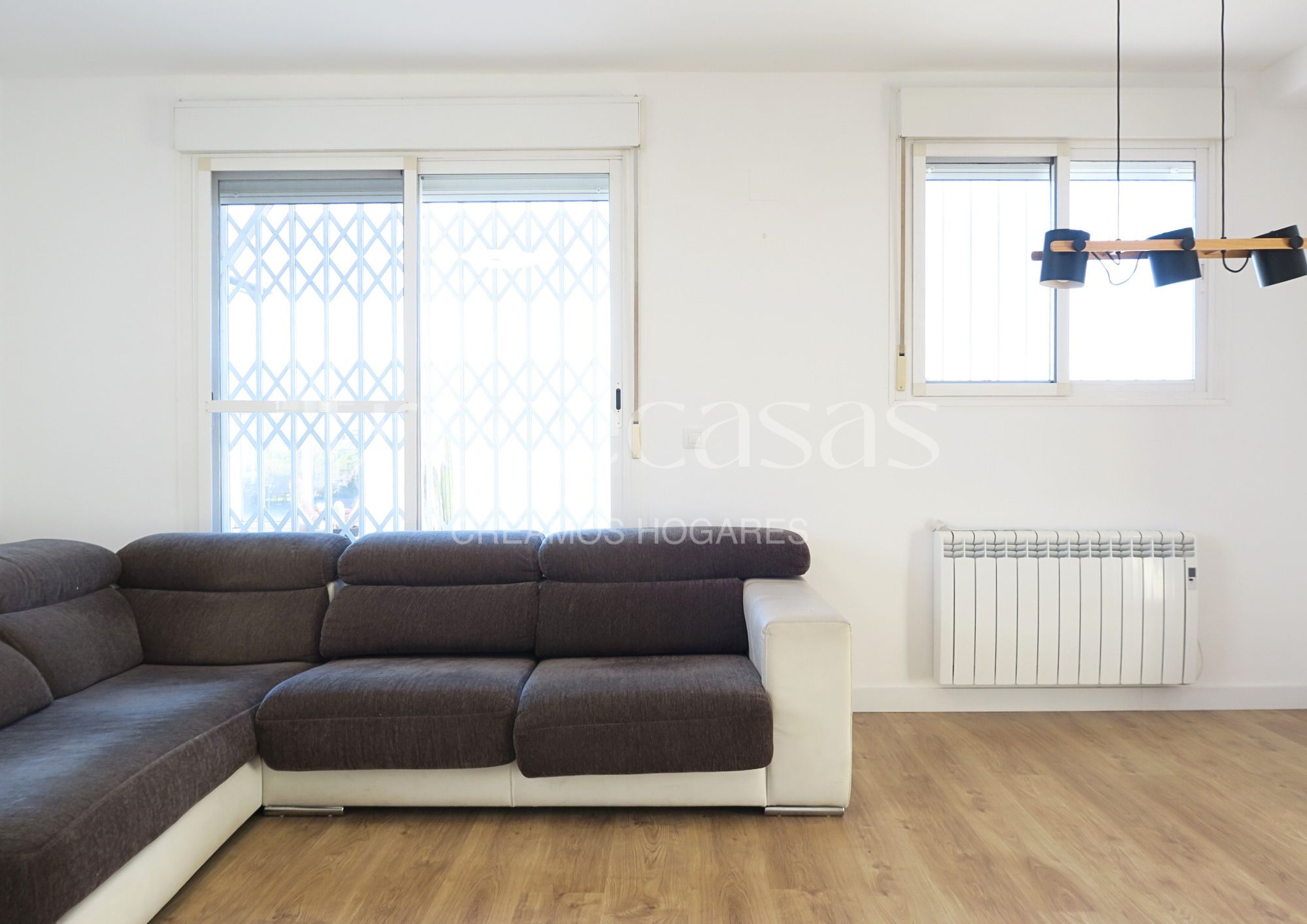 El salón comedor es amplio y recibe luz natural durante gran parte del día. Conecta directamente con el exterior, lo que facilita una vida interior y exterior continua. La planta principal se completa con dos habitaciones bien proporcionadas y una cocina office independiente, reformada recientemente. Esta distribución permite cocinar con calma y mantener la zona social despejada.