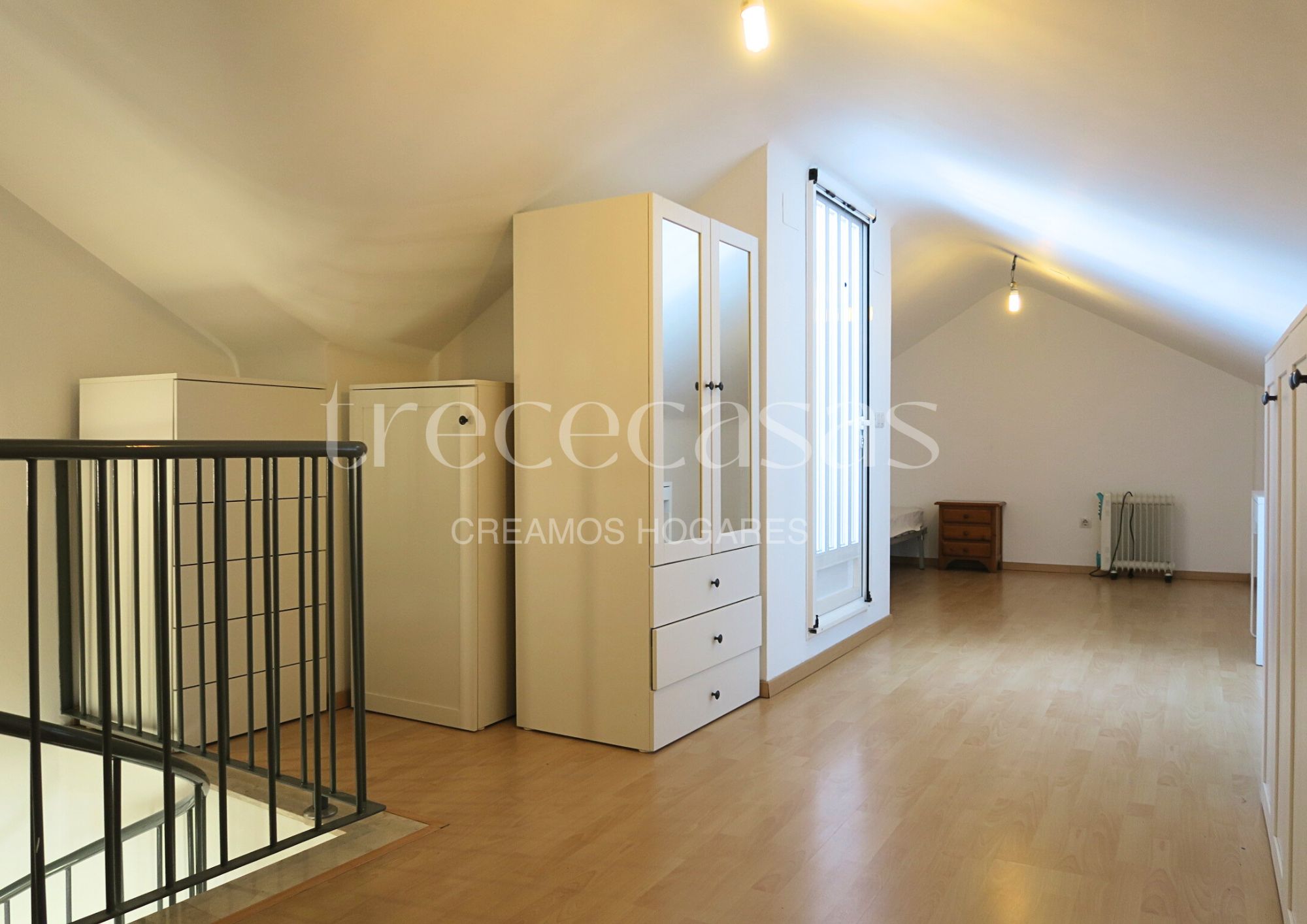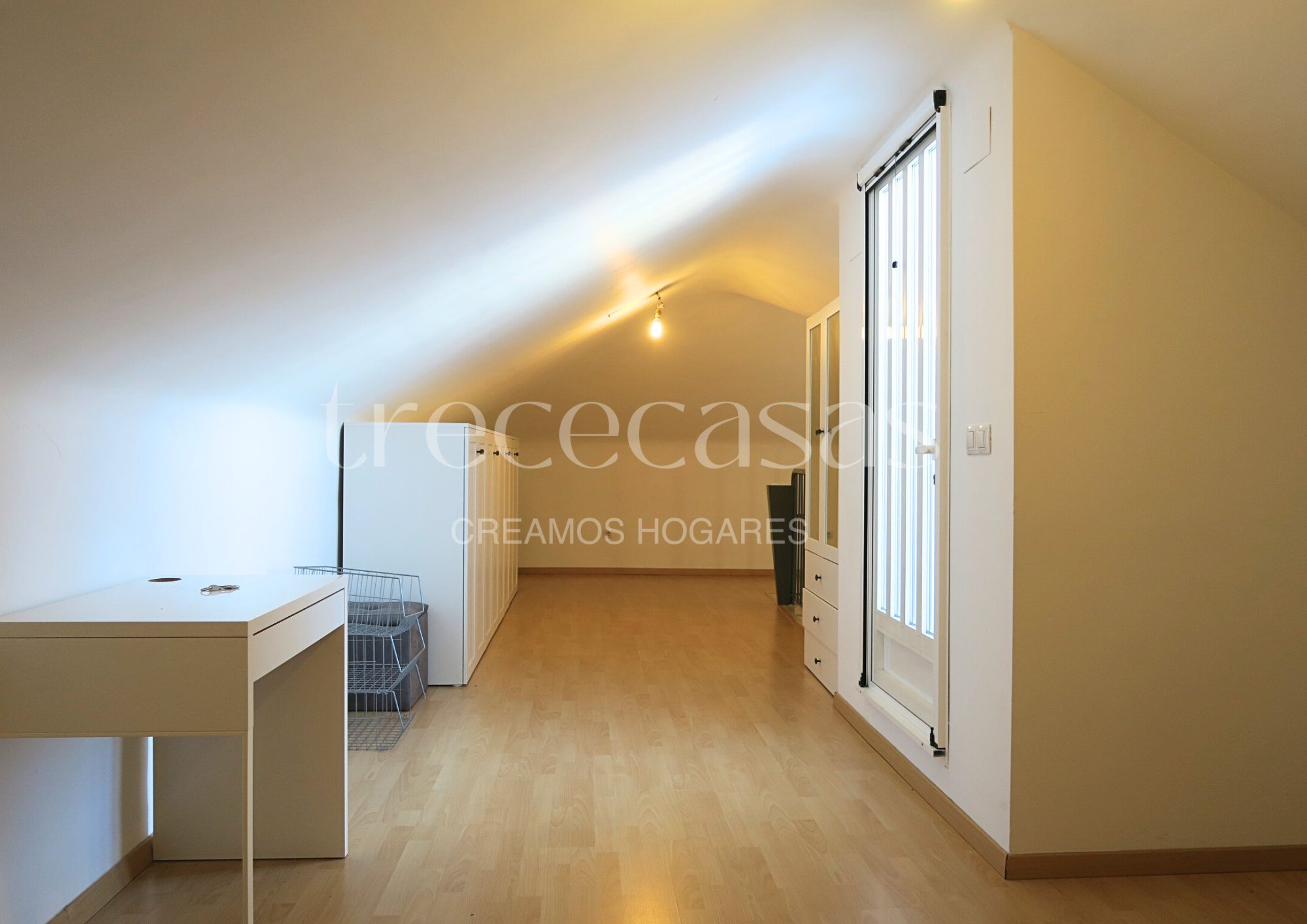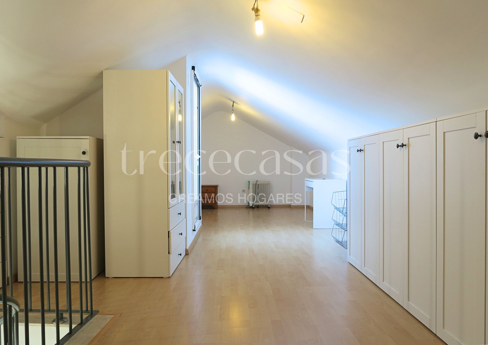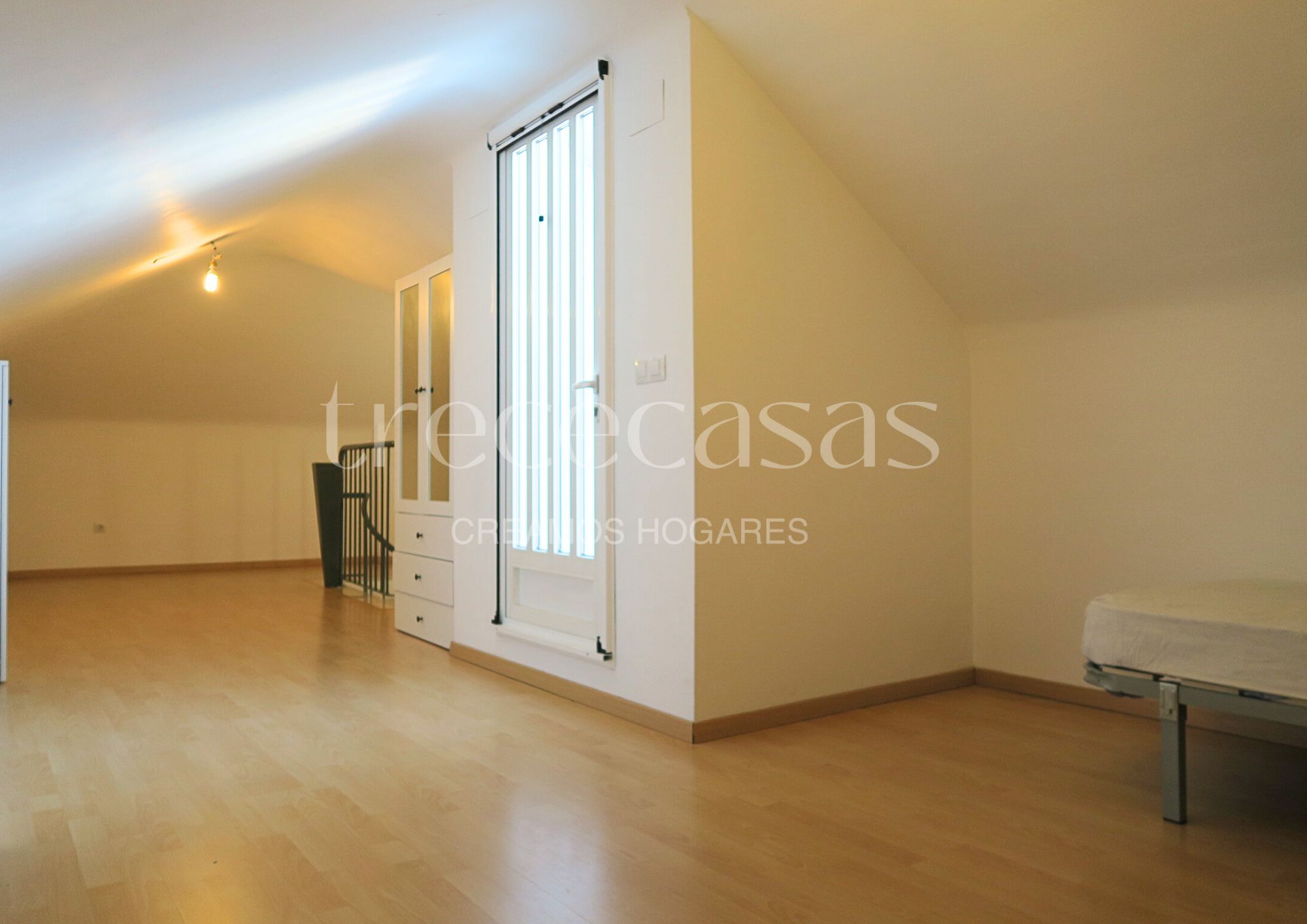 En la planta superior se encuentra una buhardilla diáfana de buen tamaño. Es un espacio flexible que se adapta a diferentes necesidades. Puede funcionar como estudio, zona de ocio o tercer dormitorio independiente. La verdad es que esta planta añade versatilidad sin interferir en la vida diaria.