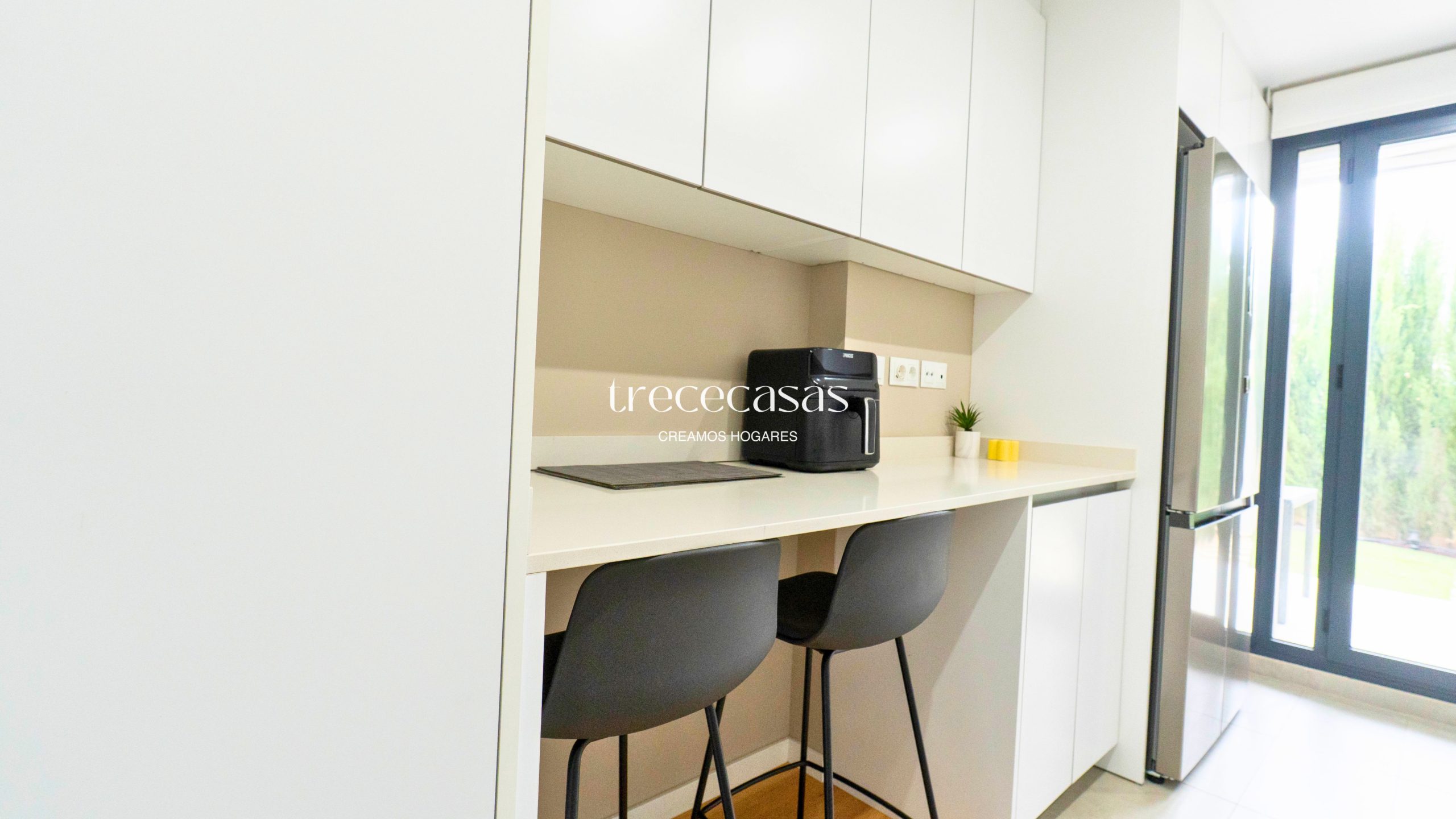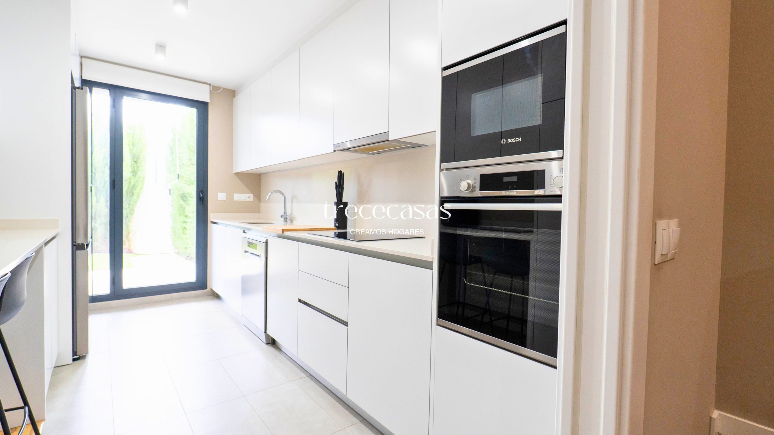 La cocina está completamente equipada, incluyendo lavavajillas. Su diseño permite un uso cómodo y funcional.