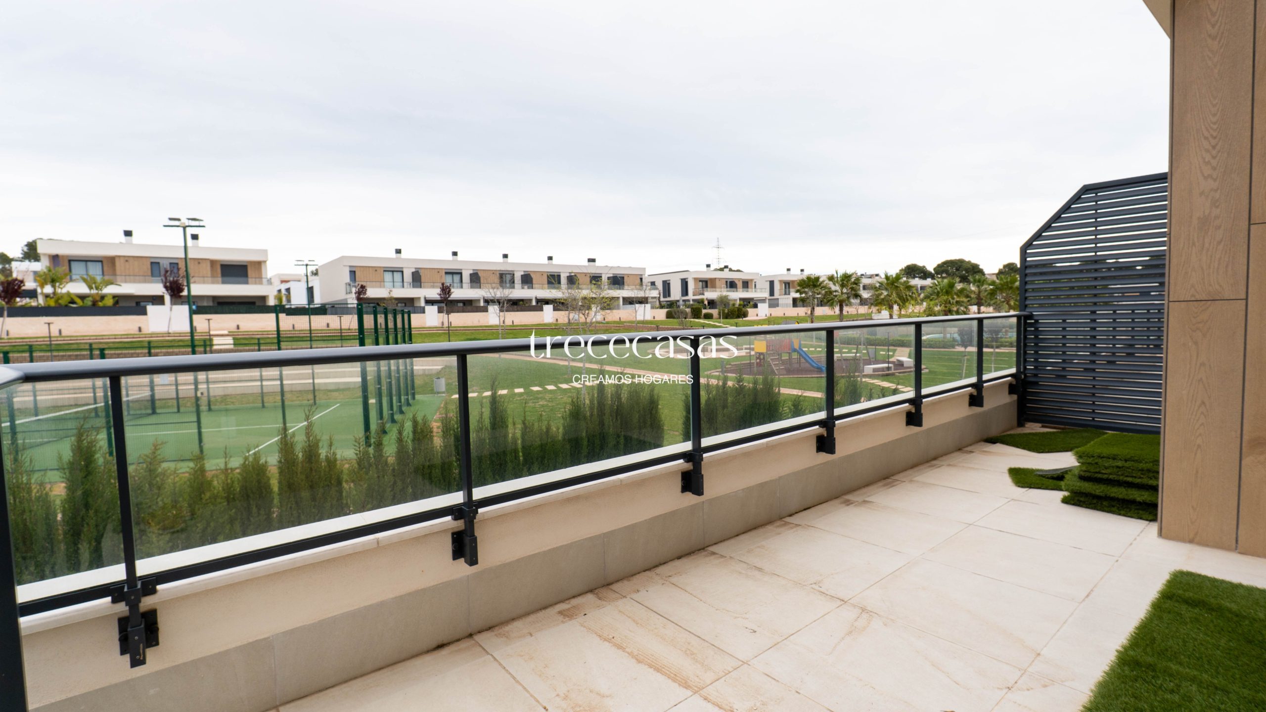 El residencial cuenta con jardín comunitario, piscina, pista de pádel y zona infantil. Estos servicios permiten integrar ocio y descanso en la rutina diaria.