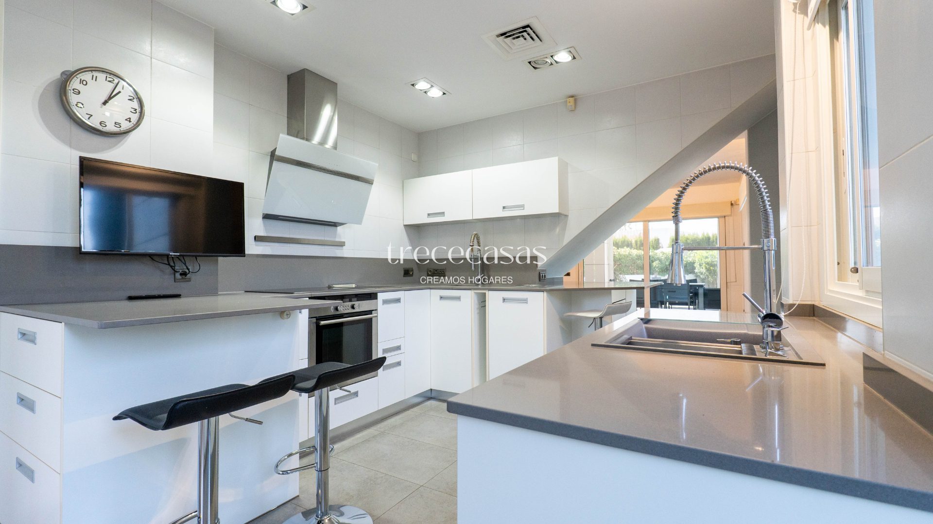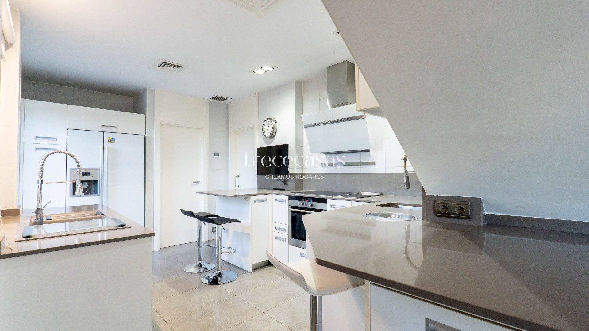 La cocina, totalmente equipada, mantiene una distribución práctica y facilita el uso diario. En la planta superior se concentran las estancias privadas, lo que mejora la organización y la tranquilidad.