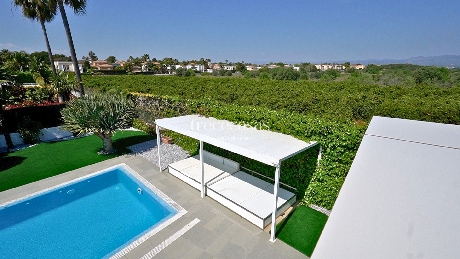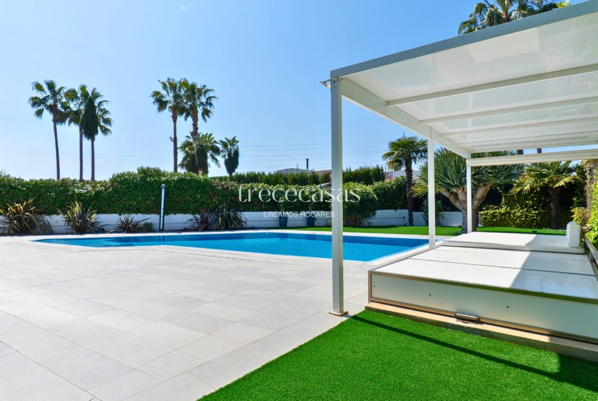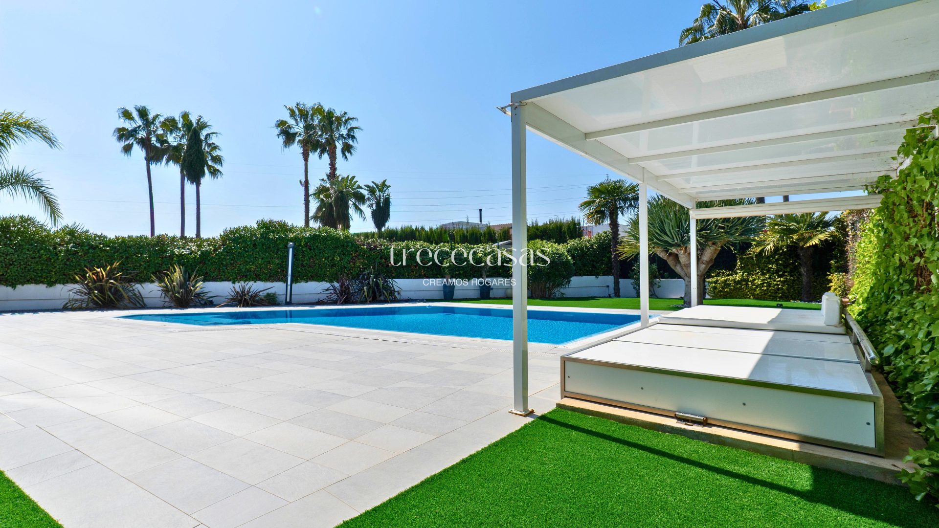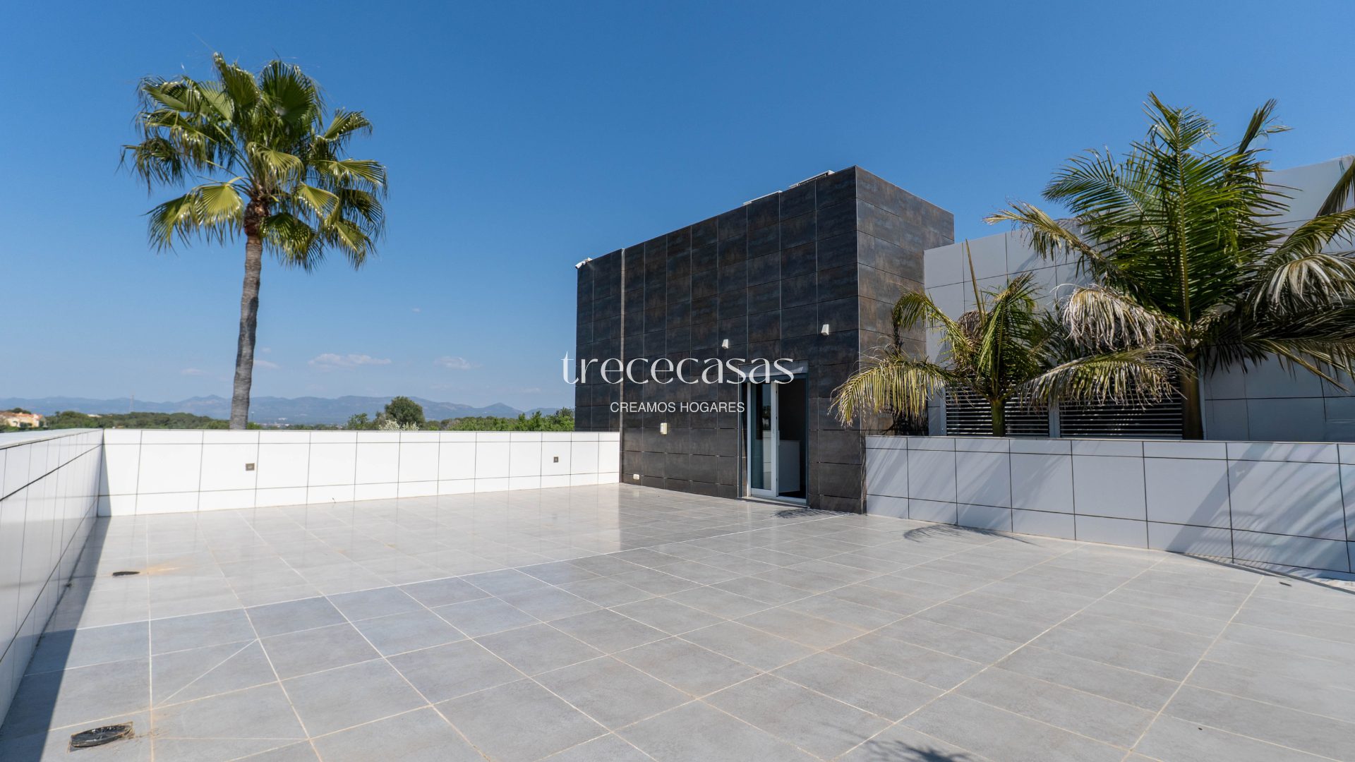 Esta casa moderna en Torre en Conill se sitúa en una urbanización consolidada de Bétera, con seguridad y buena conexión con Valencia. La vivienda se construye sobre una parcela de 868 m² y ofrece 379 m² distribuidos en dos plantas.