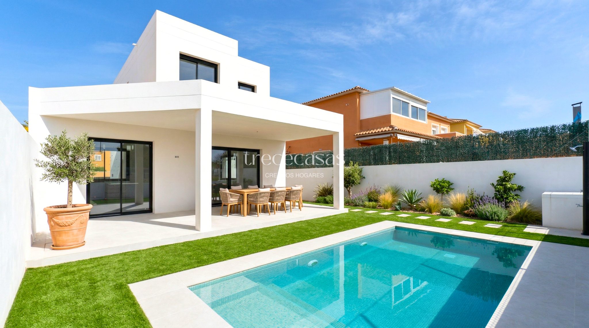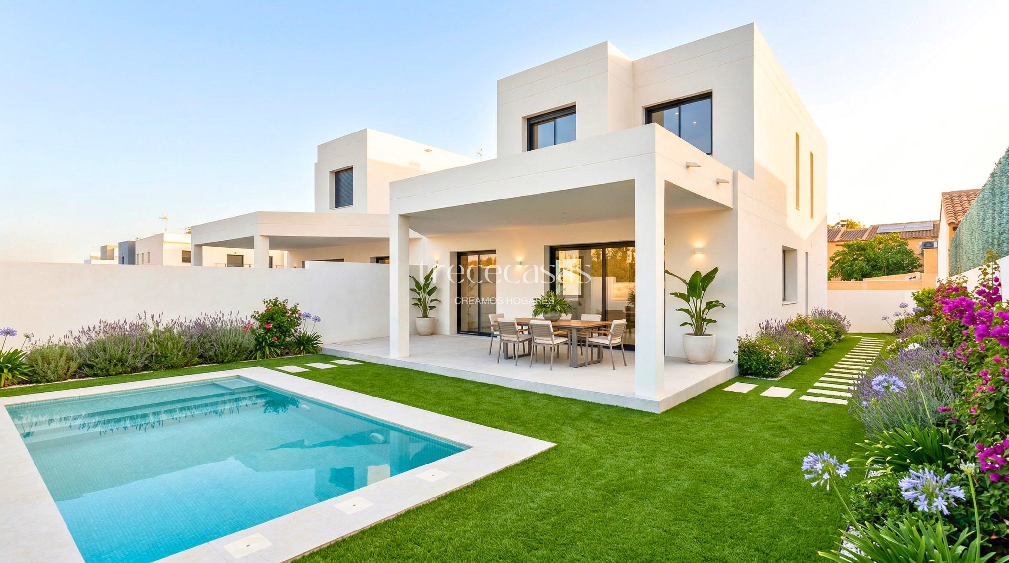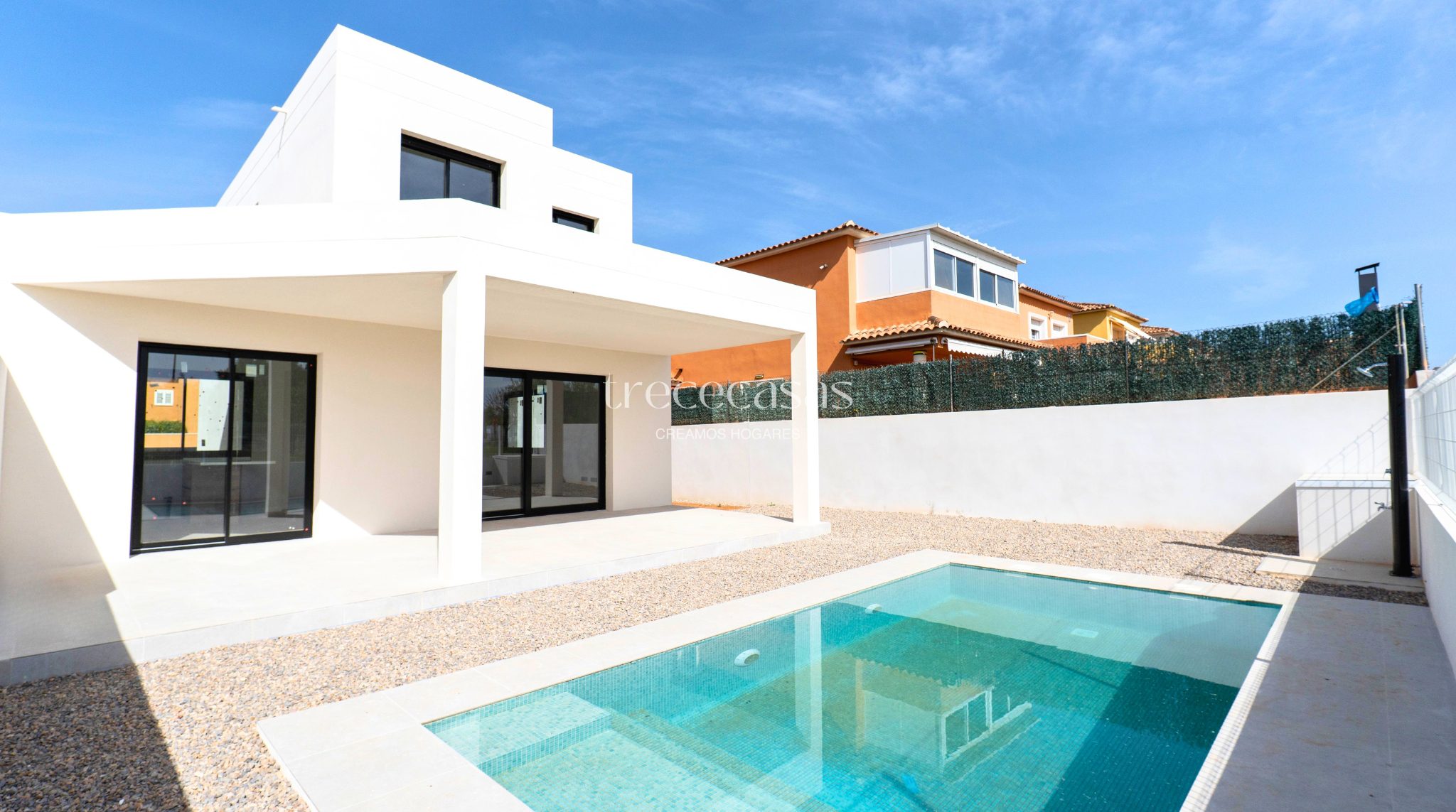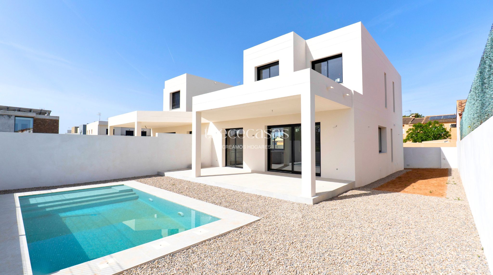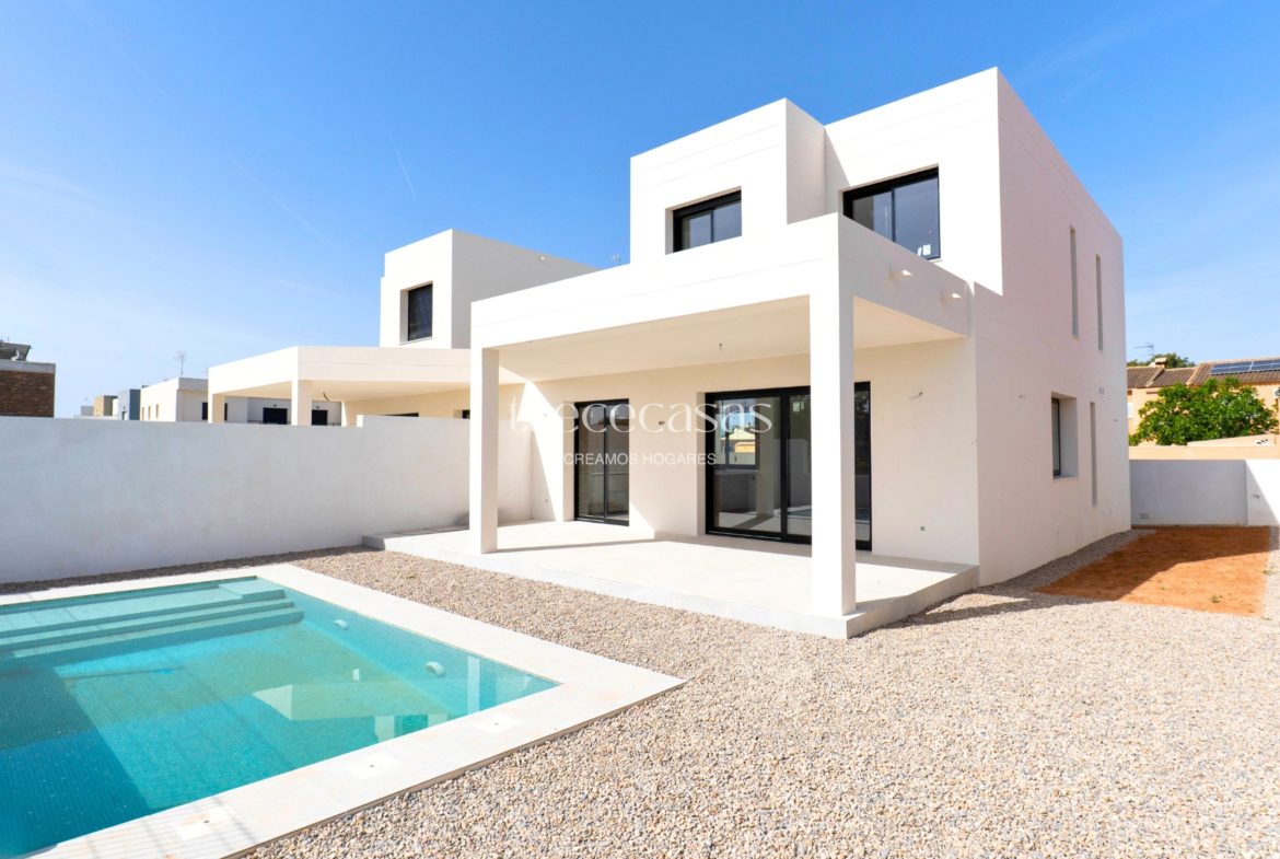 Esta casa moderna con piscina privada combina diseño, eficiencia y distribución en un entorno tranquilo. Es una opción adecuada para quienes buscan una vivienda actual con espacio exterior.