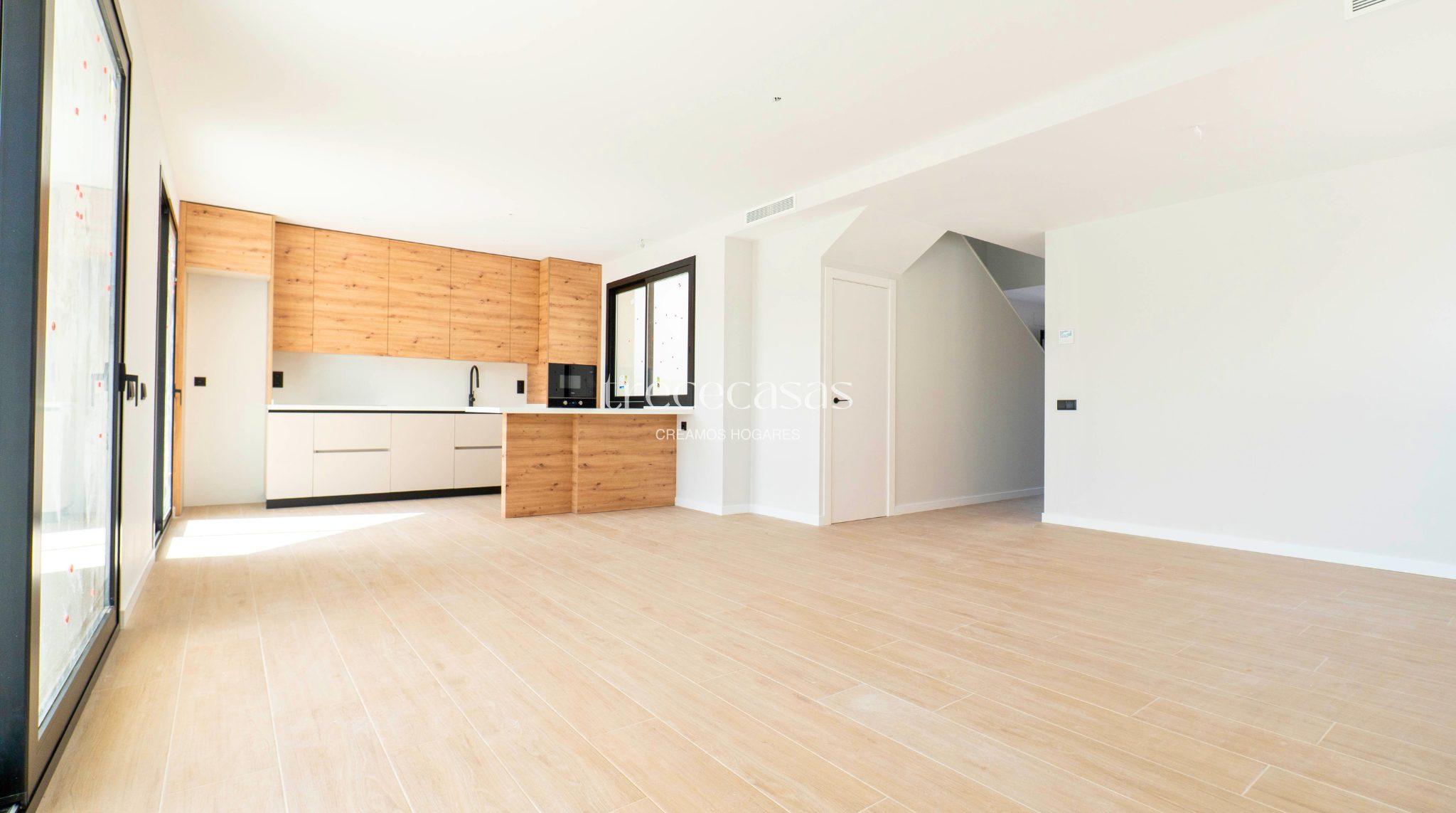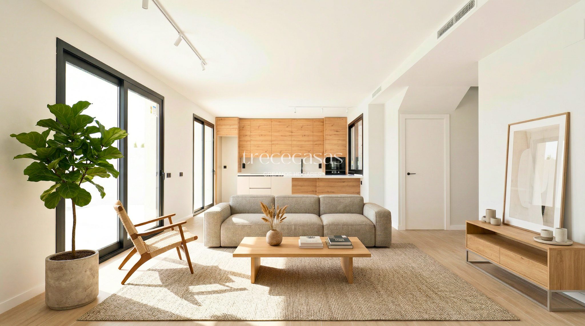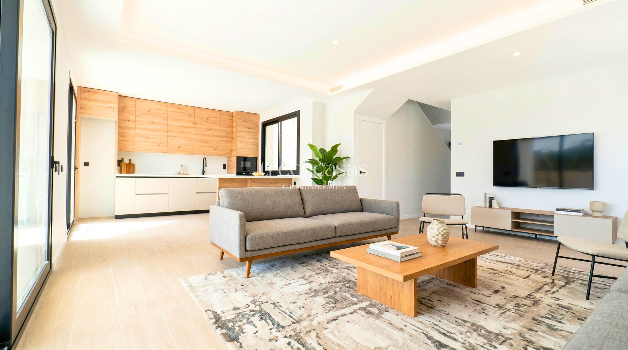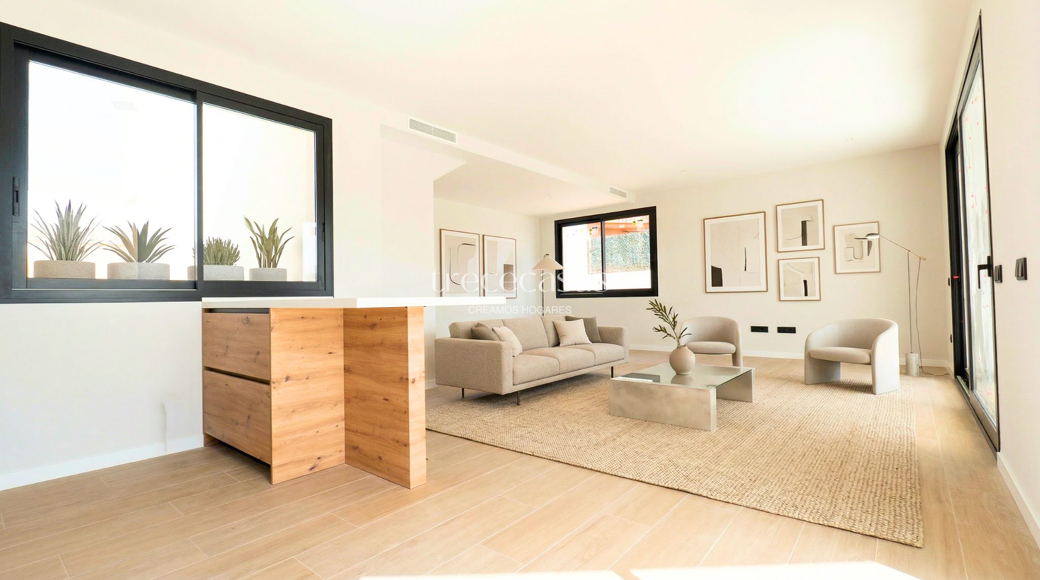 Desde el primer momento, la vivienda transmite equilibrio y claridad. La luz natural entra de forma constante y mejora la sensación de amplitud en cada estancia.