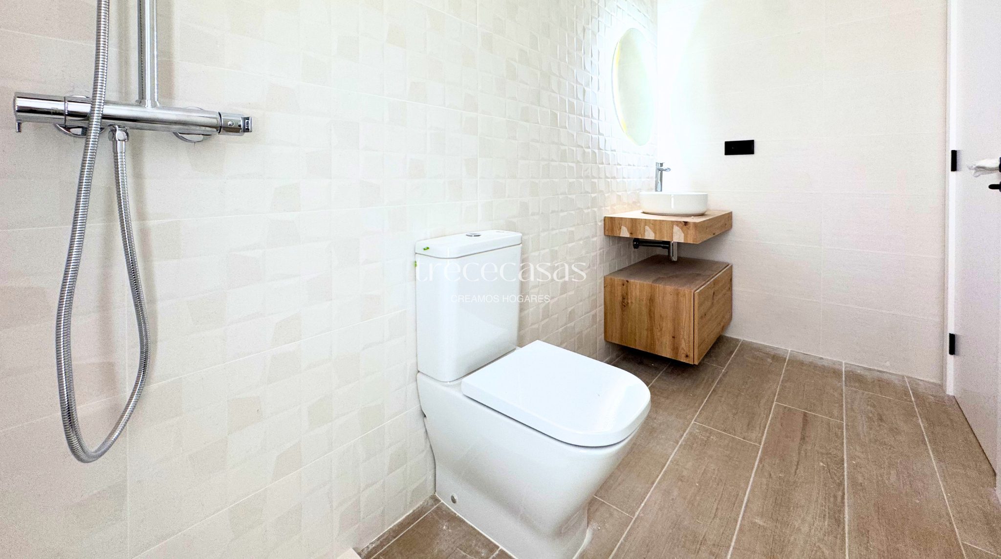 La vivienda incorpora aerotermia, lo que mejora la eficiencia energética. También dispone de aire acondicionado por conductos y suelo porcelánico.