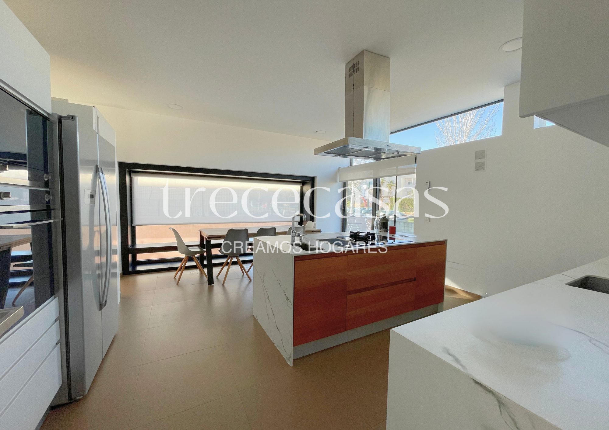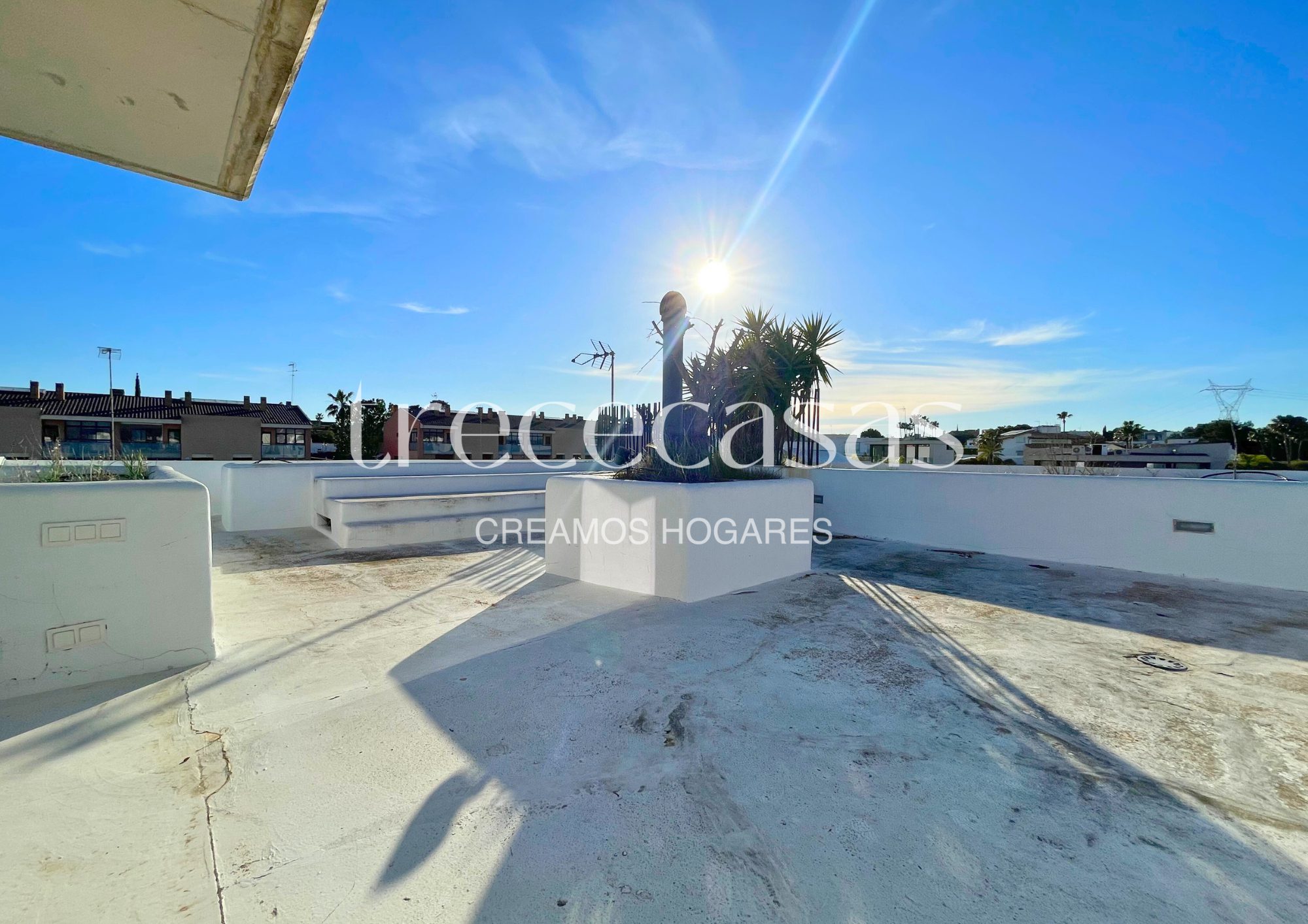El exterior completa la vivienda. El jardín privado incluye piscina exterior y zona de barbacoa. Por otro lado, la terraza solárium permite disfrutar del entorno con vistas abiertas.
