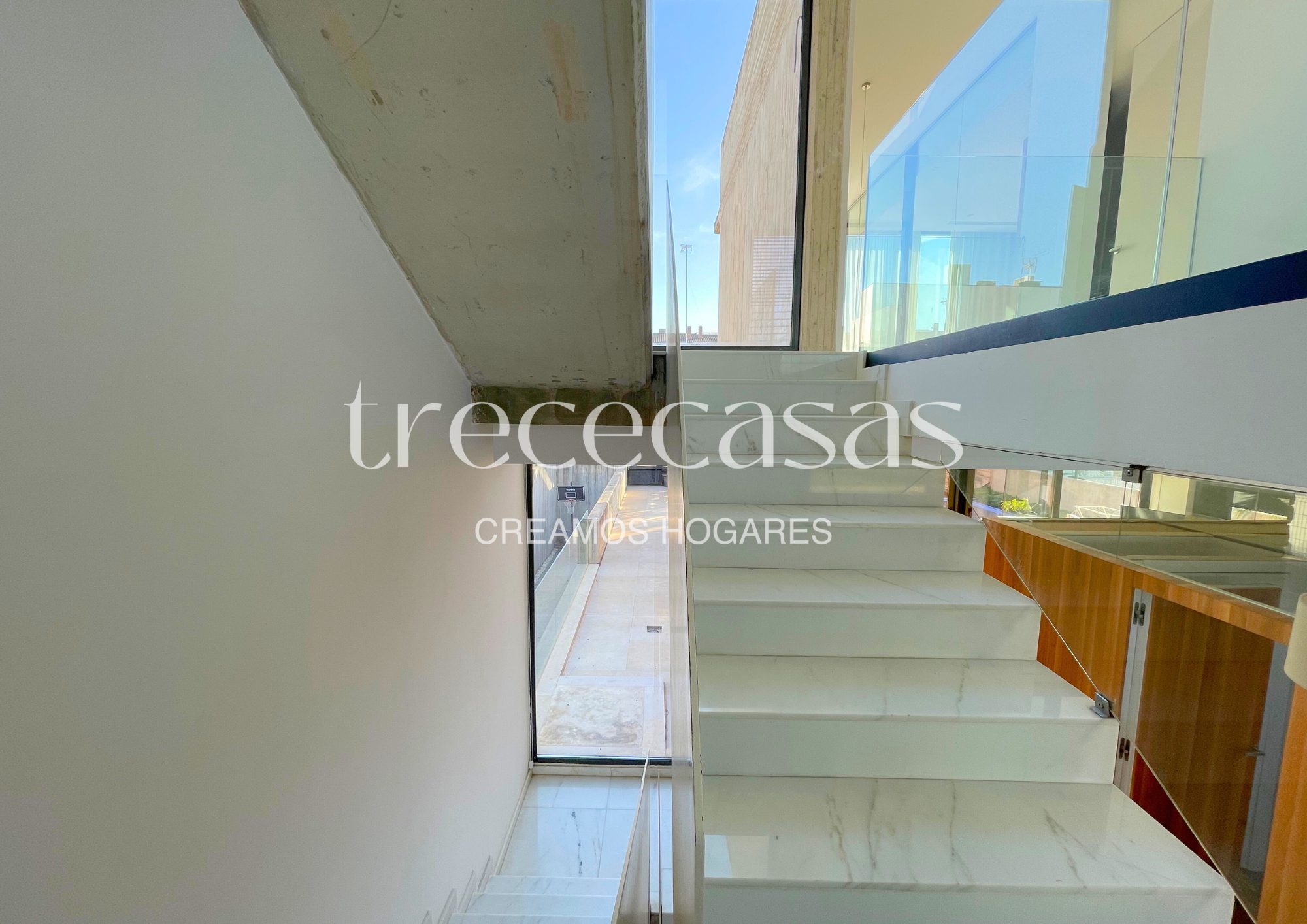 La primera planta alberga la zona de descanso. Esta casa moderna en Torre en Conill dispone de tres dormitorios bien proporcionados.