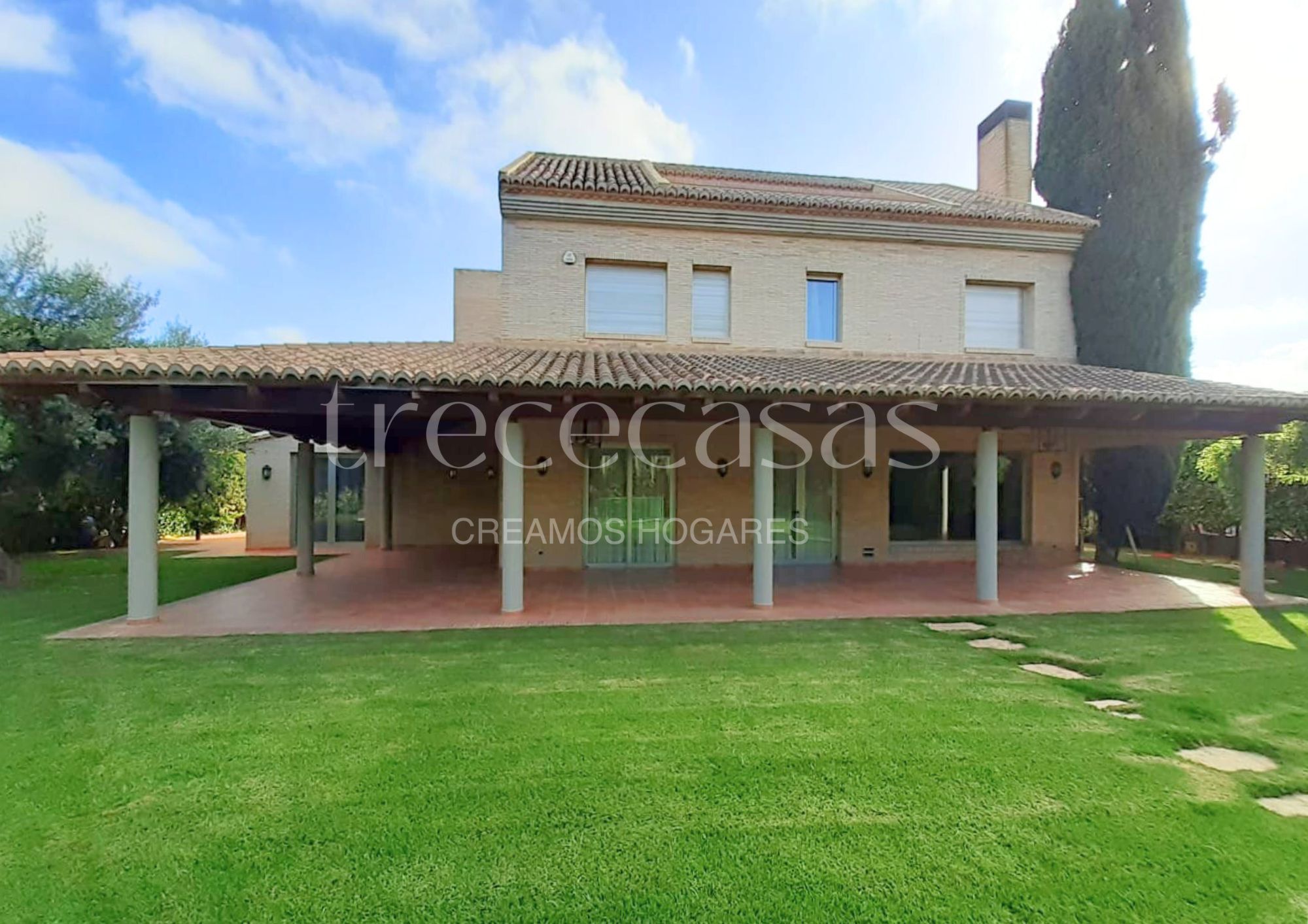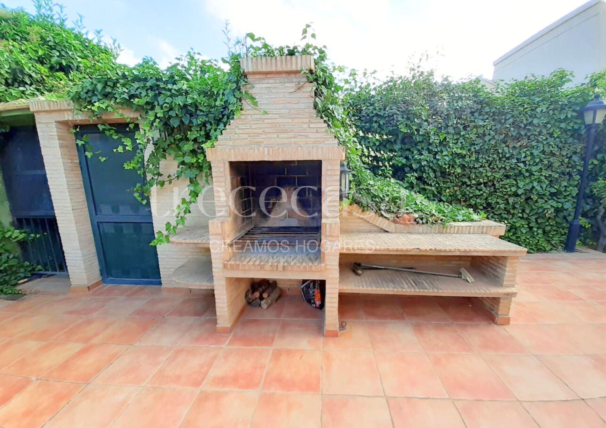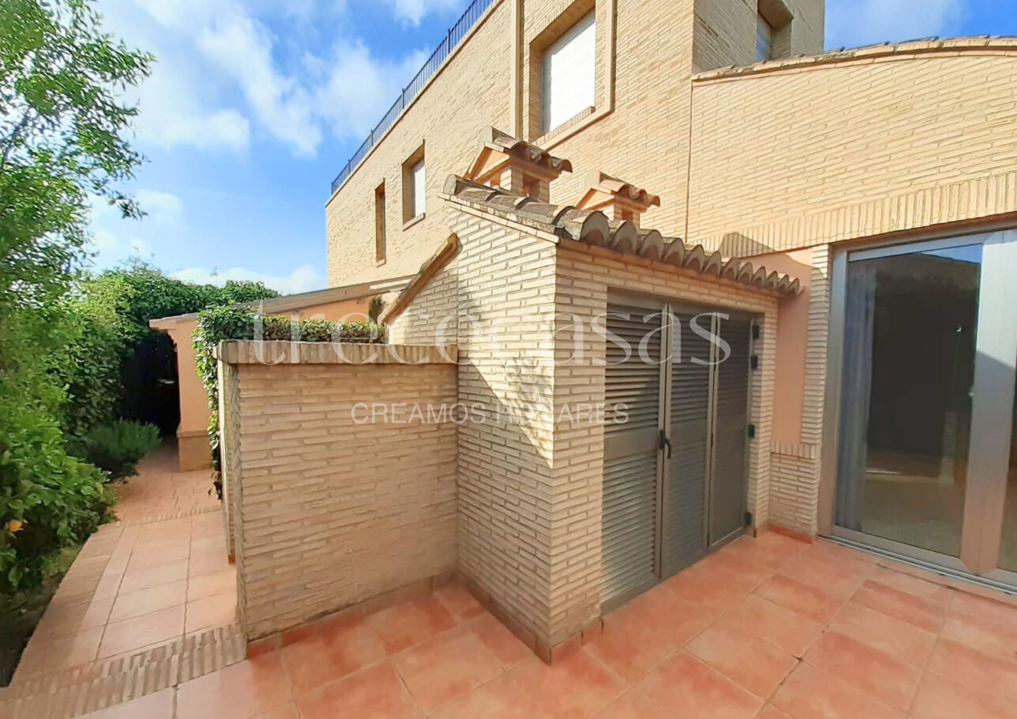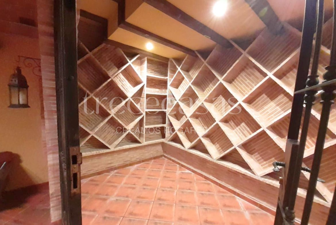La parcela de 1.150 m² alberga una construcción sólida de ladrillo visto, distribuida en tres plantas y rodeada de un entorno cuidado con piscina privada, amplio porche, zona de barbacoa y espacio cubierto de estacionamiento. Además, el jardín conecta con una bodega con bóvedas de ladrillo, un rincón con carácter propio pensado para los amantes del vino.