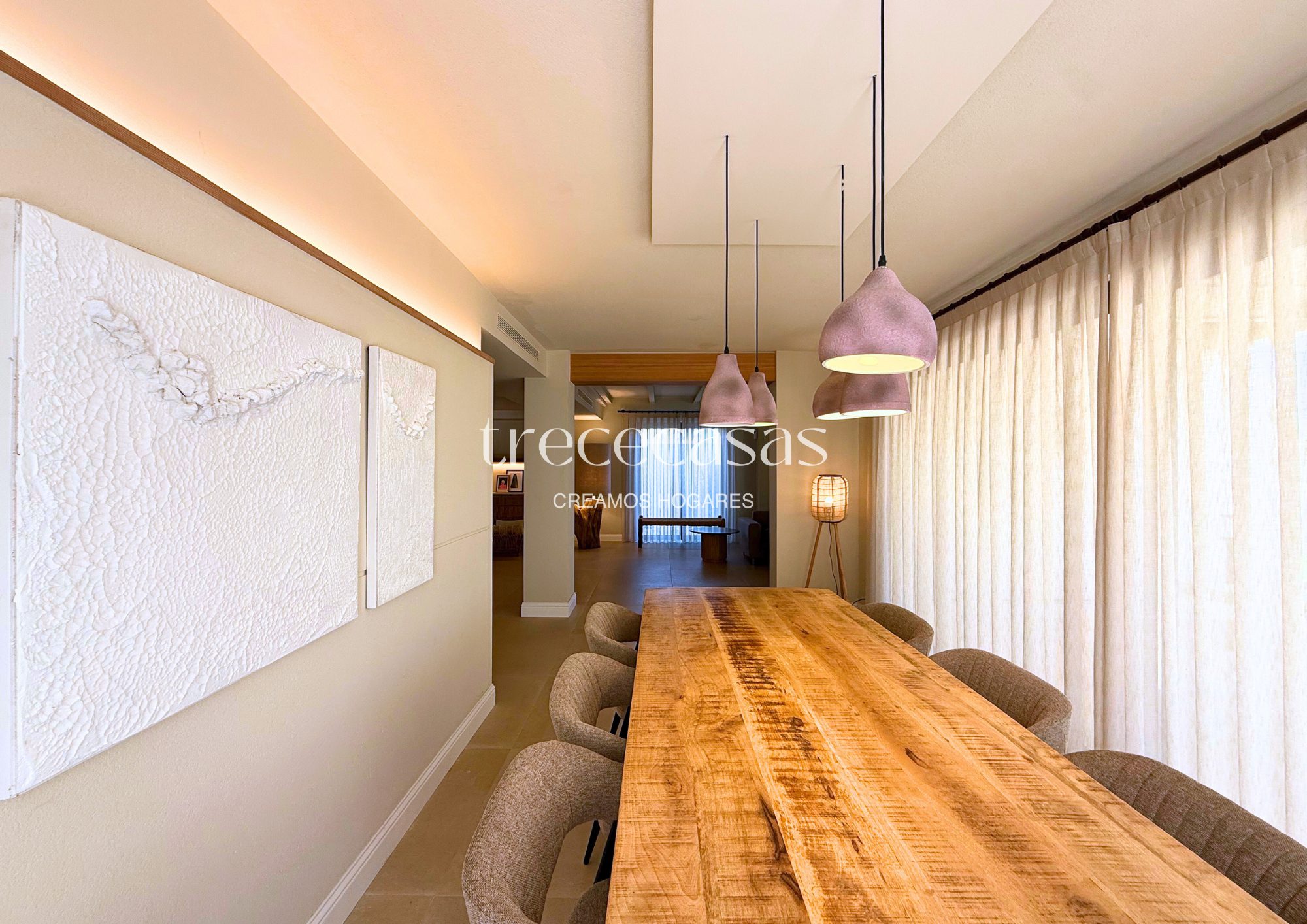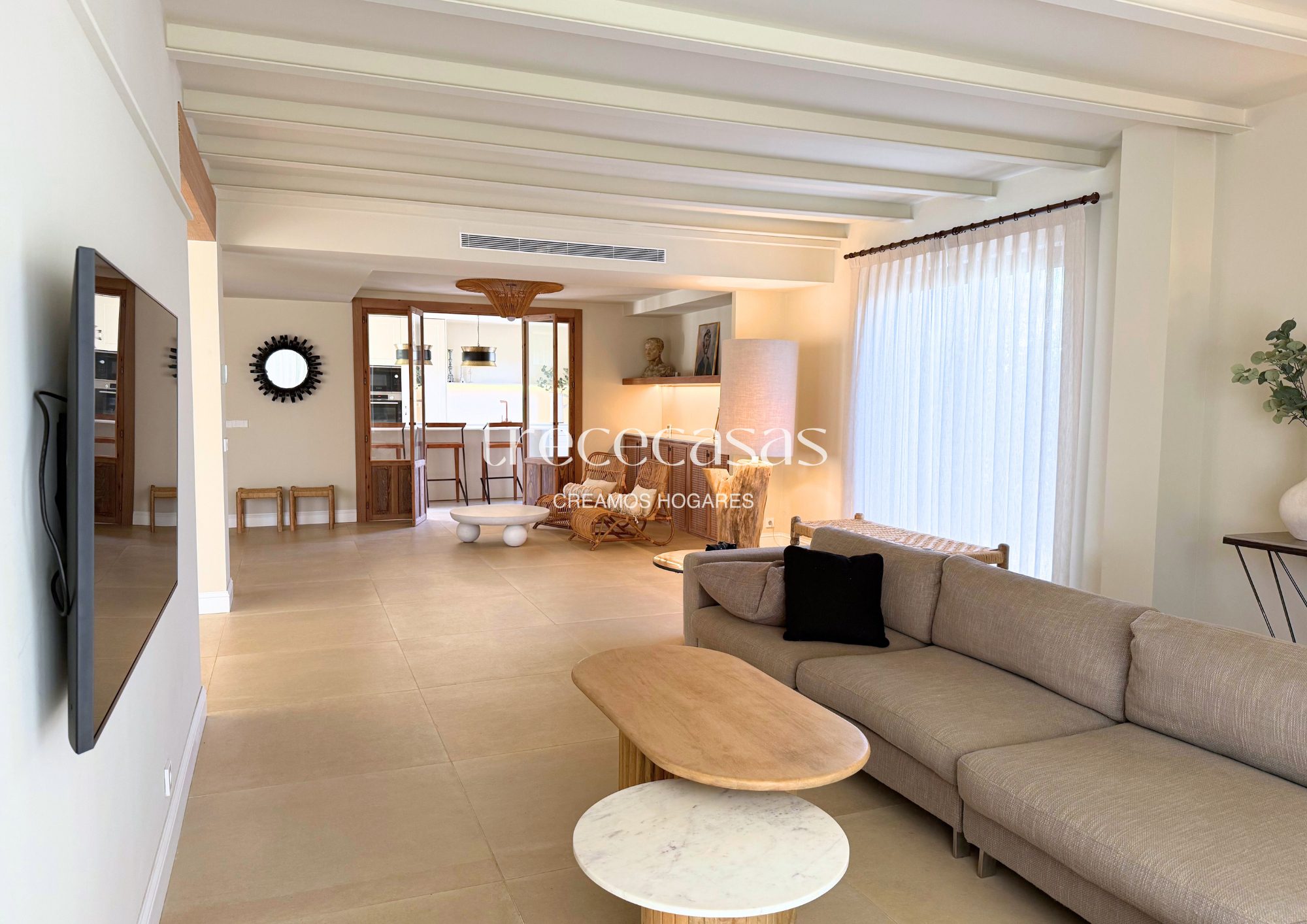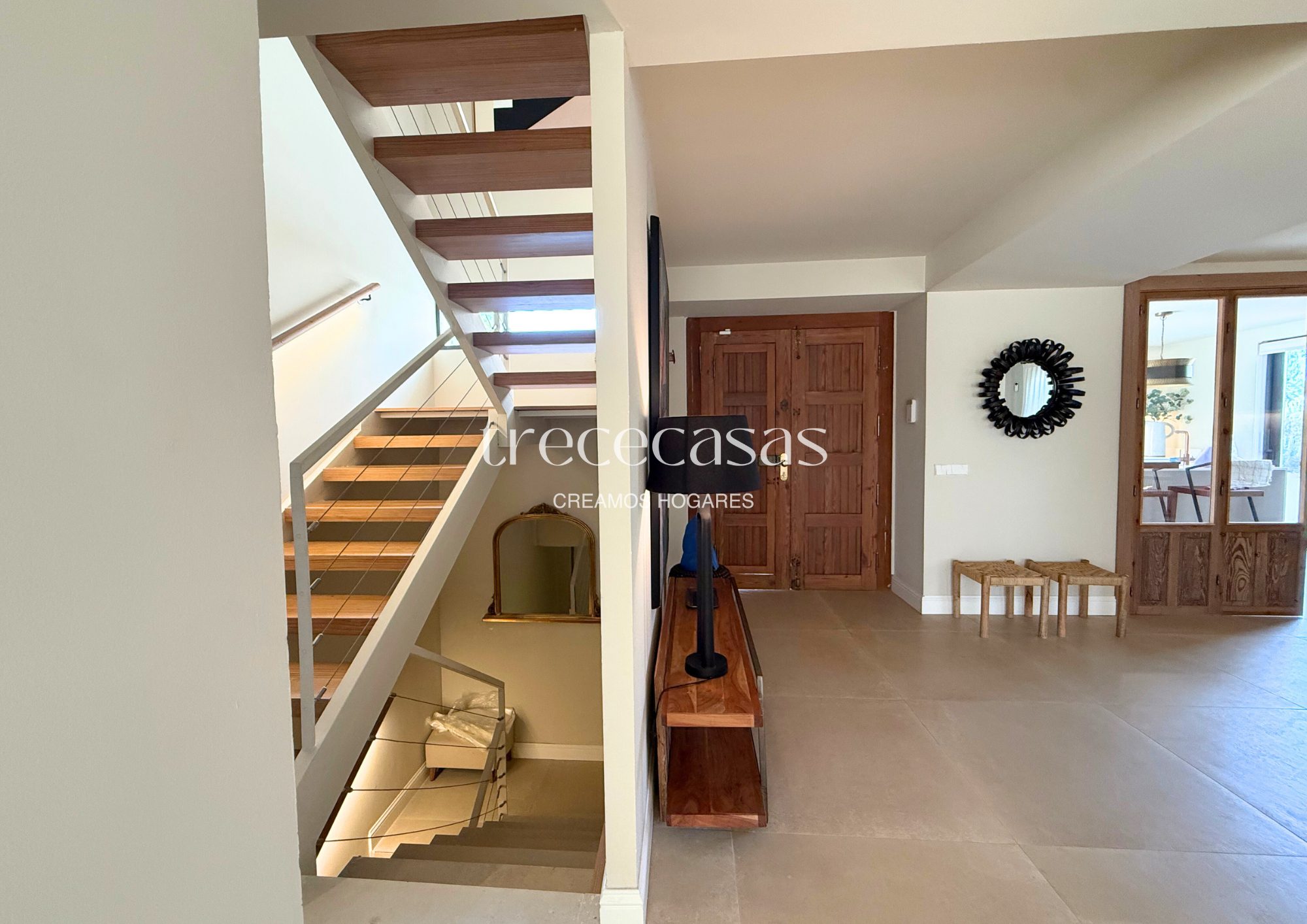 Con 359 m² construidos, la vivienda se distribuye de manera clara y funcional. El salón principal es amplio y recibe luz natural durante gran parte del día. Conecta directamente con el jardín, lo que facilita una vida interior y exterior fluida. Es un espacio pensado tanto para el descanso diario como para encuentros sociales relajados.
