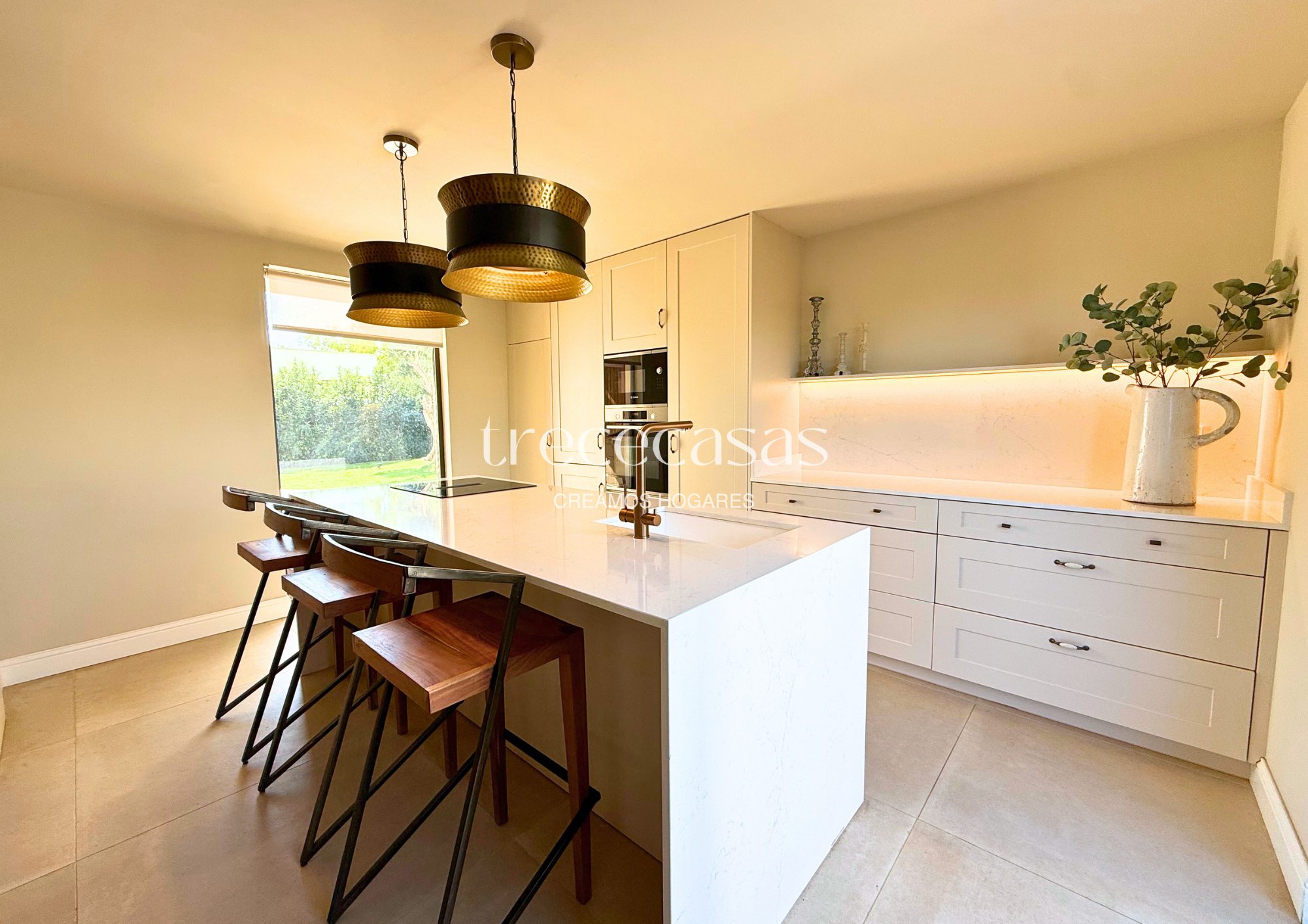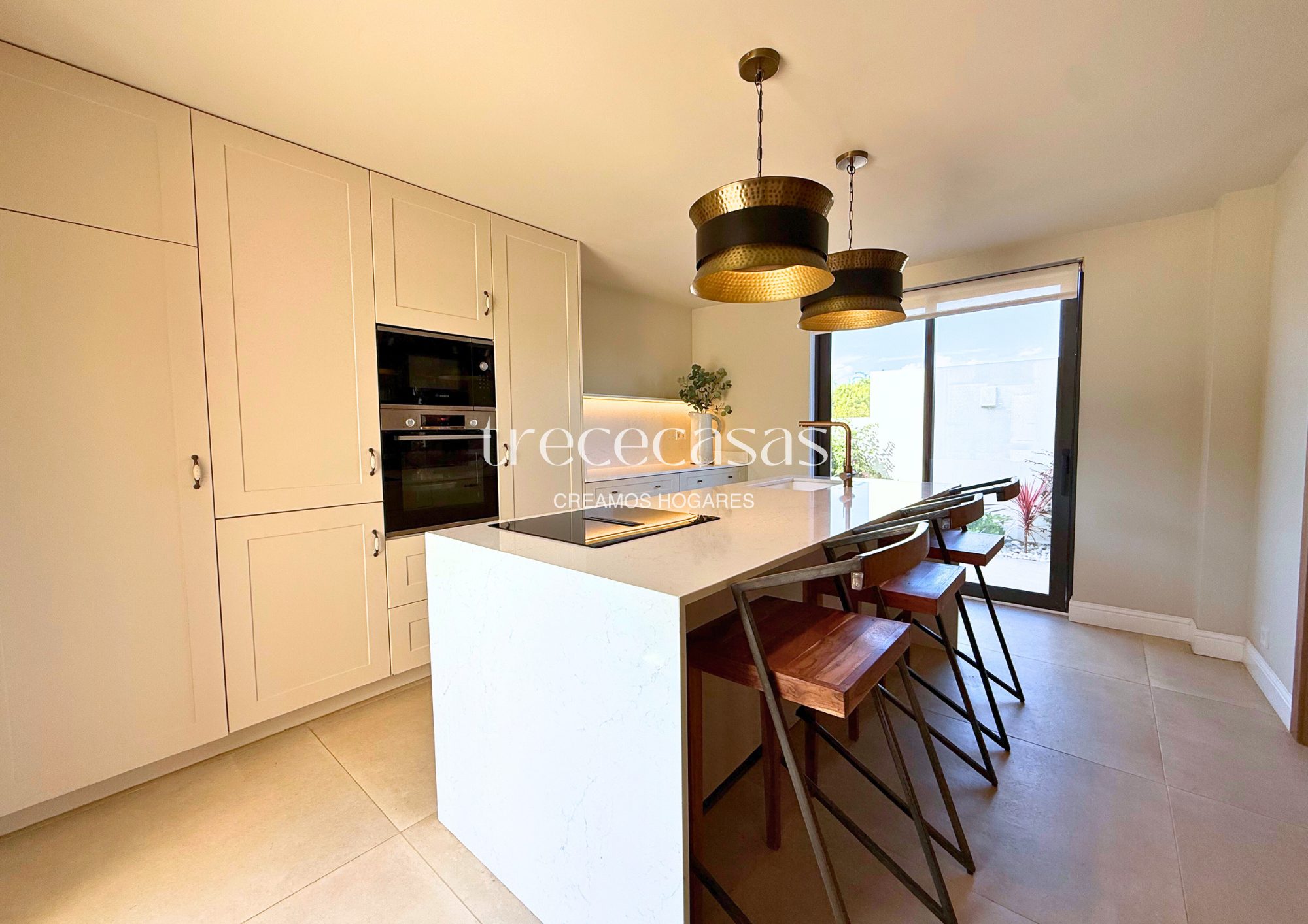 La cocina está completamente amueblada y equipada. Combina líneas actuales con materiales prácticos y una distribución que facilita el uso diario. Cocinar, compartir y conversar sucede de forma natural, ya que el espacio se integra bien con el resto de la vivienda.