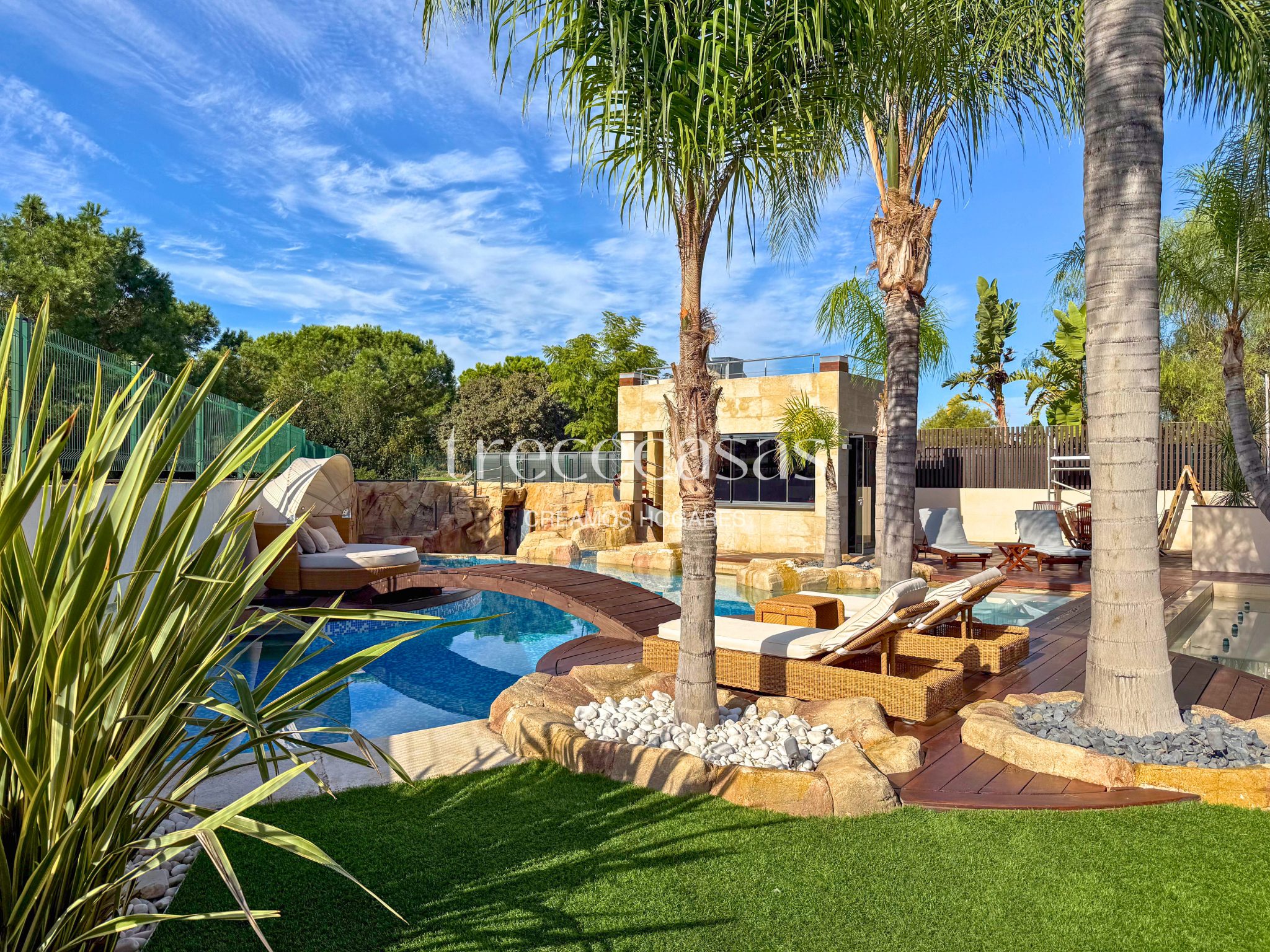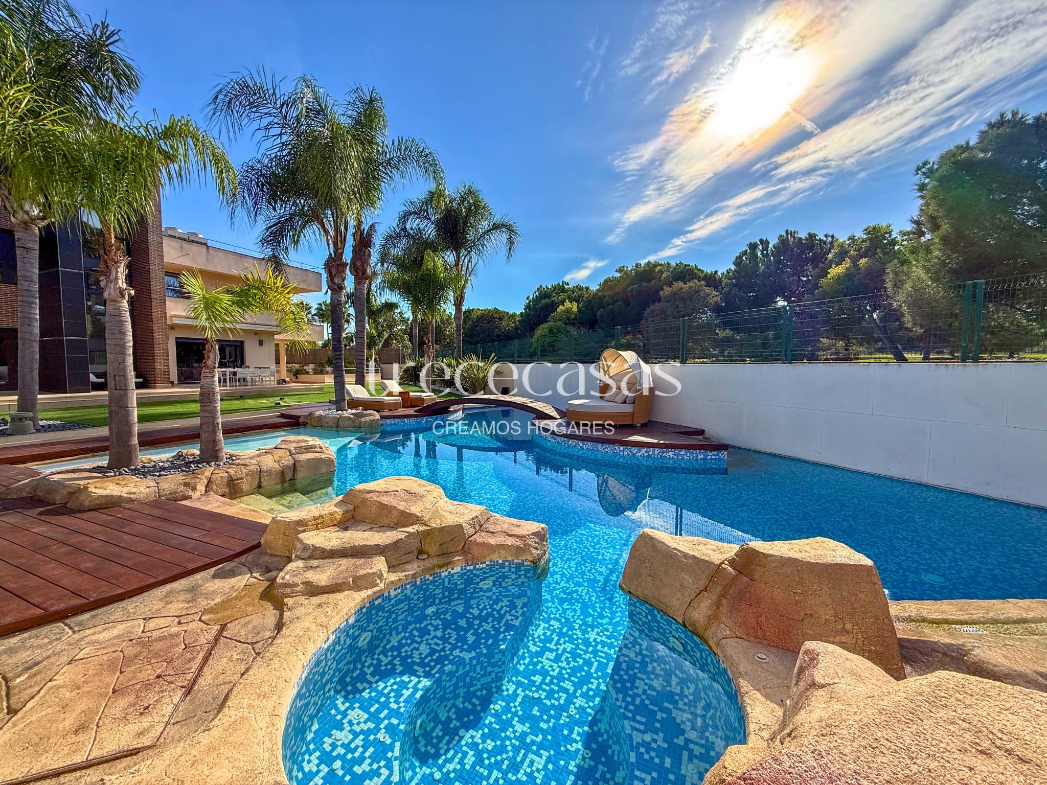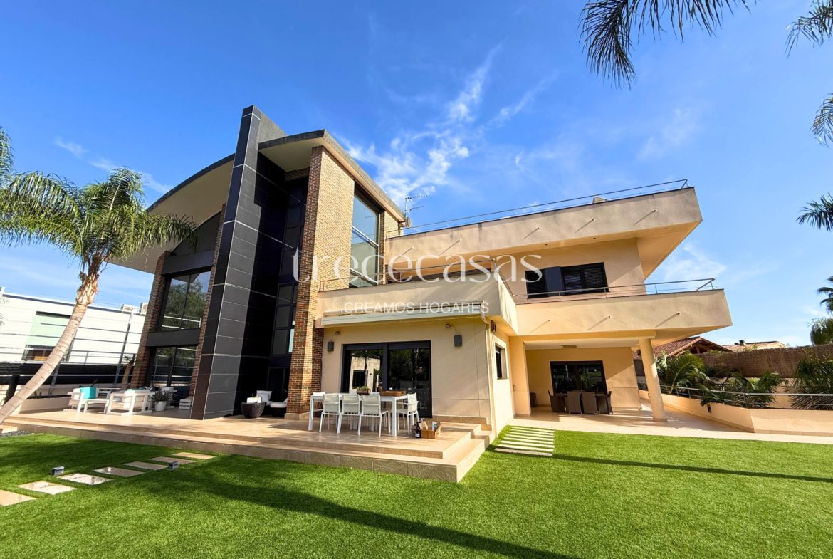 Chalet de Lujo en Valencia – Torre en Conill. Este chalet independiente esta ubicado sobre una parcela en primera línea del golf de 2.435m2 y una superficie construida de 1.123m2.