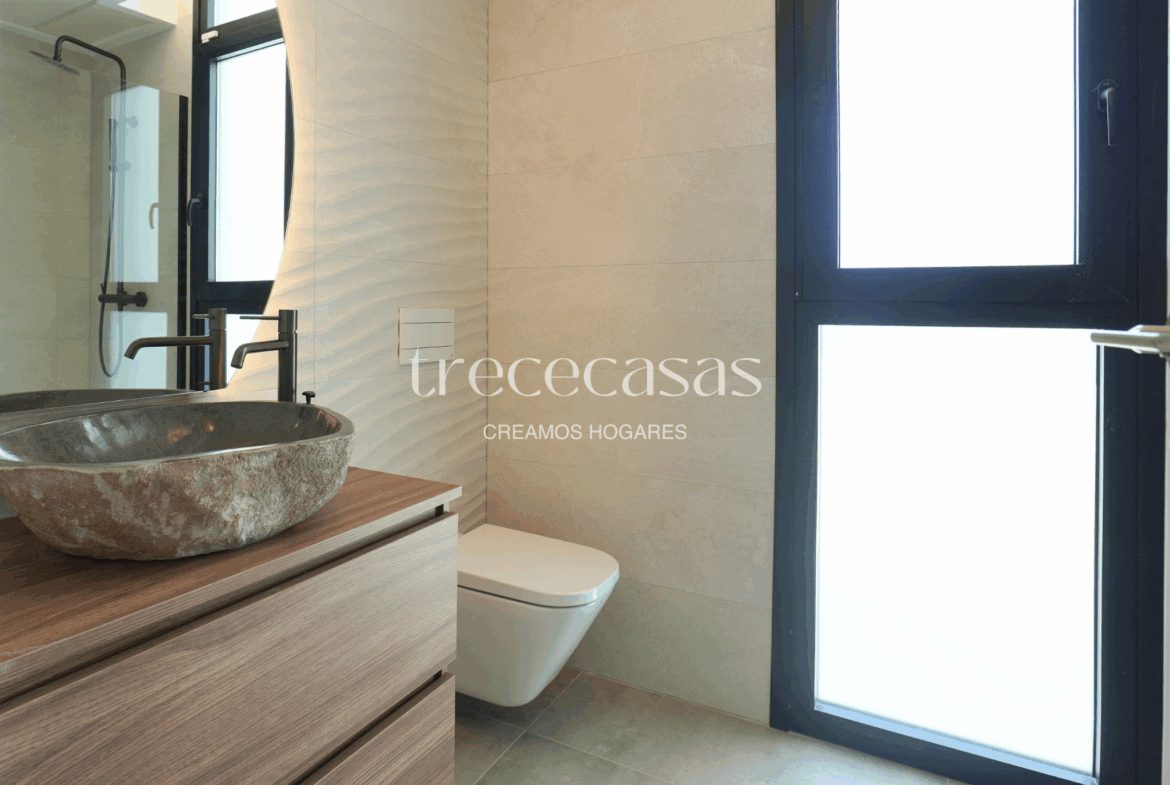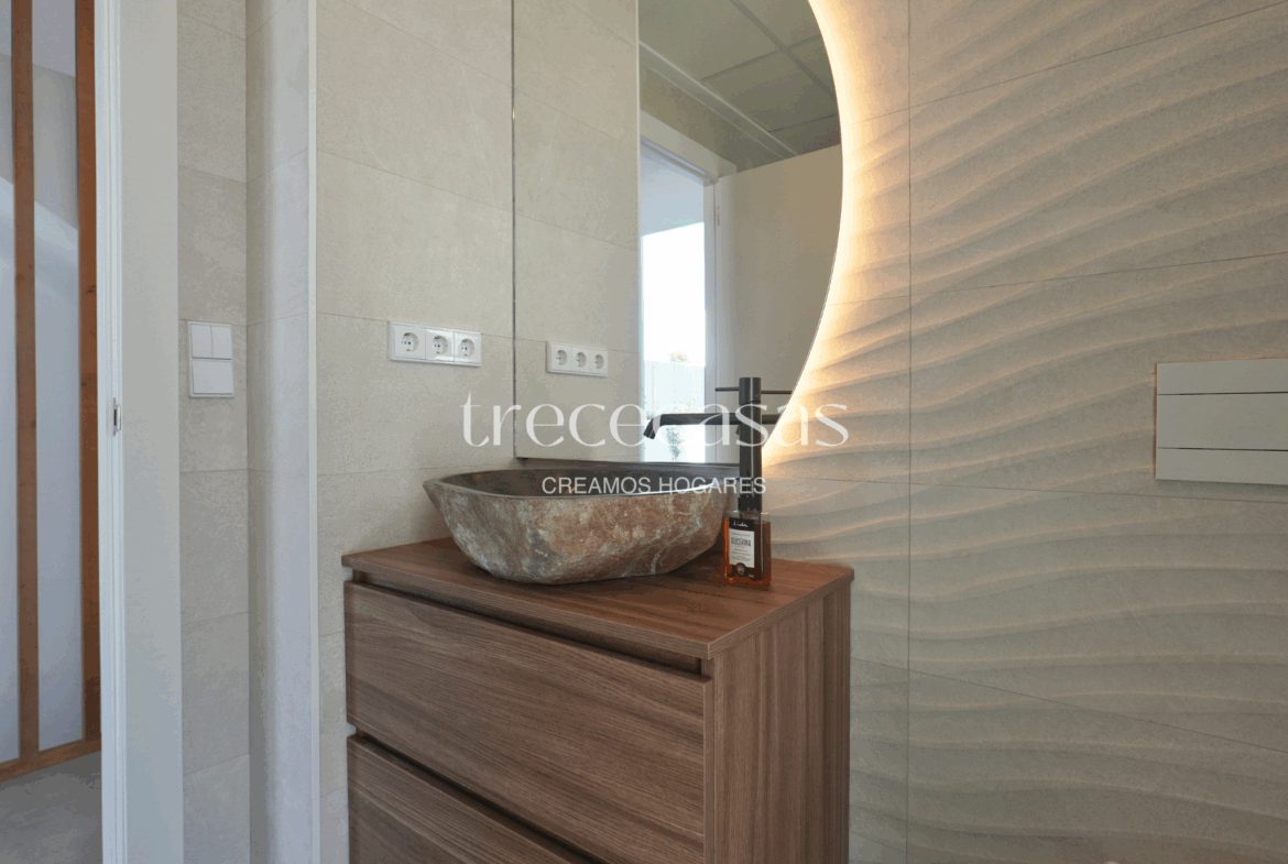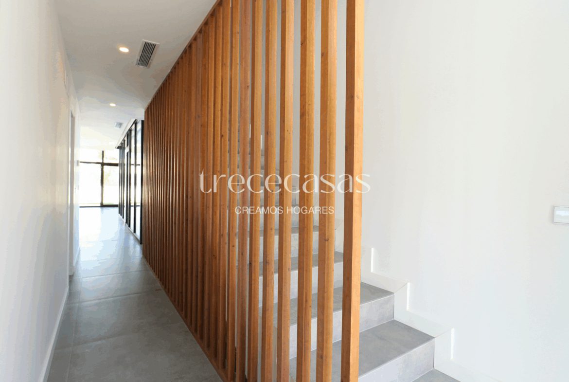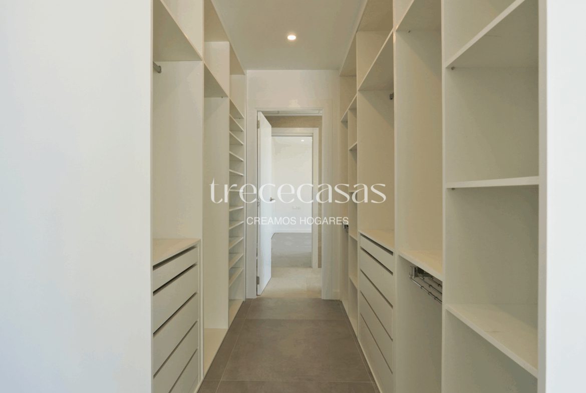La planta baja dispone de dos habitaciones con baño, una solución práctica para familias o para quienes desean espacios accesibles sin escaleras. La luz natural acompaña cada estancia y conecta el interior con el exterior. En la primera planta encontramos dos habitaciones dobles, un baño completo y un vestidor de gran tamaño que aporta orden y comodidad. Este nivel ofrece calma y distinción. Por otro lado, el sótano incorpora una quinta habitación con baño y un espacio diáfano que se adapta a diferentes usos: sala de juegos, despacho, gimnasio o zona de ocio.