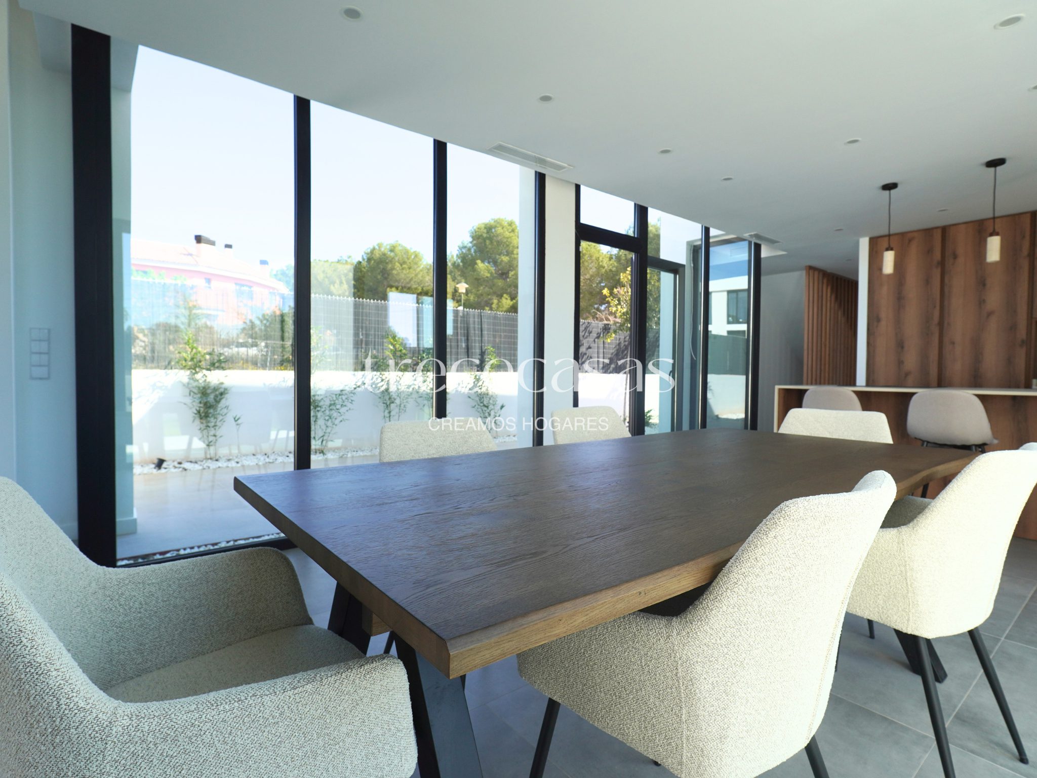 El diseño interior destaca por materiales de calidad y un equilibrio visual que transmite cuidado. La cocina está equipada con electrodomésticos y mobiliario actual. Su distribución permite trabajar con comodidad y mantener un ambiente ordenado. El aire acondicionado y la calefacción central garantizan una temperatura estable durante todo el año.