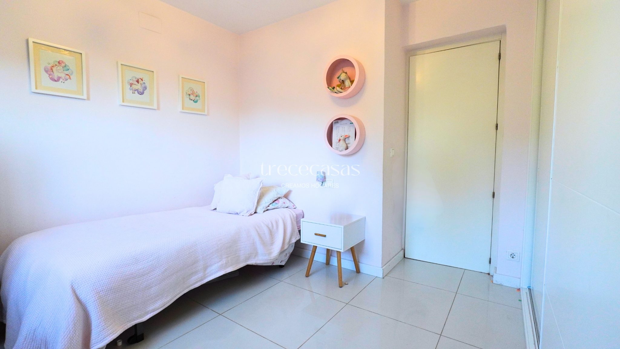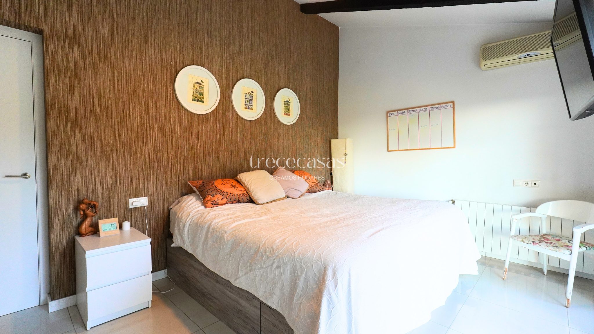 La zona de noche se organiza en cuatro dormitorios amplios y tranquilos. La suite principal cuenta con vestidor y salida directa al jardín, lo que refuerza la sensación de refugio privado. Los dos baños completos han sido reformados con materiales nobles. Destaca el baño principal, con bañera exenta, cerámica de diseño y piedra natural.