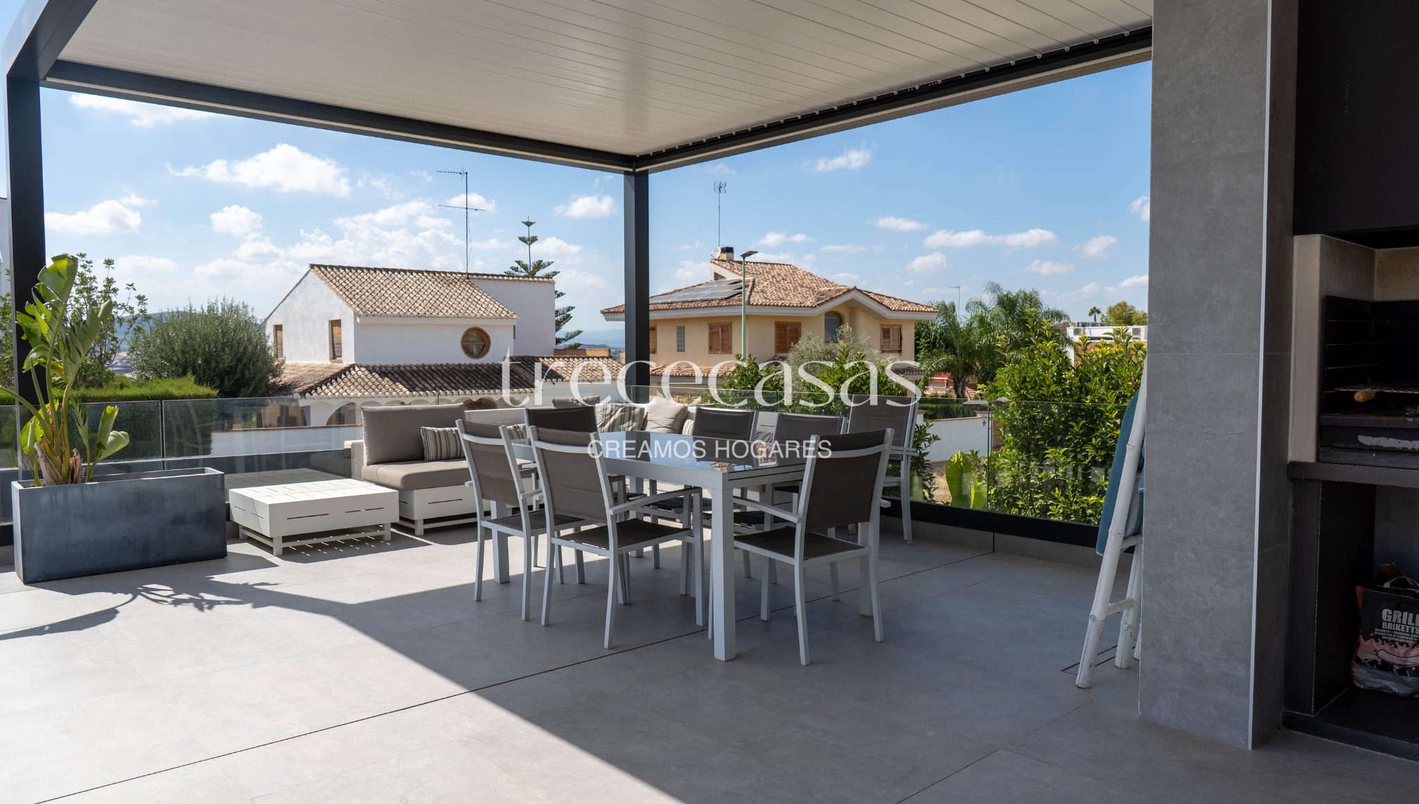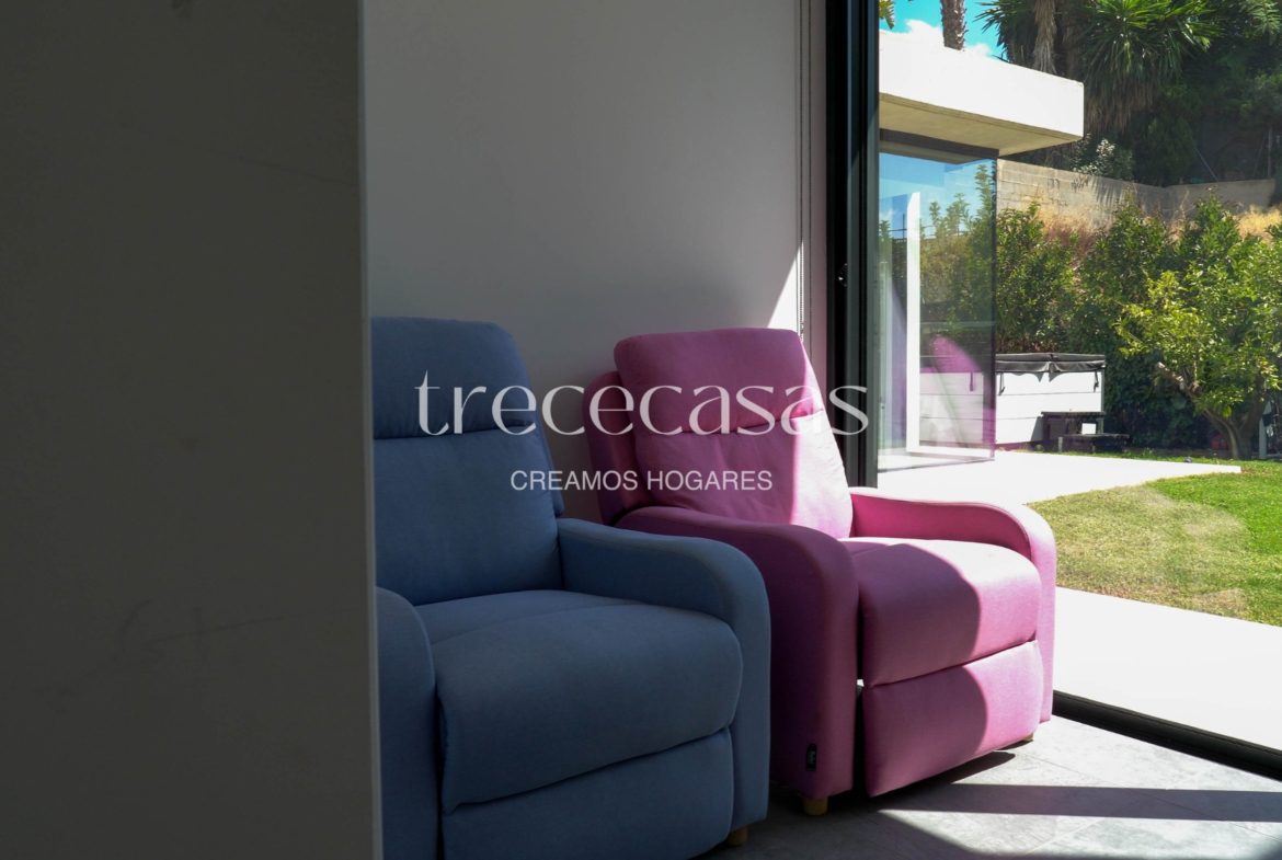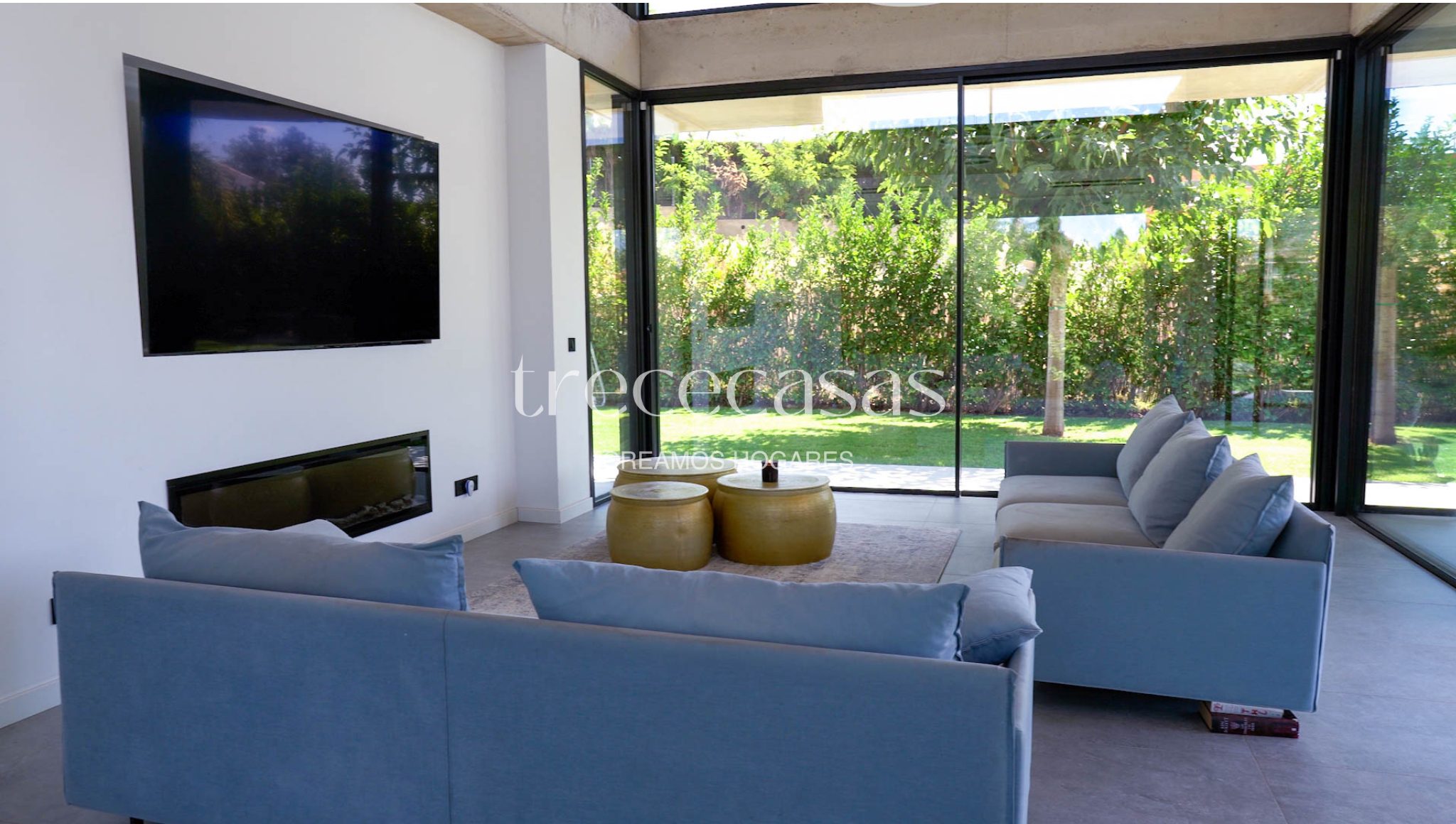 Con 321 m² construidos, el chalet ha sido diseñado con una distribución fluida y equilibrada, donde los grandes ventanales conectan el interior con el jardín, llenando cada estancia de luz natural y una agradable sensación de apertura.