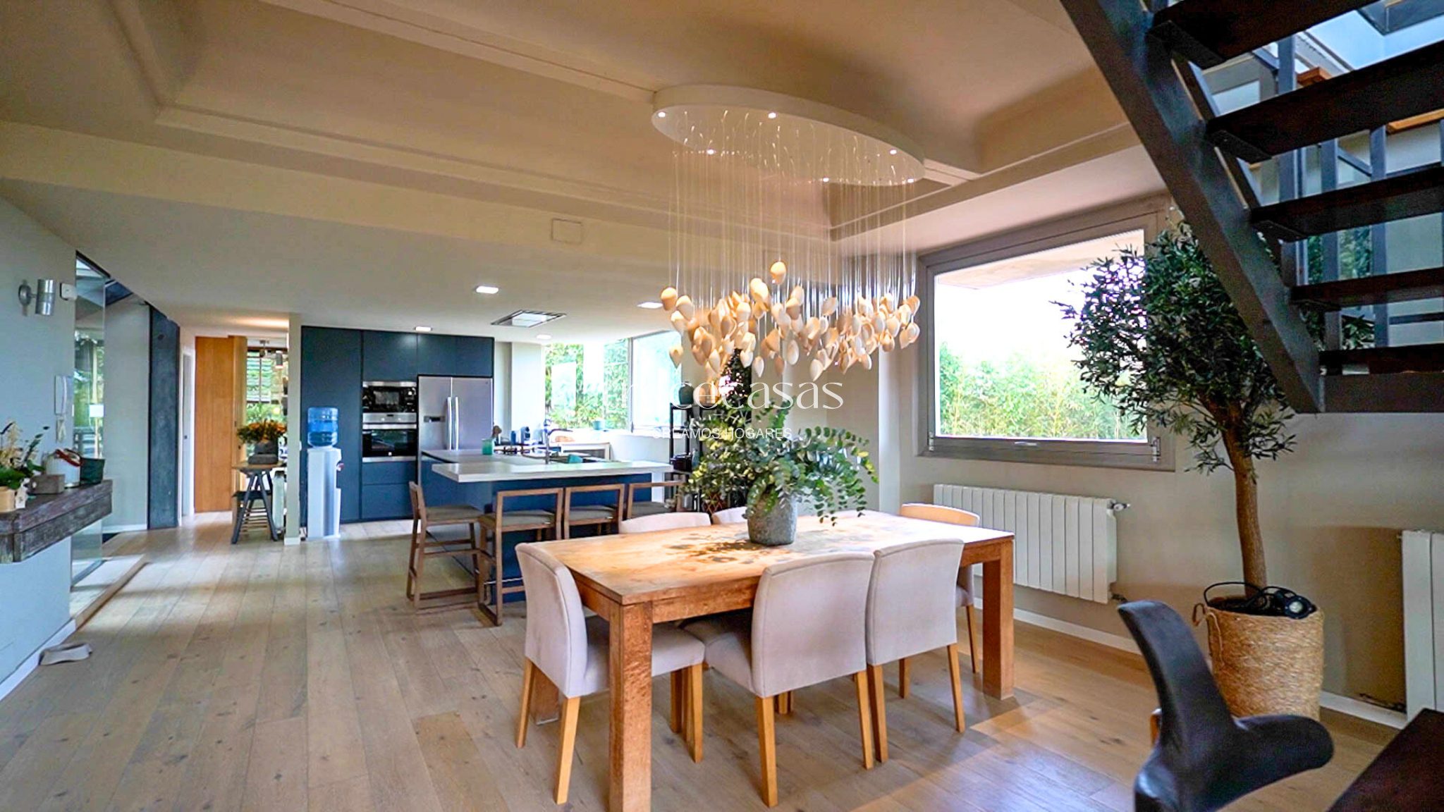 La cocina cuenta con isla central y electrodomésticos de alta gama. Su diseño prioriza el uso diario, con materiales seleccionados por su durabilidad y una estética sobria. Cocinar y compartir sucede de forma natural, sin aislarse del resto de la vivienda.