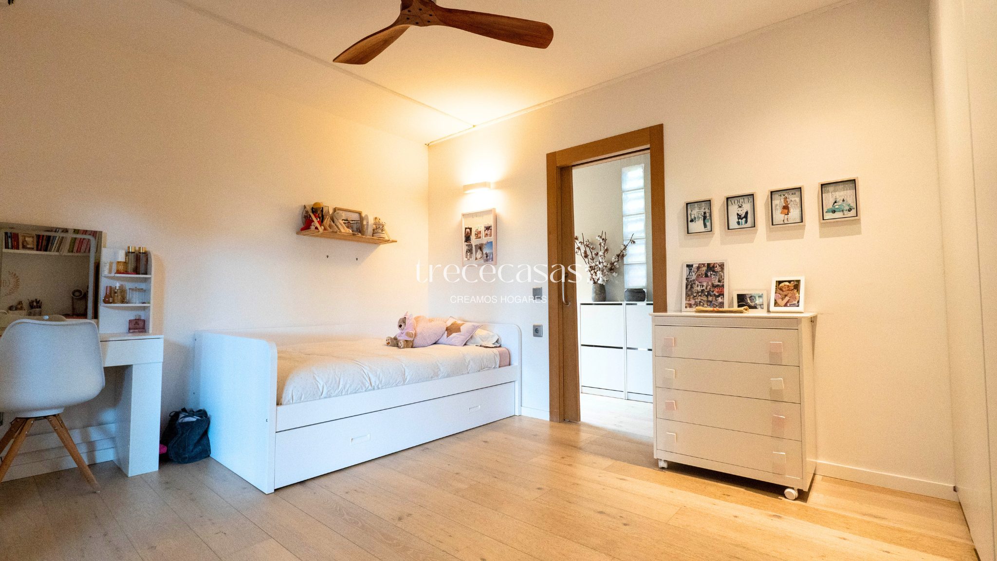 En esta misma planta se ubican tres dormitorios. Dos son dobles y disponen de baño completo. La suite principal ofrece privacidad, vistas verdes y un baño en suite bien proporcionado, pensado para el descanso.