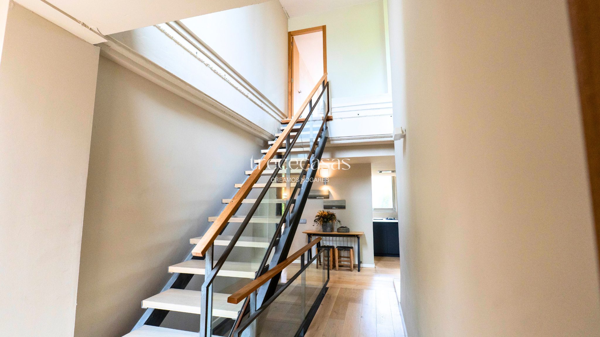 La distribución se organiza en dos plantas más un sótano a nivel de calle. En la planta principal, interior y exterior se conectan de forma natural. El salón, la cocina y los dormitorios se abren directamente al jardín, lo que permite una vida diaria fluida y sin transiciones forzadas.