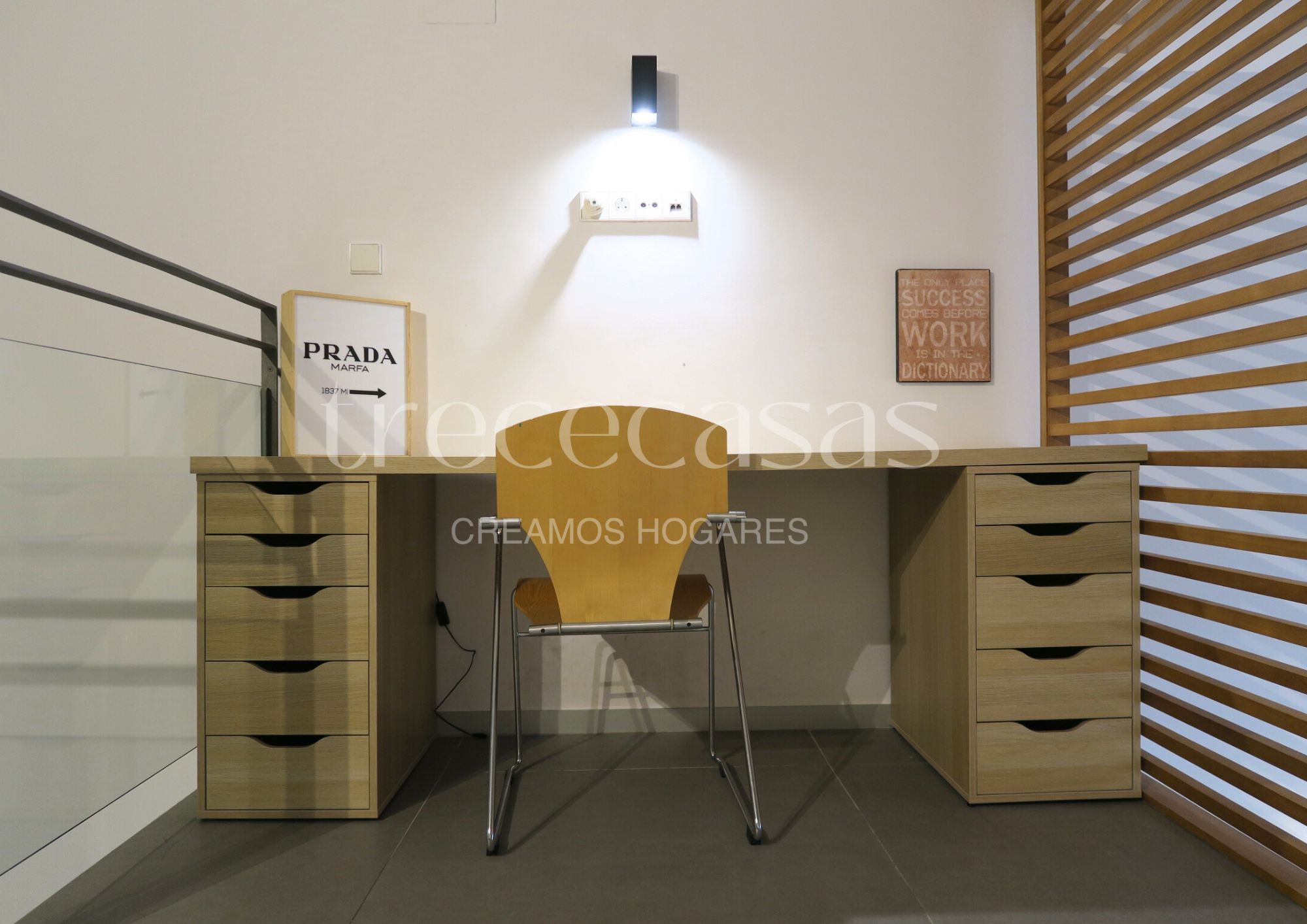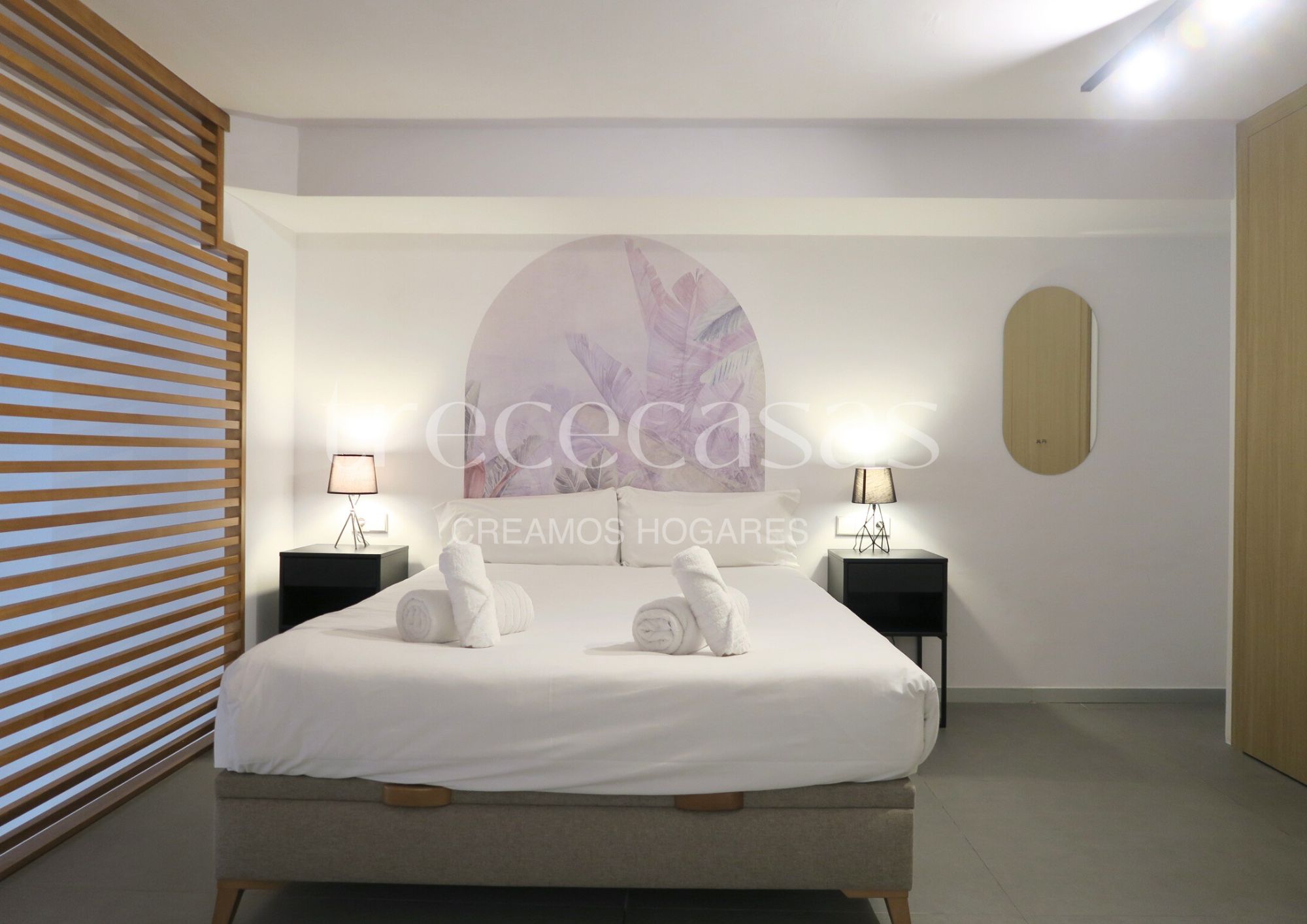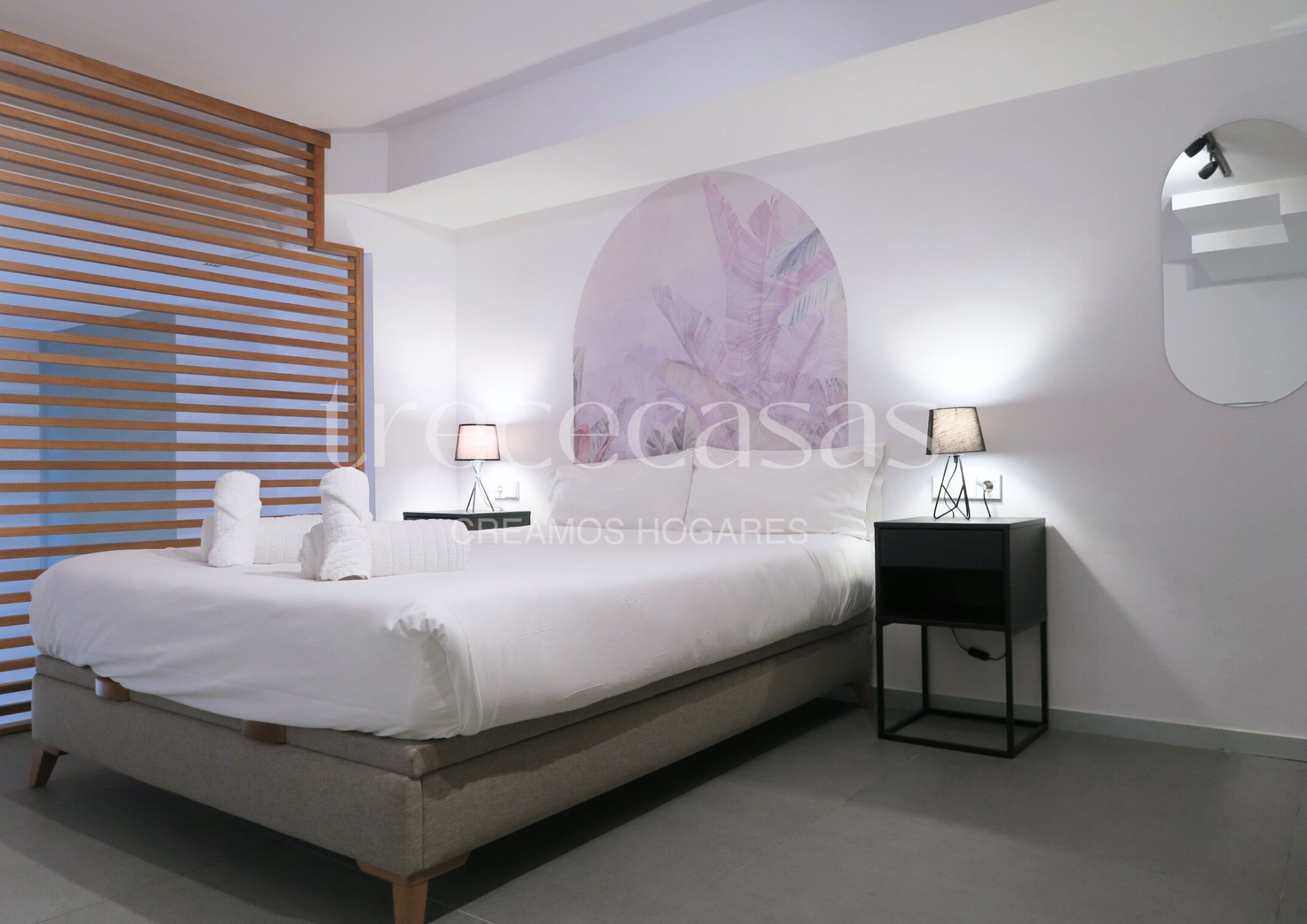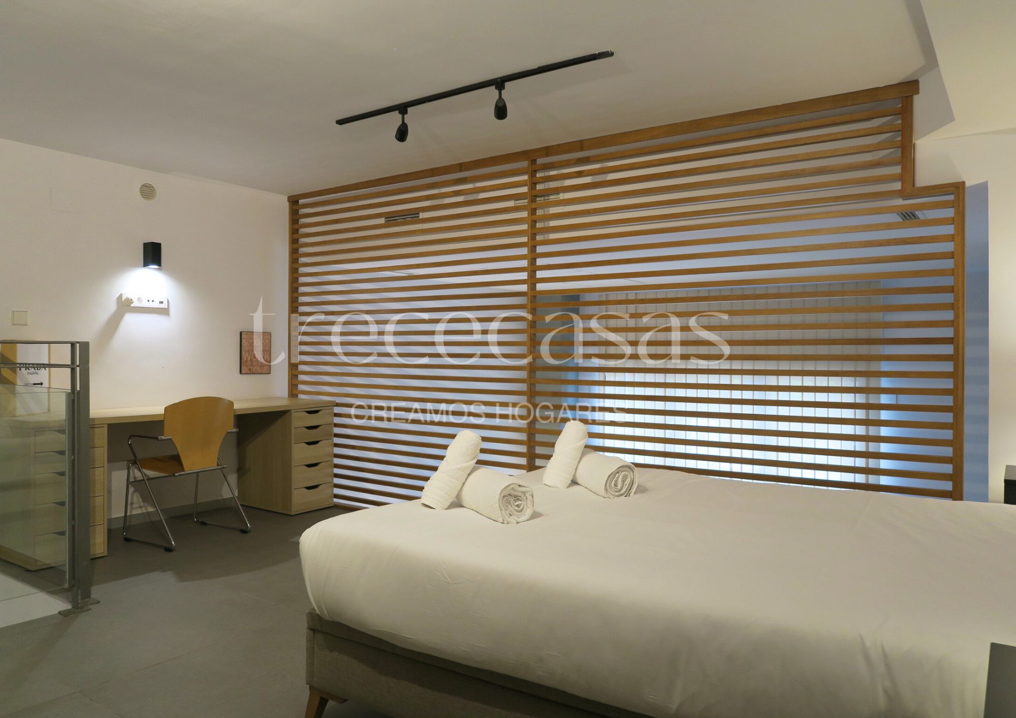 La planta superior está destinada al dormitorio. Es un espacio tranquilo, con altura suficiente para mantener una atmósfera íntima y serena. El mobiliario incluido facilita una instalación inmediata y permite mantener el orden sin esfuerzo. Además, la separación entre ambas plantas mejora la dinámica del día a día: abajo se vive, arriba se descansa.