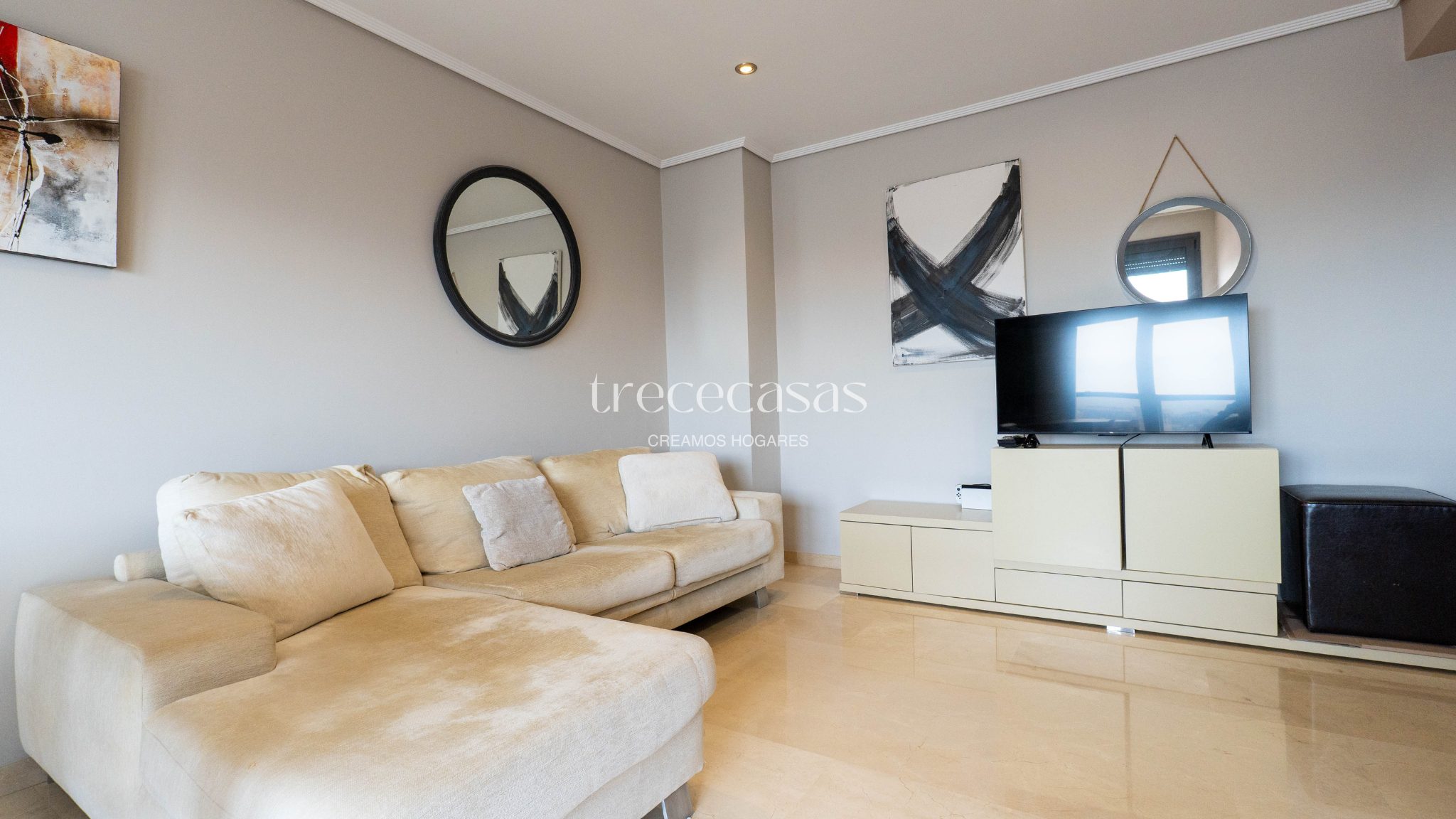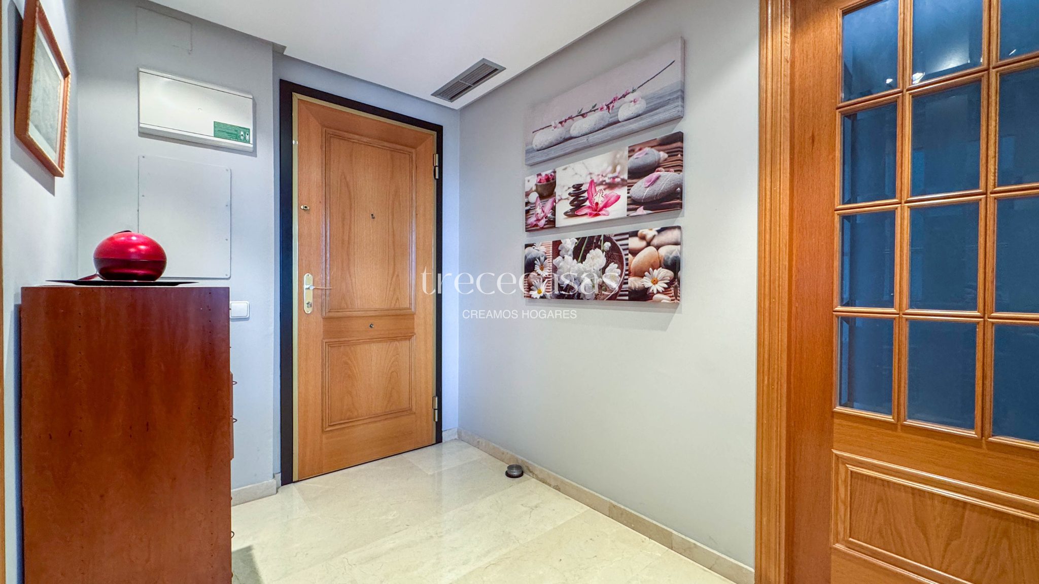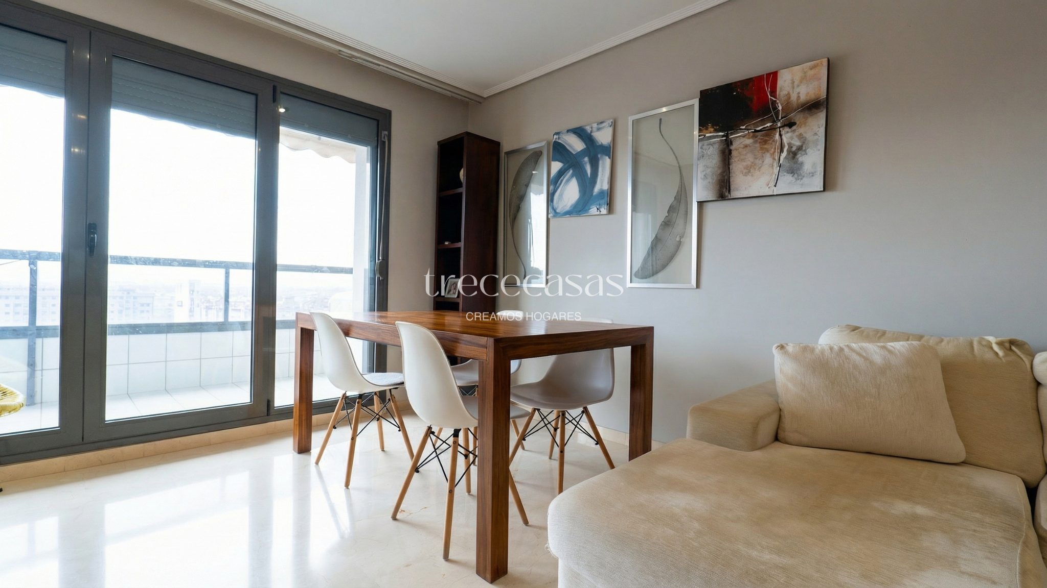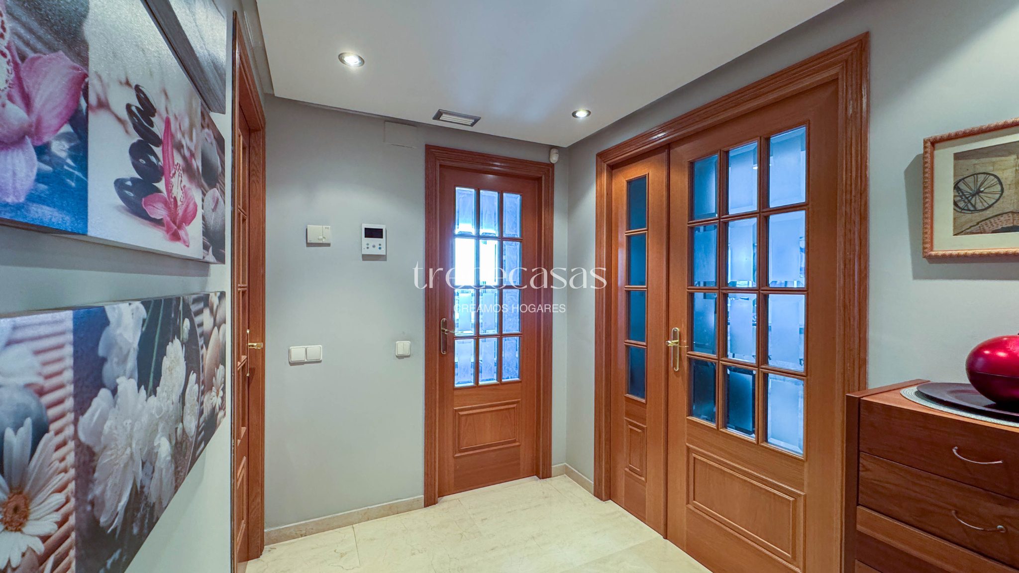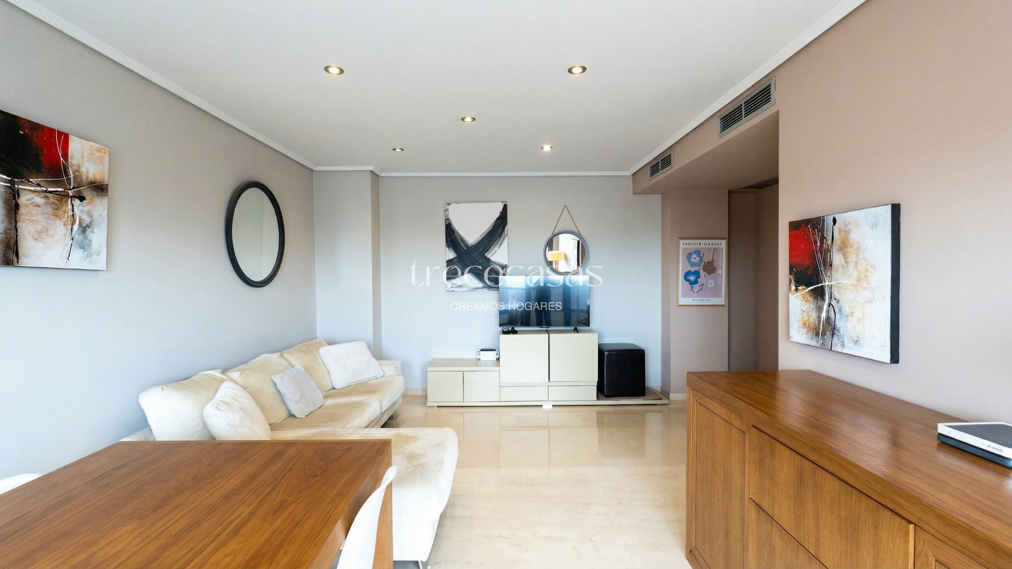 Desde la entrada se percibe orden y claridad. El salón, amplio y bien iluminado, conecta directamente con la terraza. Por lo tanto, la vivienda mantiene una relación natural con el exterior y permite disfrutar de la luz durante gran parte del día.