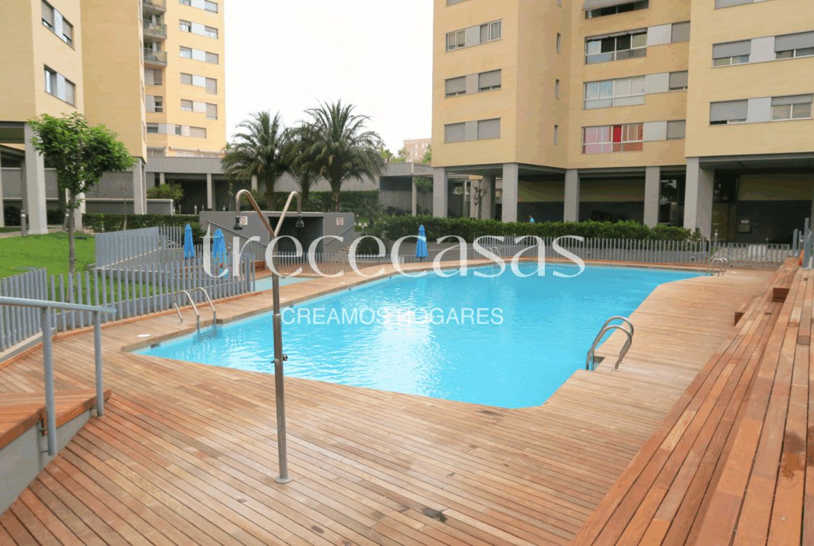 La urbanización mejora notablemente la experiencia de vivir en este piso en alquiler en Maestro Rodrigo. La piscina comunitaria permite disfrutar del verano sin salir de casa. Asimismo, el jardín ofrece un espacio tranquilo para descansar o compartir tiempo al aire libre.