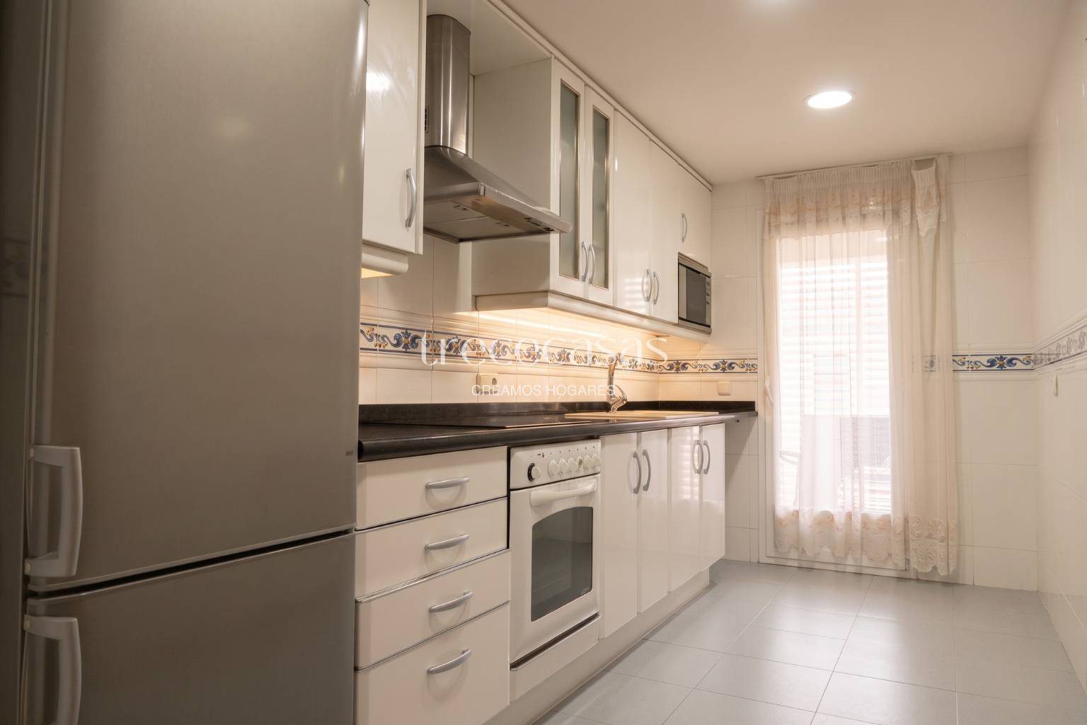 Cuenta con dos baños completos con materiales actuales. Además, la distribución separa la zona de día y la zona de descanso.
