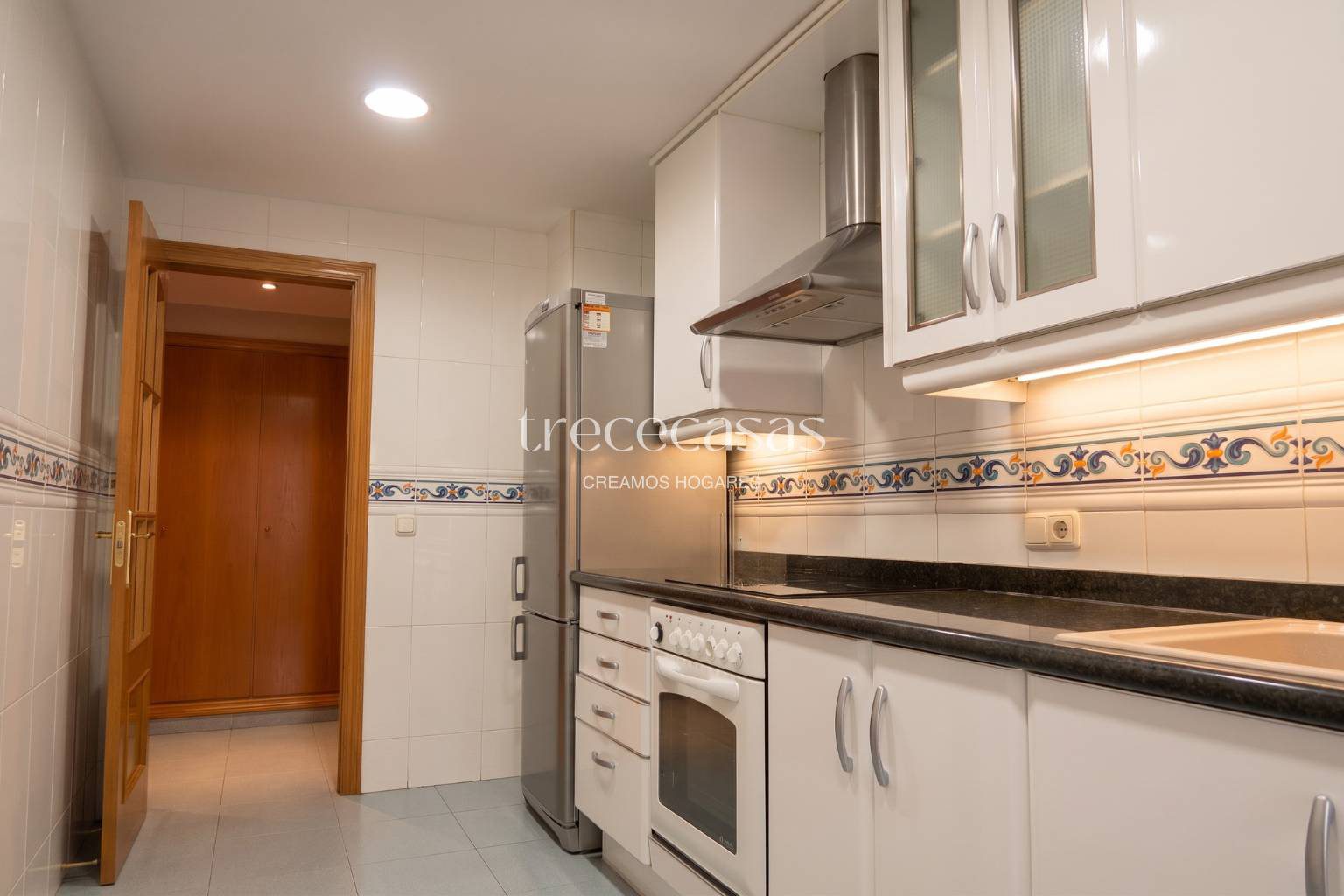 La cocina está totalmente equipada y organizada para un uso práctico.