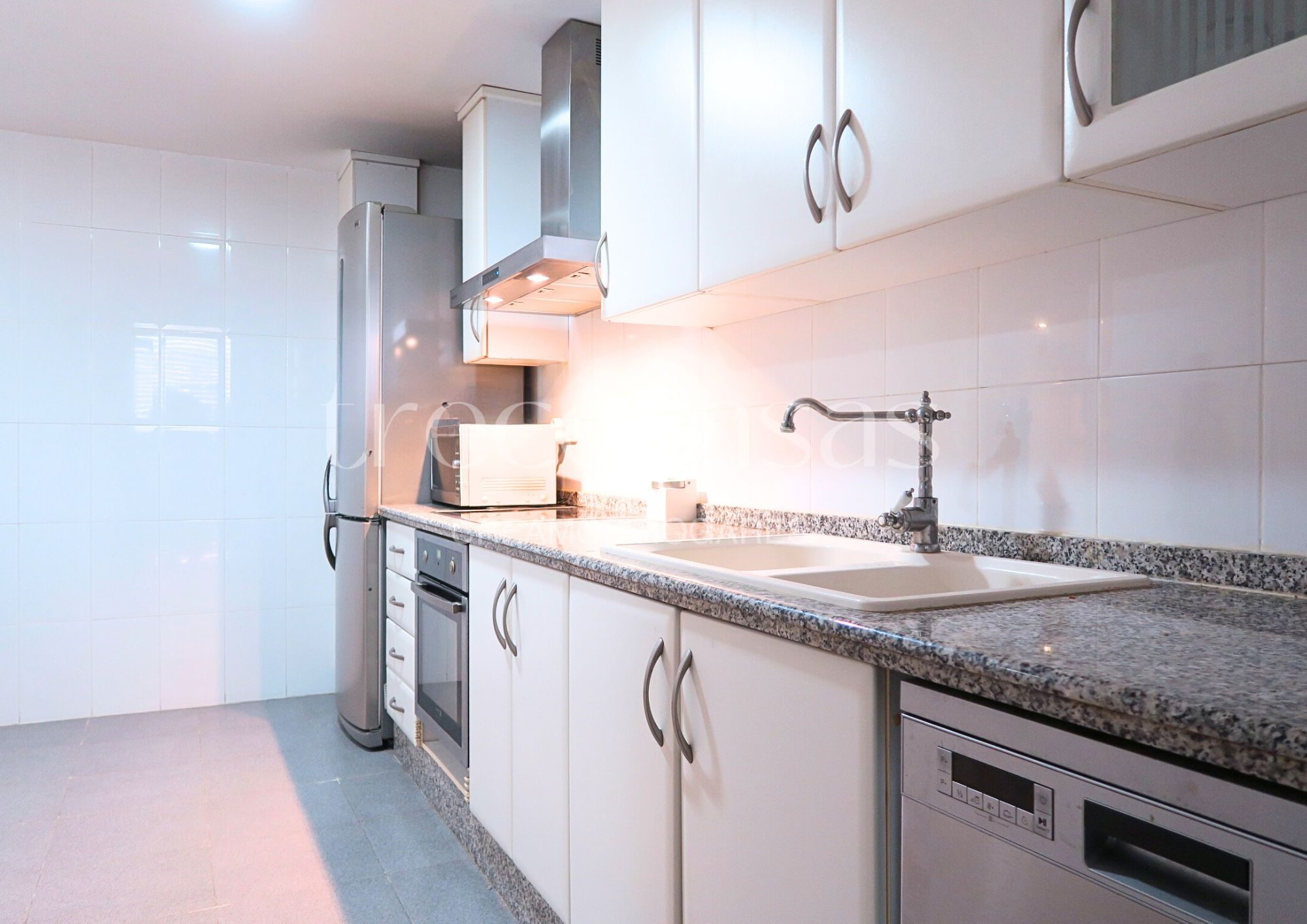 La cocina es independiente y cuenta con galería. Esta distribución permite trabajar con orden y separar las tareas domésticas del resto de la vivienda. La verdad es que esta solución facilita el uso diario y mantiene la zona social despejada. La distribución general separa con claridad la zona de día de la zona de descanso, lo que mejora la privacidad.