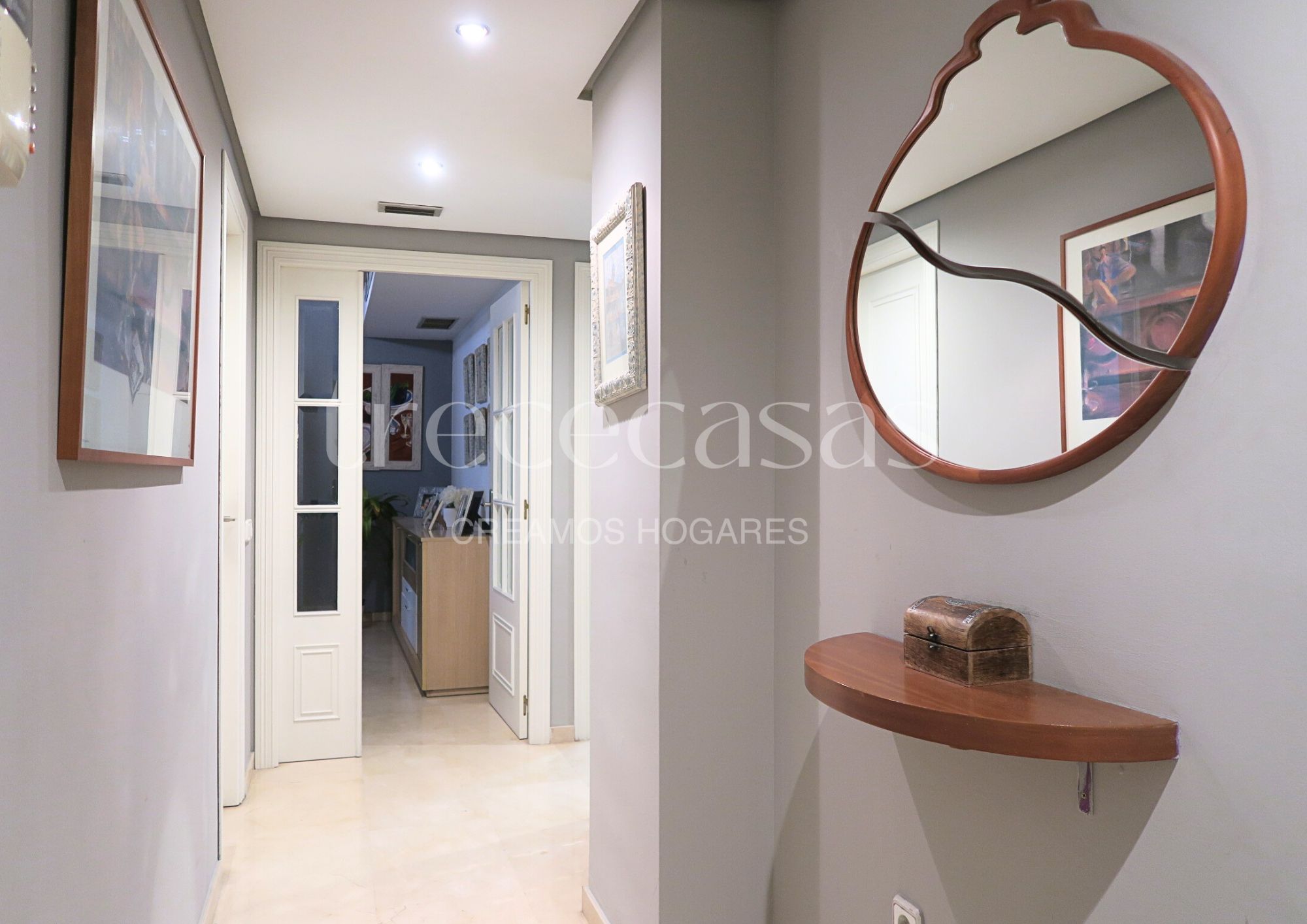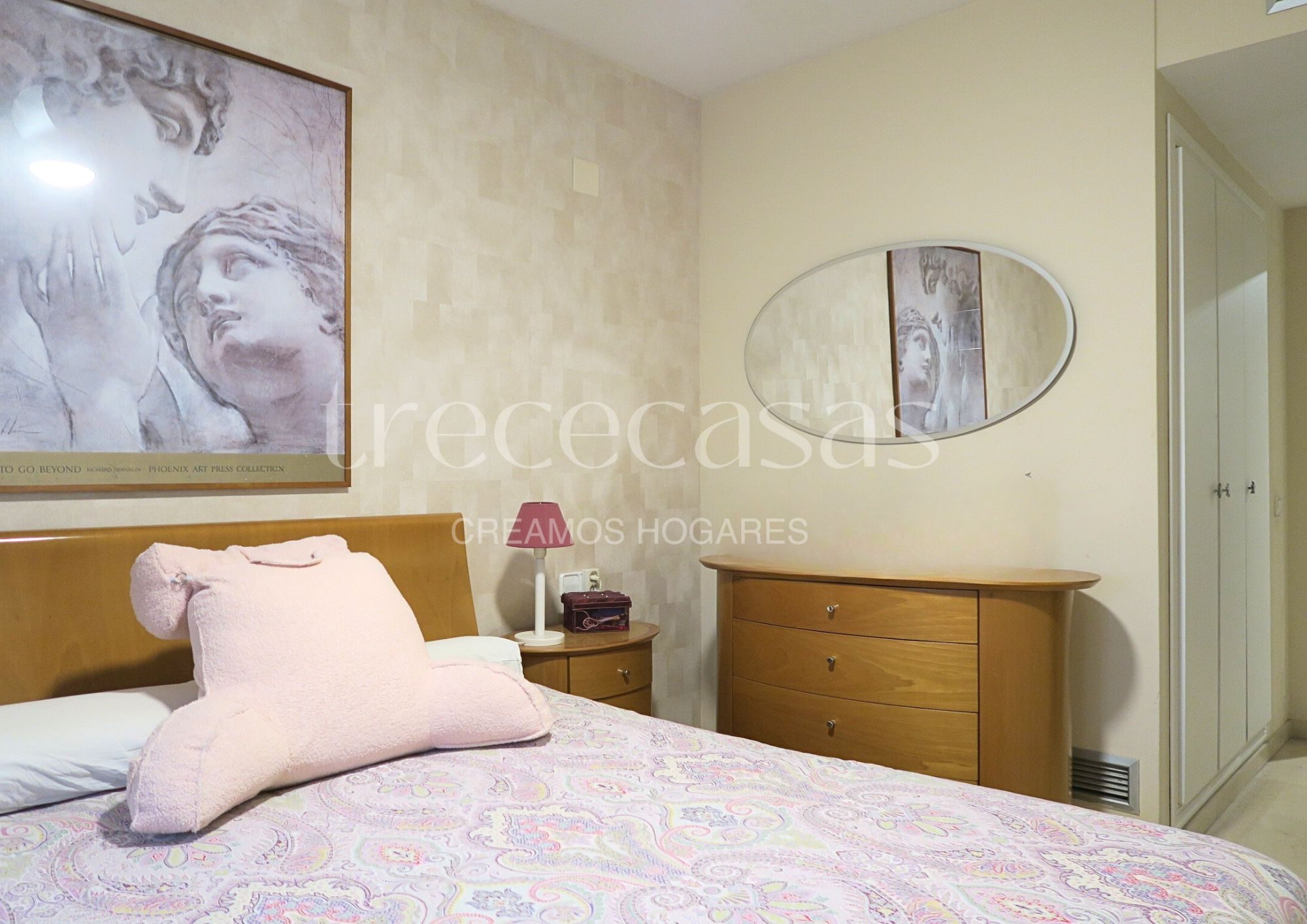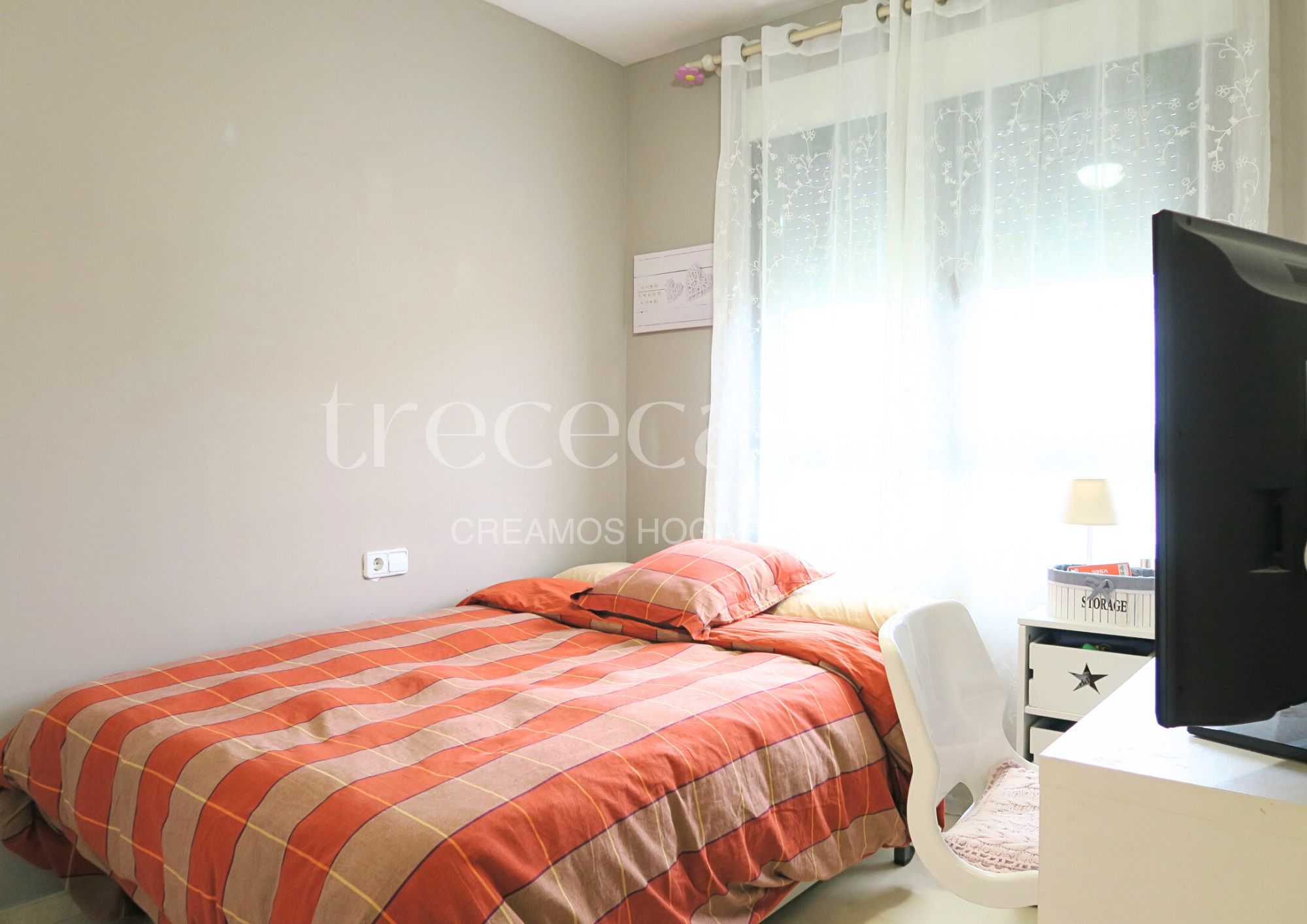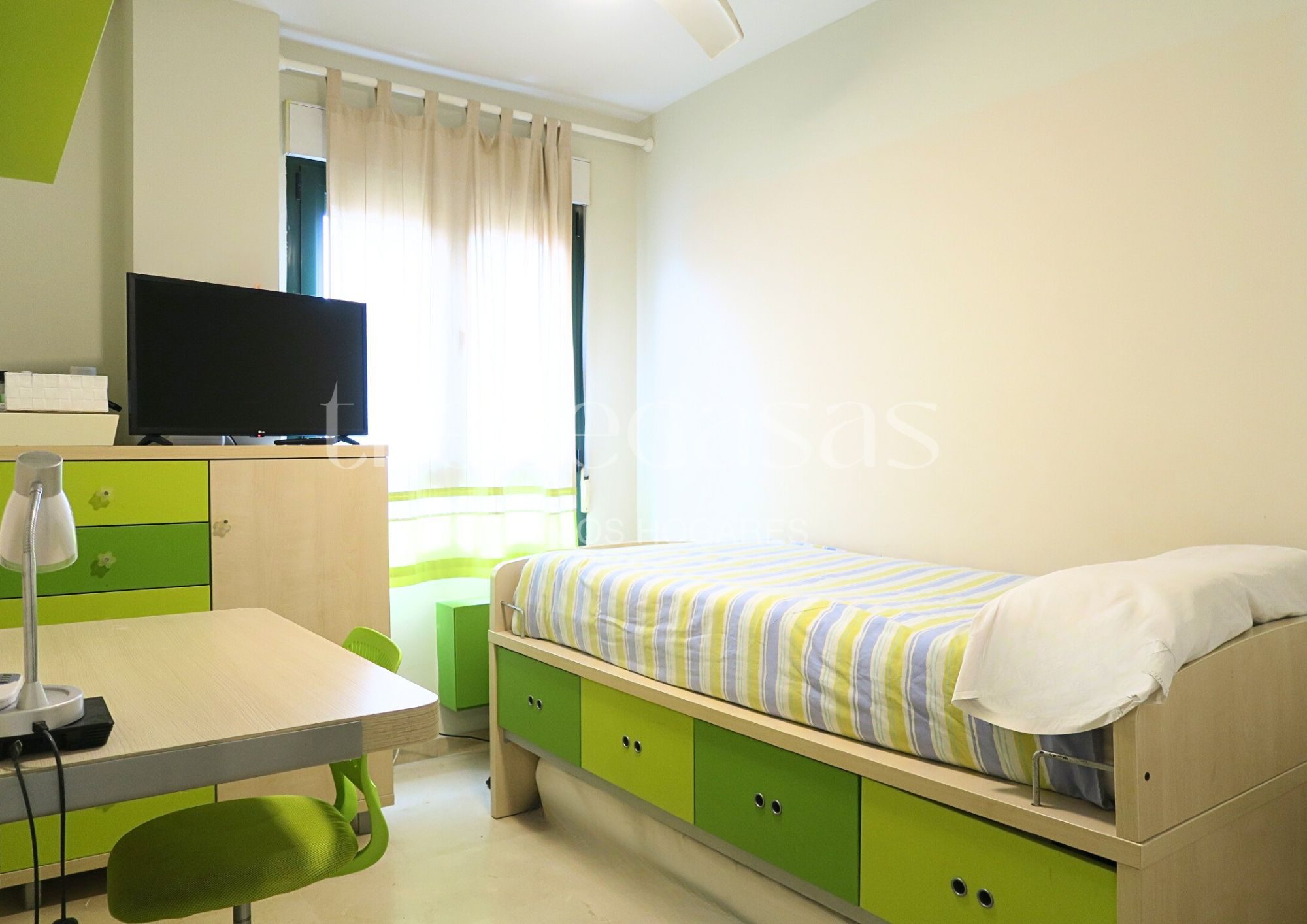 La zona de noche se compone de tres dormitorios dobles. El dormitorio principal dispone de armario empotrado y baño integrado, lo que aporta comodidad y un uso más fluido. Los otros dos dormitorios, también con armarios empotrados, ofrecen un espacio versátil que se adapta a familia, teletrabajo o invitados. El segundo baño, situado en el pasillo, resulta práctico para el uso cotidiano.