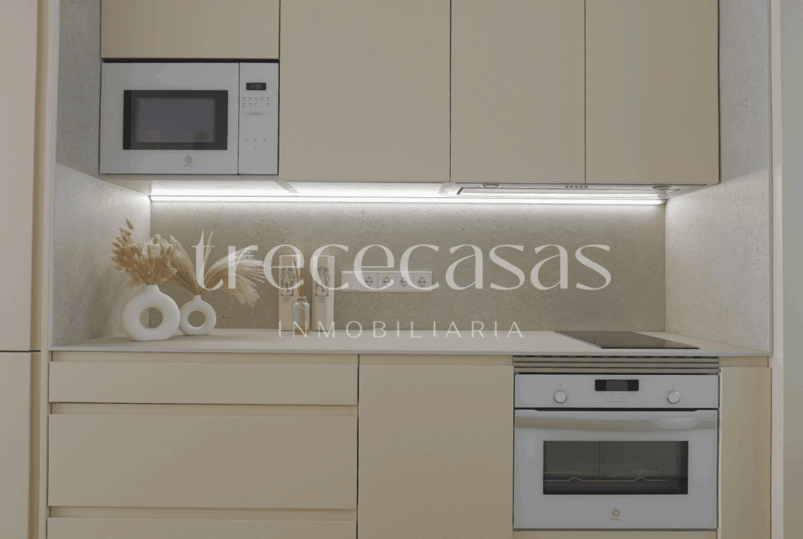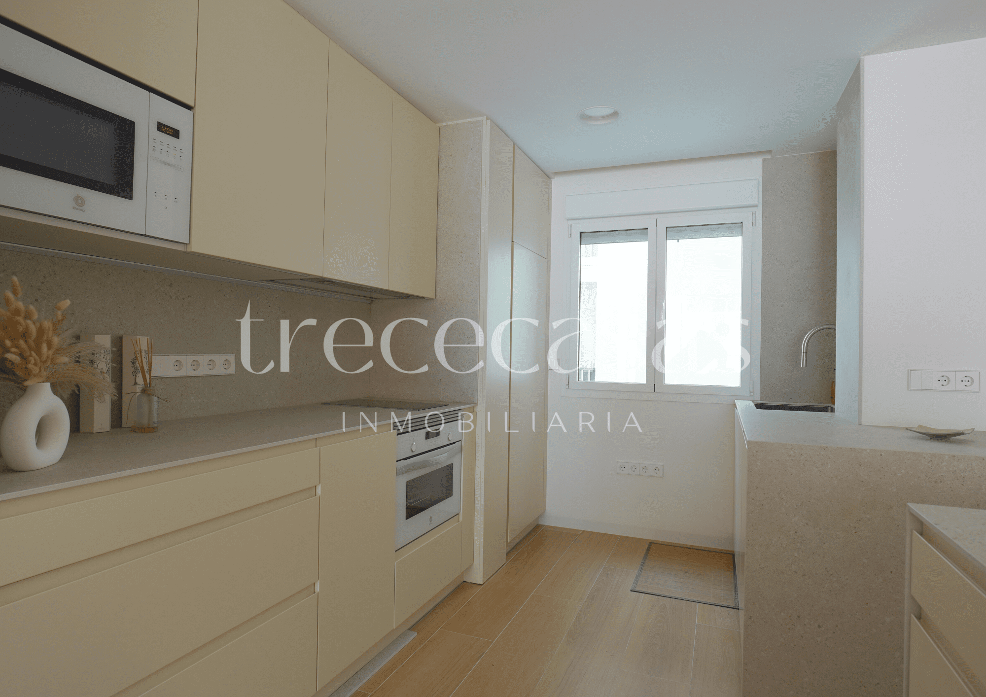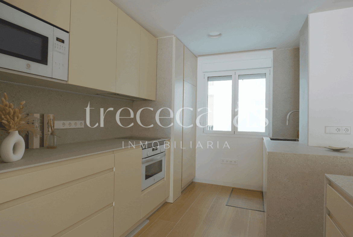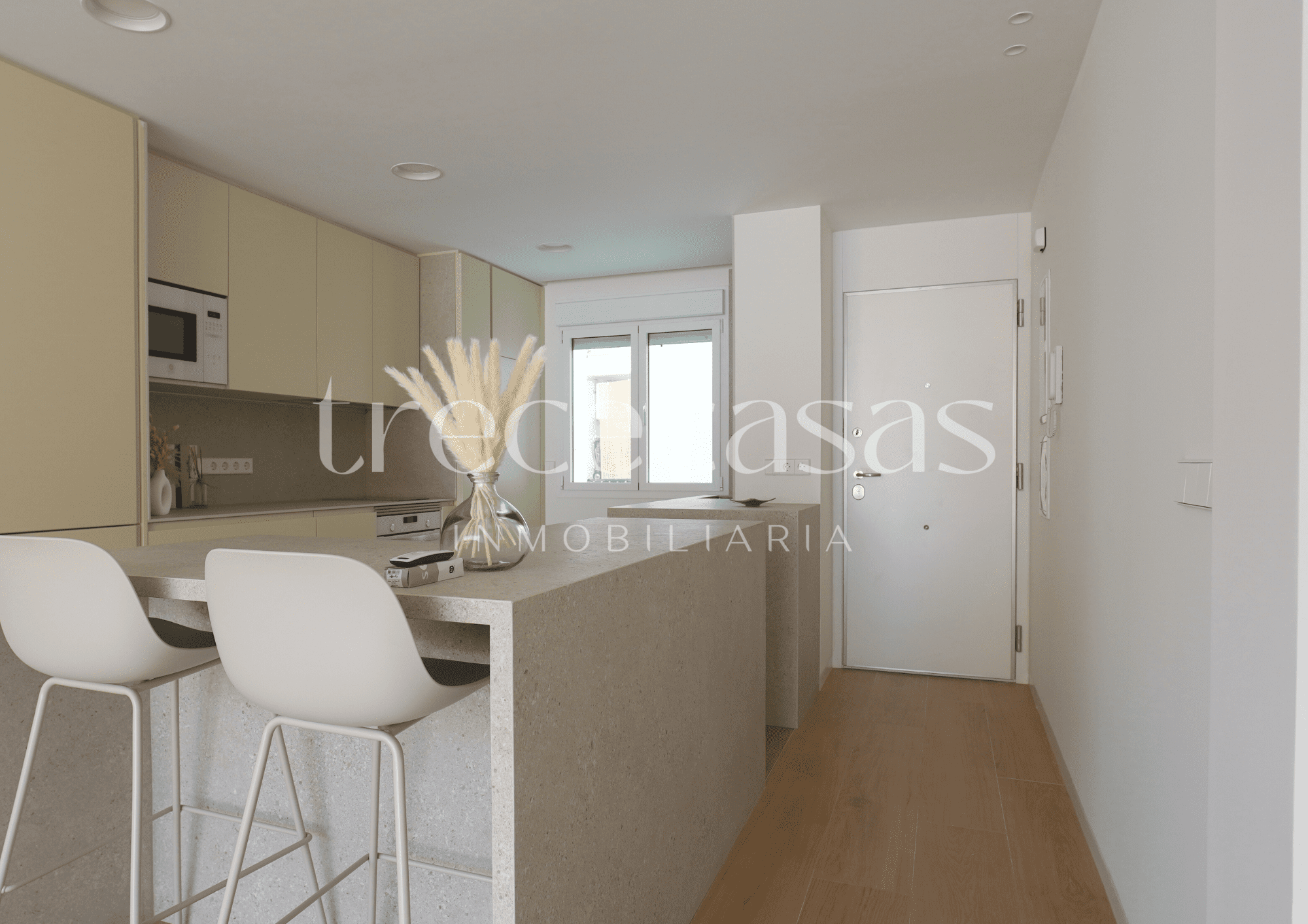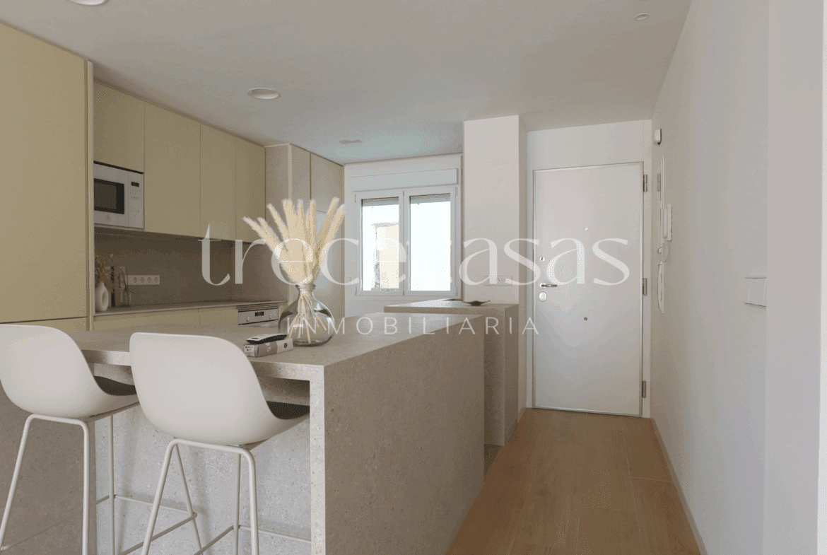 El salón comedor recibe luz natural durante gran parte del día, lo que crea una atmósfera cálida y acogedora. Por otro lado, la cocina independiente está totalmente amueblada y equipada, con una distribución que facilita las tareas diarias sin renunciar al diseño.