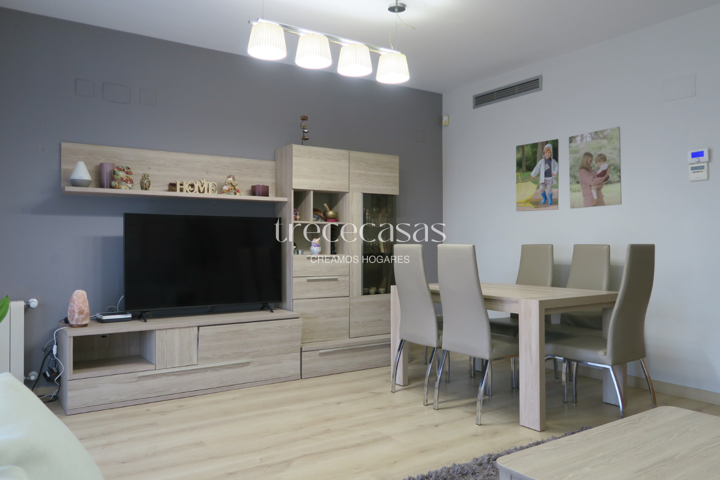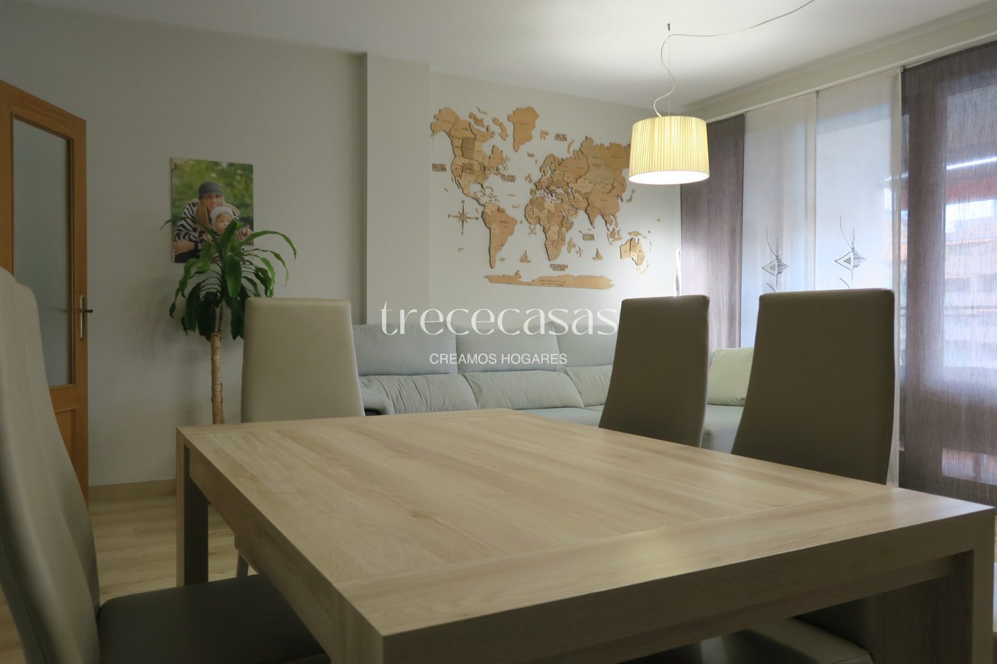 Desde la entrada se percibe amplitud. El salón comedor conecta con una terraza exterior, lo que permite disfrutar de luz natural durante todo el día. Por lo tanto, el espacio resulta funcional y agradable.