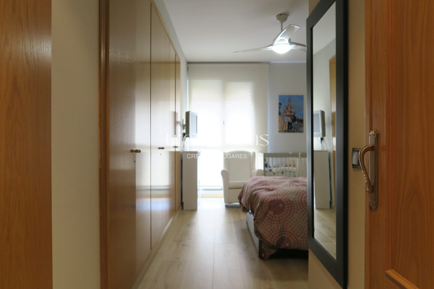 Este piso en Sant Pau Valencia incorpora suelo porcelánico en toda la vivienda, lo que aporta continuidad visual. Los baños han sido renovados con un diseño actual.