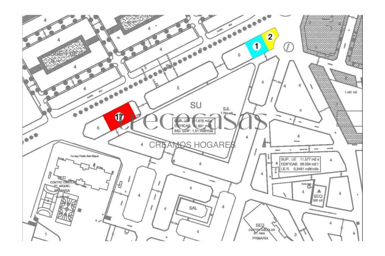 El suelo cuenta con una superficie total de 1.430 metros cuadrados, que corresponde con la superficie mínima en venta. En realidad se trata de tres solares urbanos consolidados que se comercializan de forma conjunta. Además, el acceso se realiza directamente desde vía urbana.