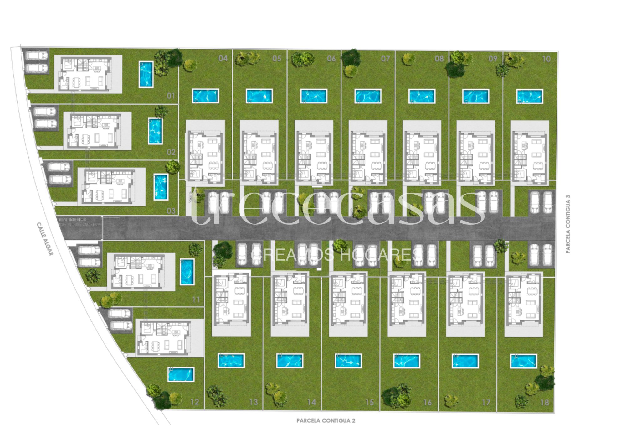 Cada villa dispone de 145 m² construidos, distribuidos en dos plantas más terraza. Además, las parcelas privadas parten desde 310 m², lo que garantiza amplitud exterior y mayor independencia. Por tanto, la vivienda no se limita al interior, sino que se extiende hacia el jardín.