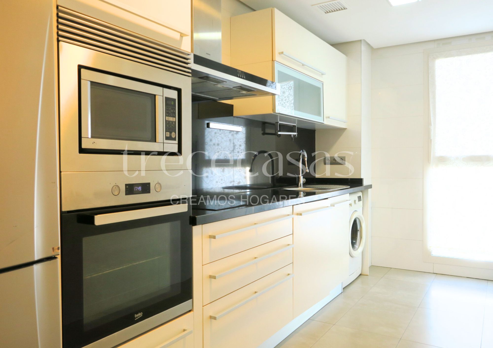 La vivienda se alquila amueblada, con televisores y equipamiento de cocina incluidos, lo que permite instalarse cómodamente desde el primer día. Todas las estancias son exteriores y gozan de una excelente orientación noreste, que aporta luz natural durante gran parte del día.