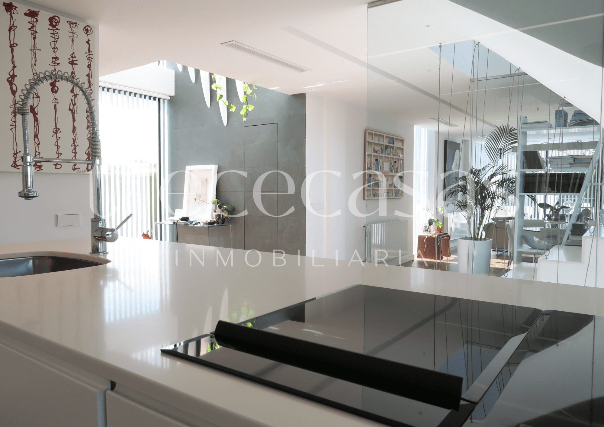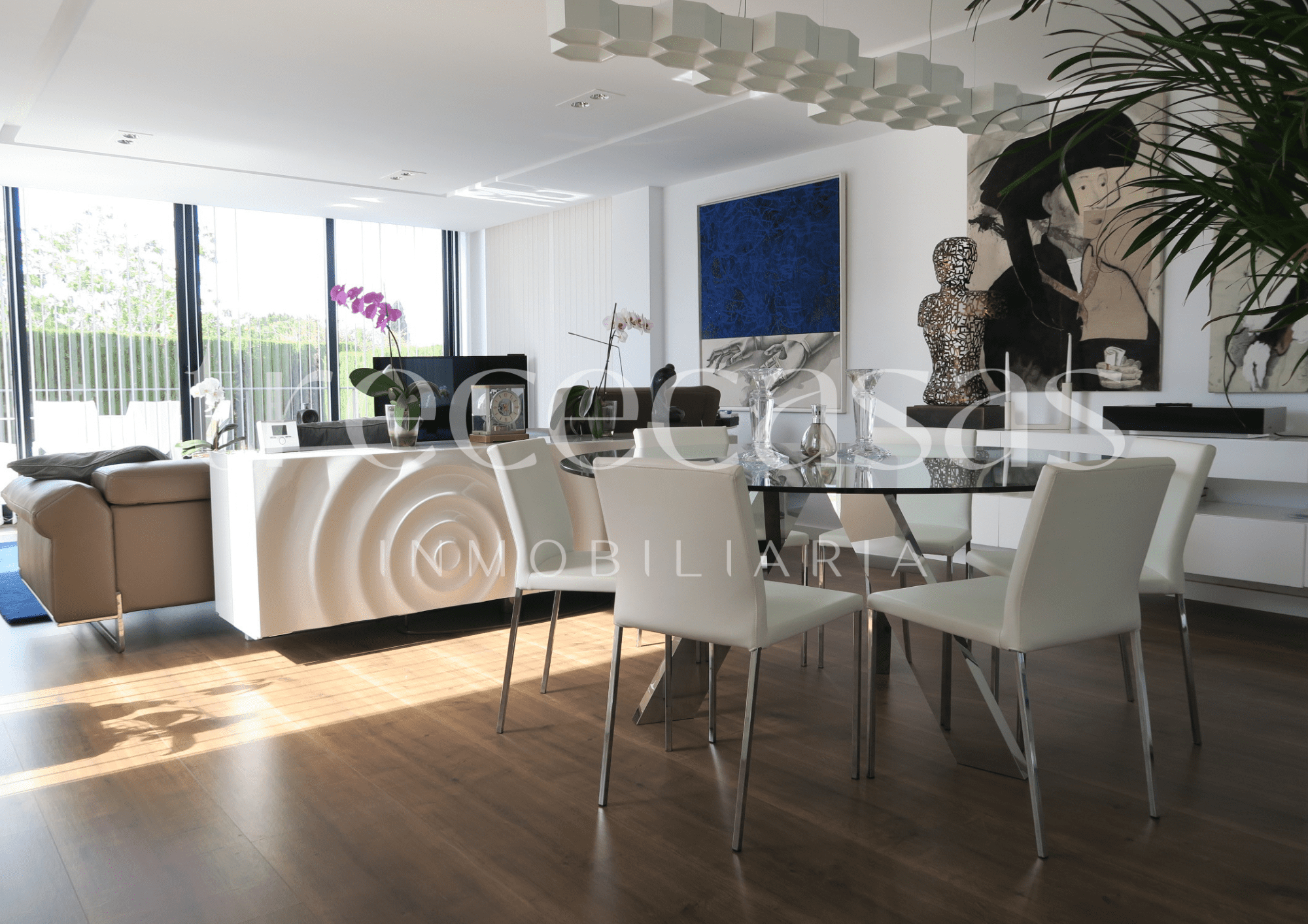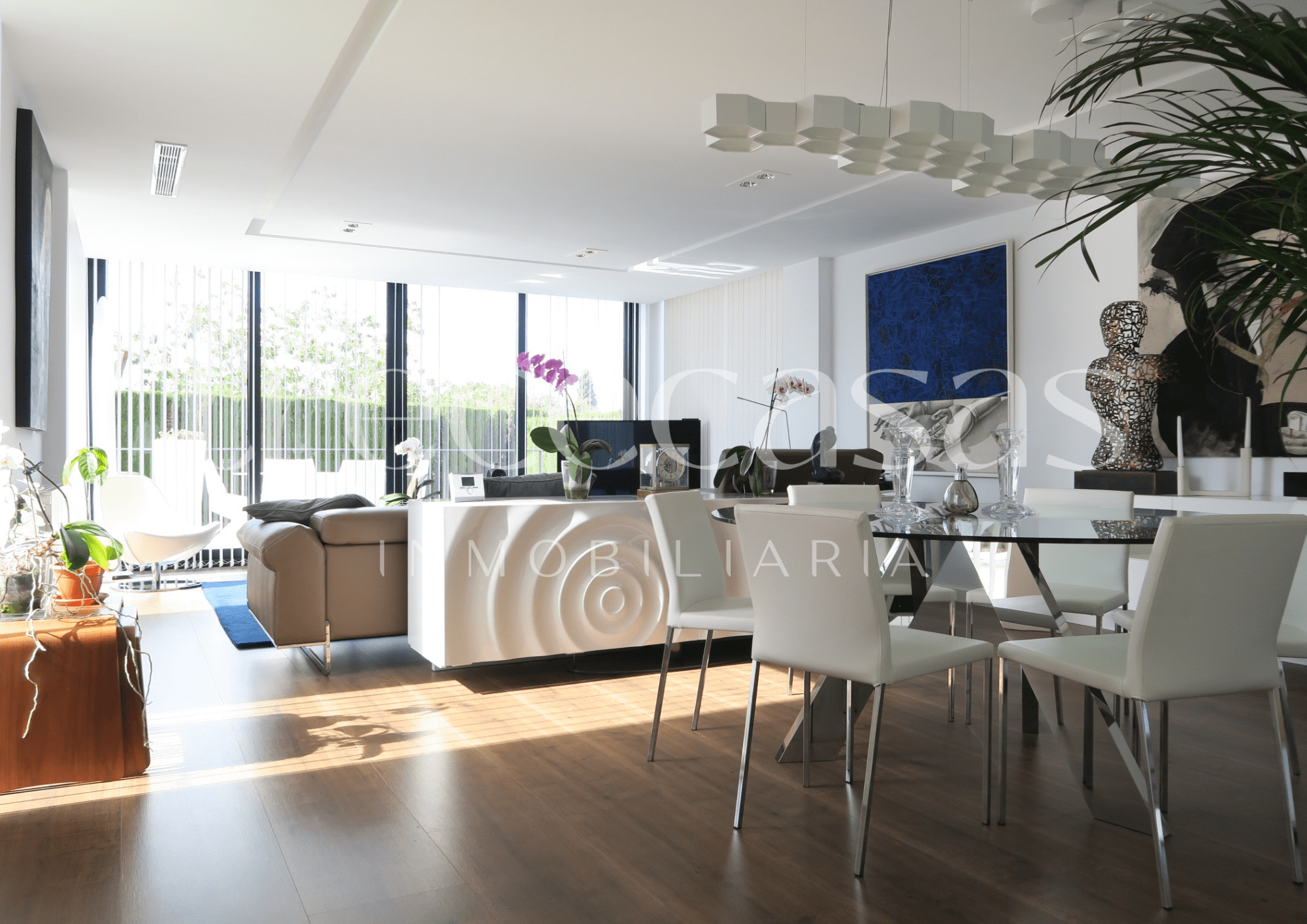 En la primera planta dispone de amplio salón con salida a terraza y cuidado jardin, cocina abierta y aseo de cortesía.