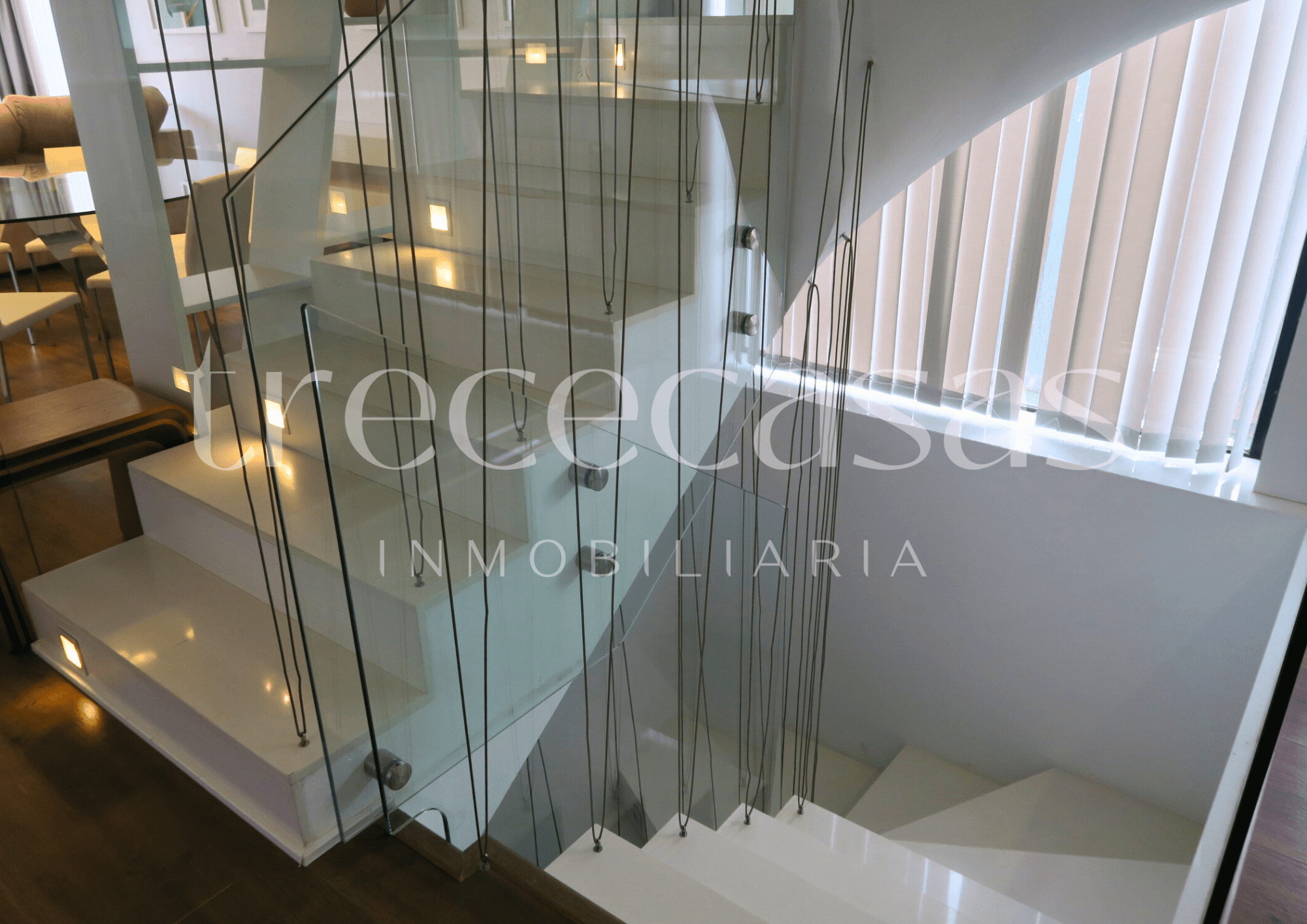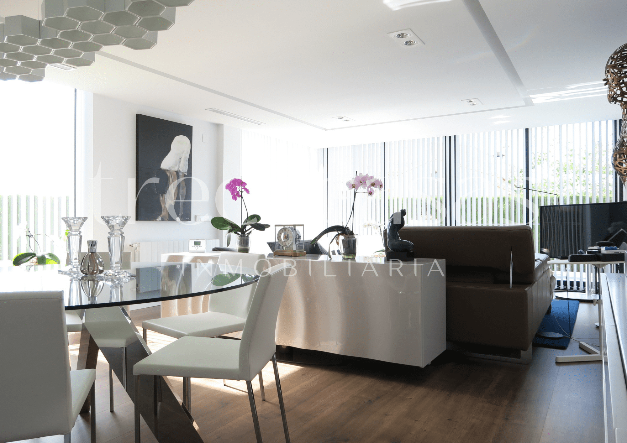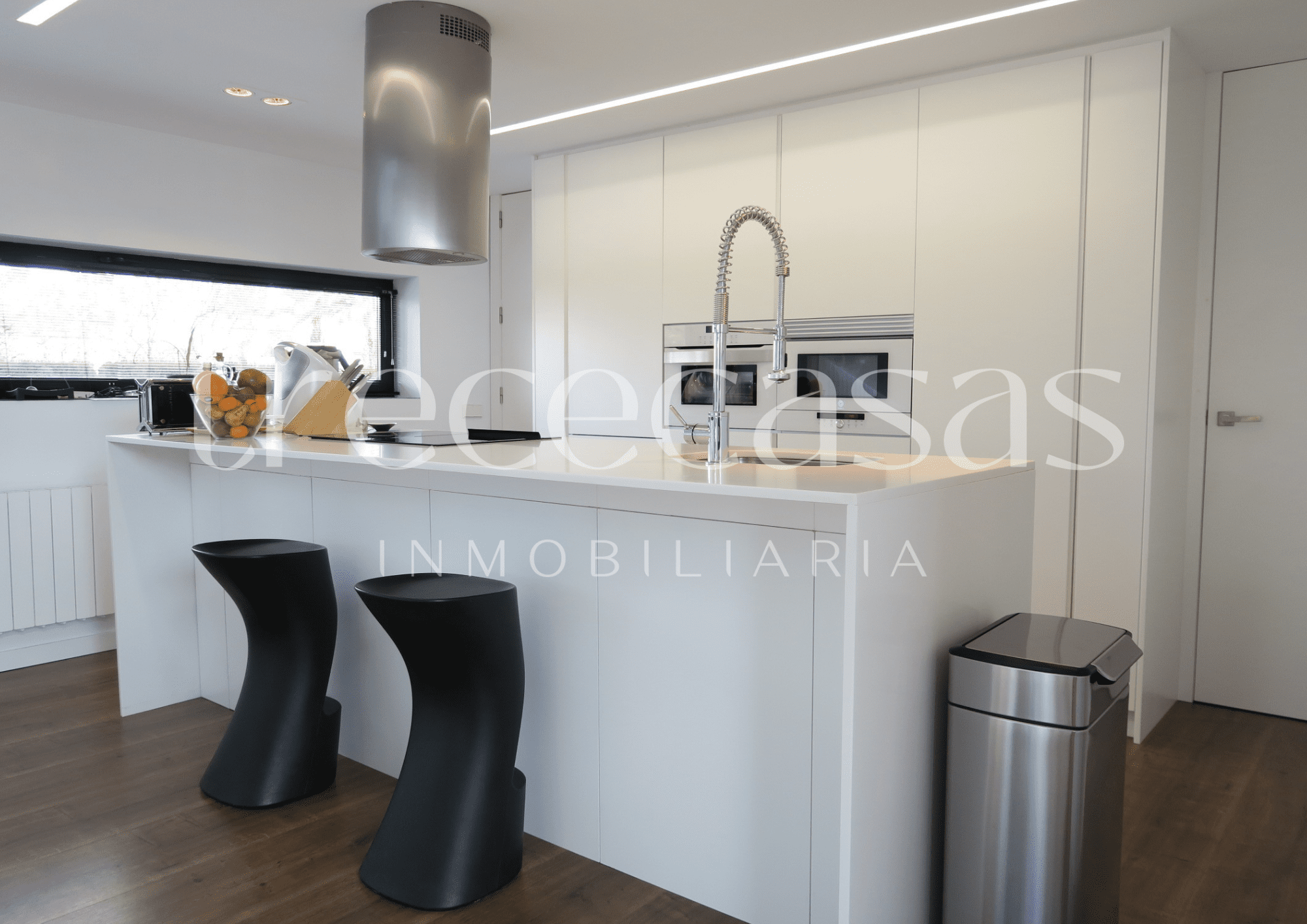 En la primera planta dispone de amplio salón con salida a terraza y cuidado jardin, cocina abierta y aseo de cortesía.
