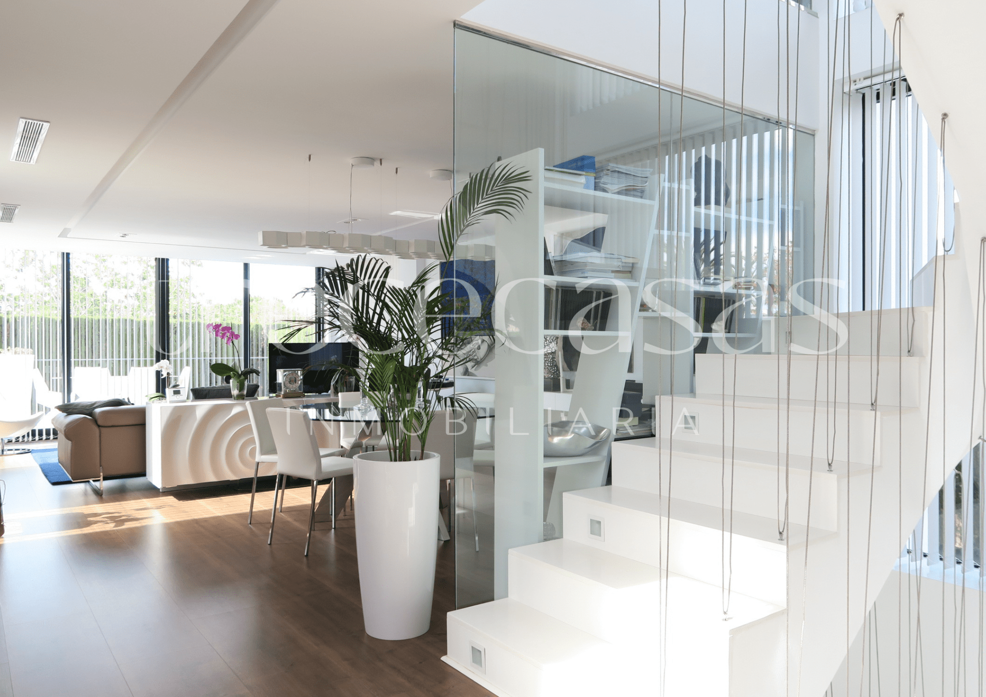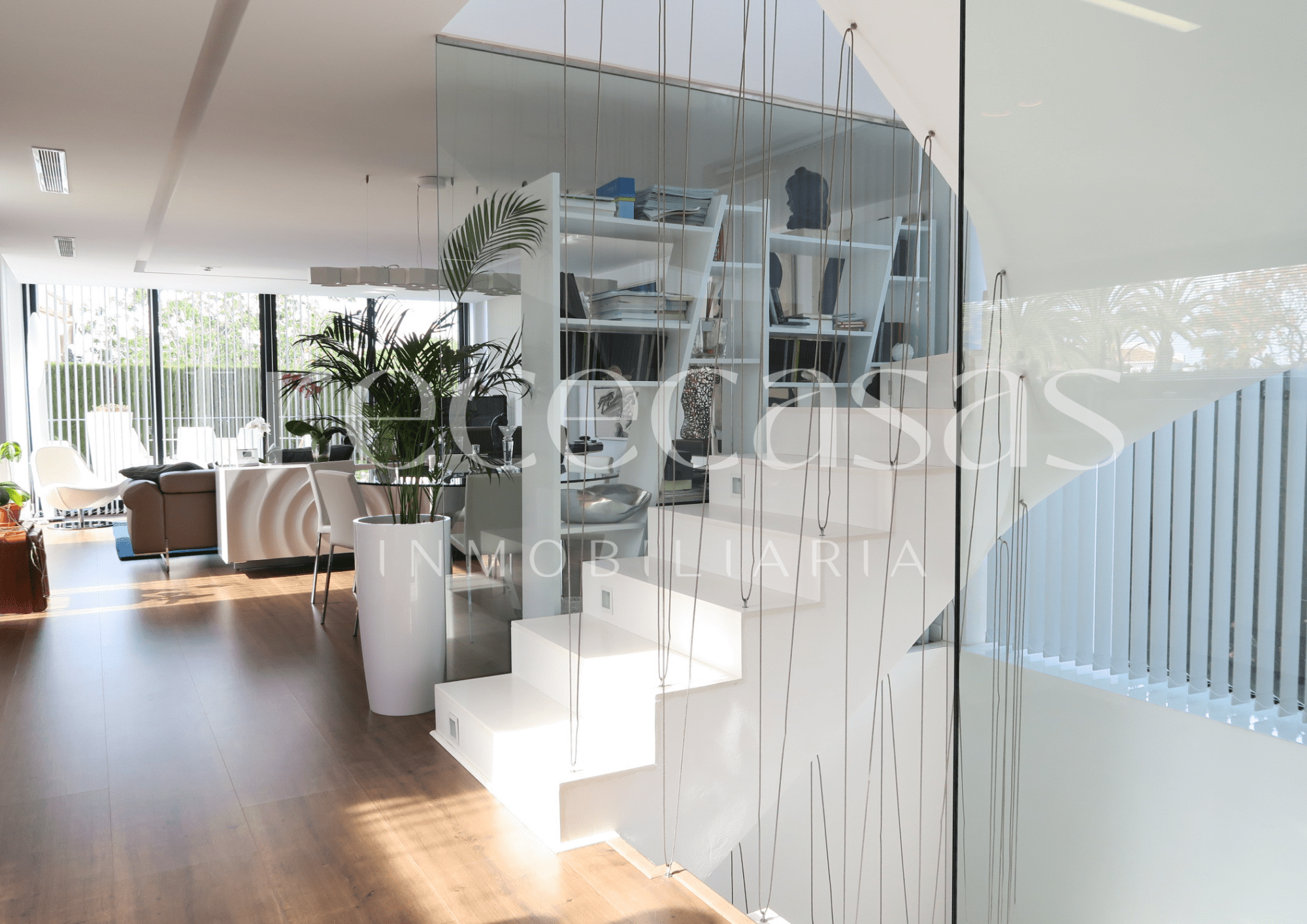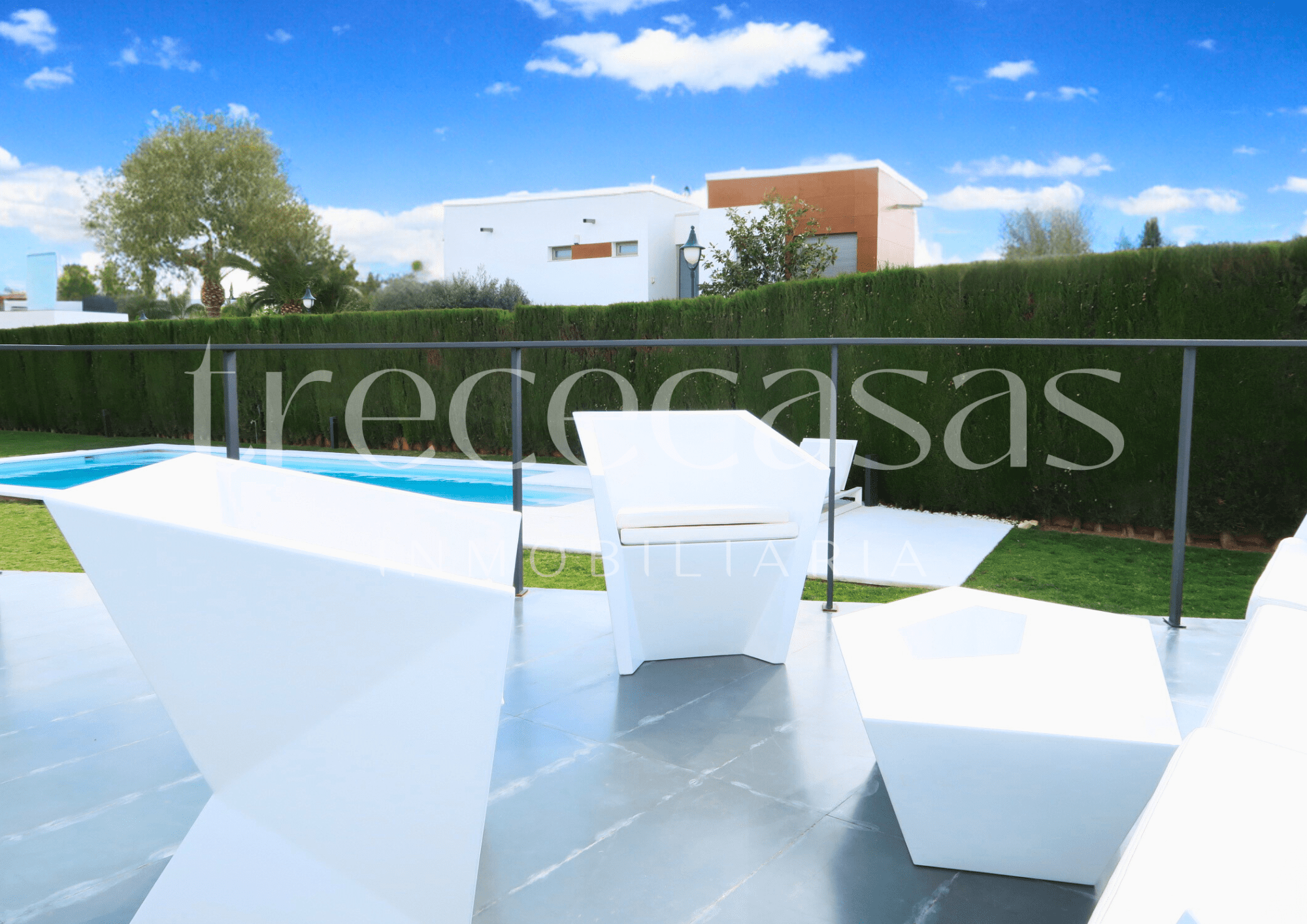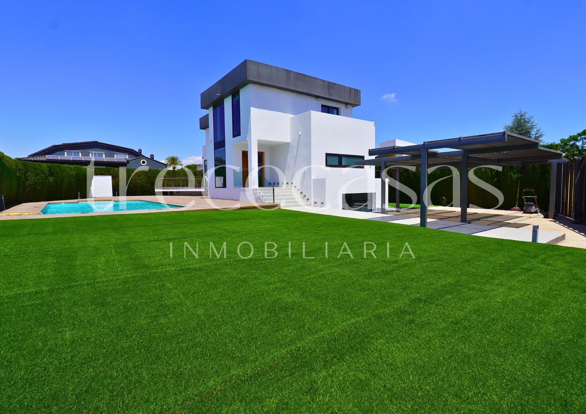 Chalet independiente de 200 m2 sobre parcela de 834 m2 con vistas al golf en la urbanización de lujo de Torre ene Conill.La vivienda se distribuye en dos plantas y sótano.