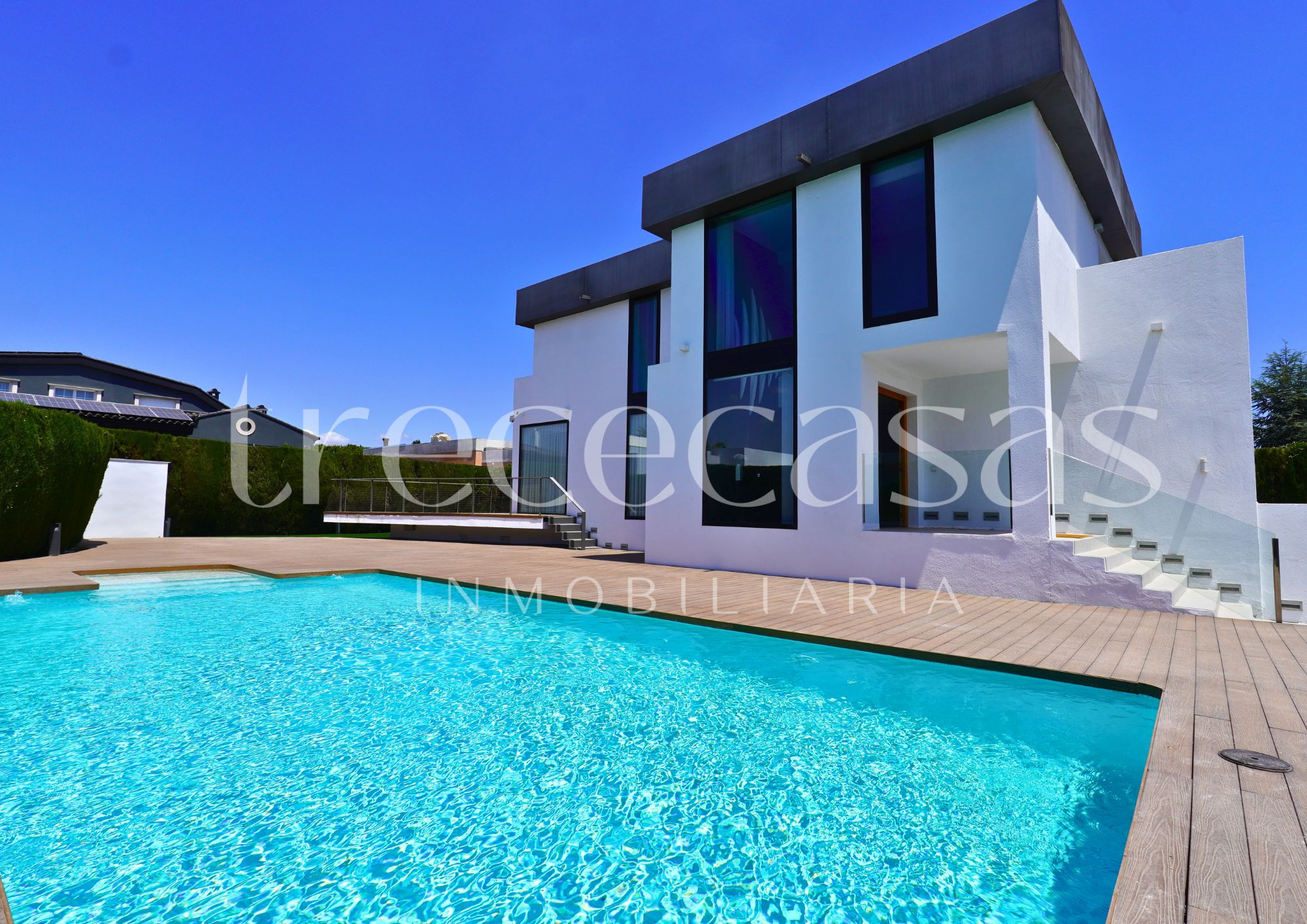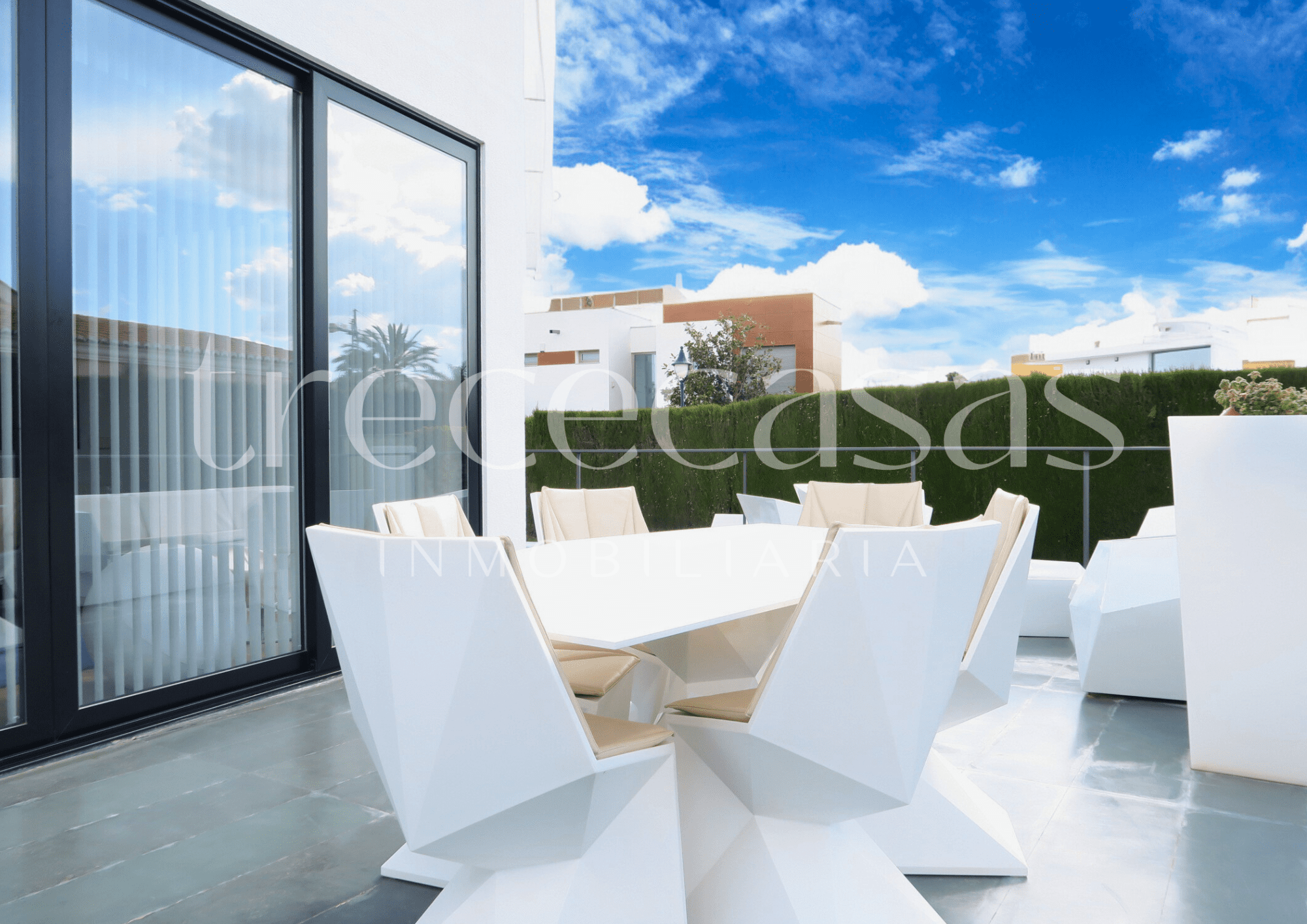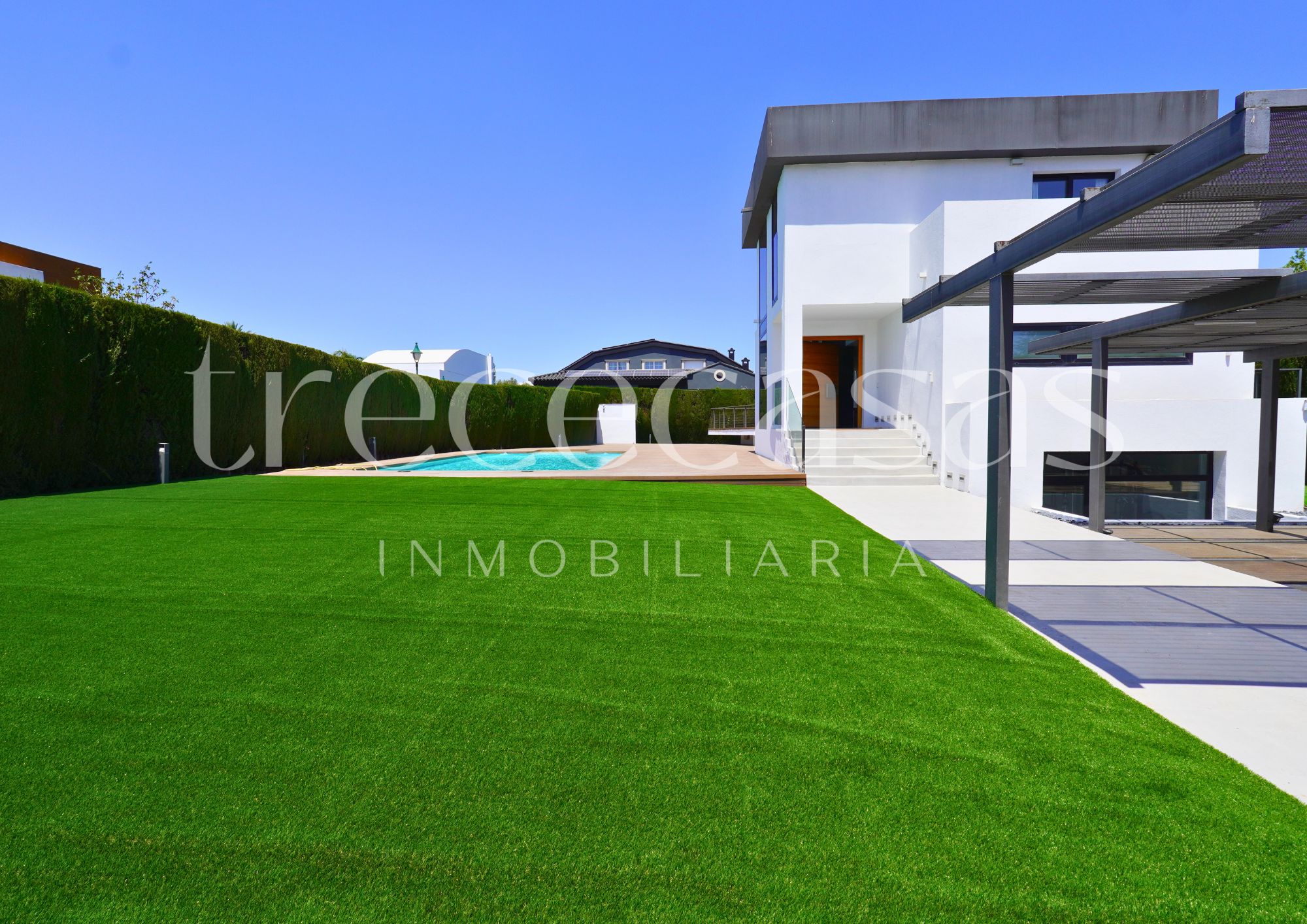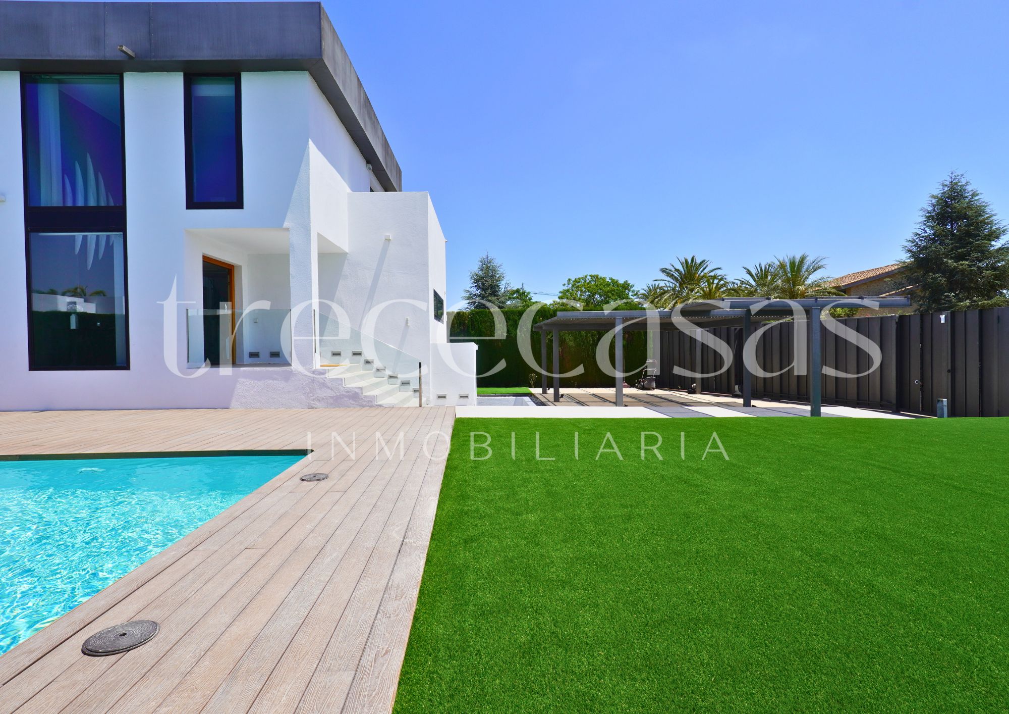 Chalet independiente de 200 m2 sobre parcela de 834 m2 con vistas al golf en la urbanización de lujo de Torre ene Conill.La vivienda se distribuye en dos plantas y sótano.