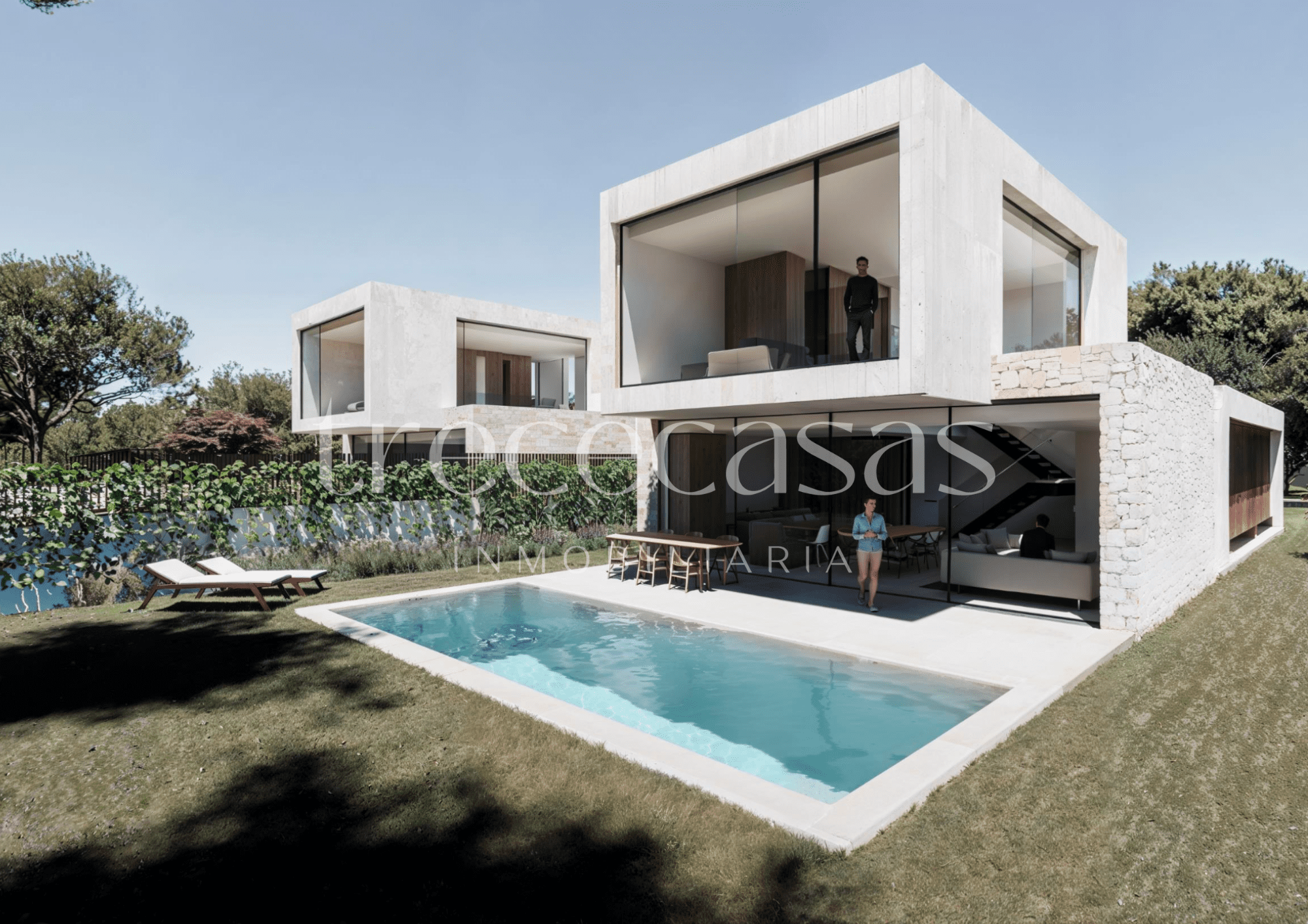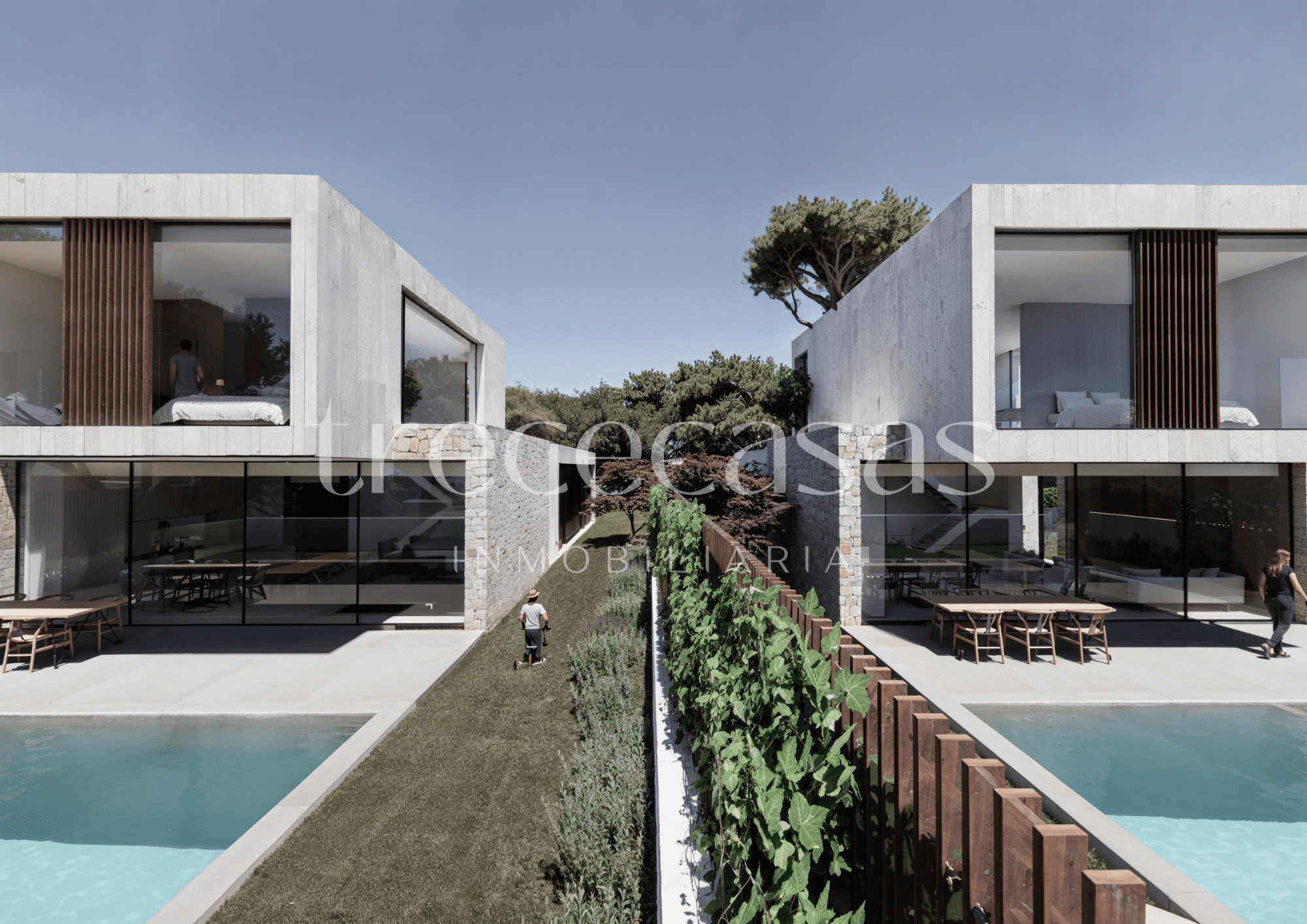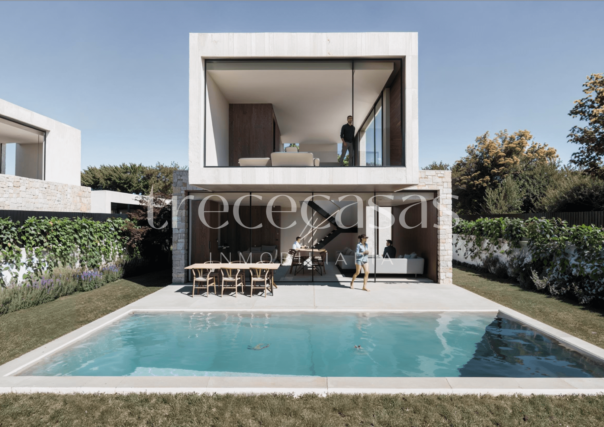 El diseño prioriza la conexión entre interior y exterior. Desde las estancias principales se accede directamente al jardín, lo que permite integrar la vida diaria con el espacio exterior de forma natural. El jardín y la piscina privada se convierten así en una prolongación real de la vivienda.
