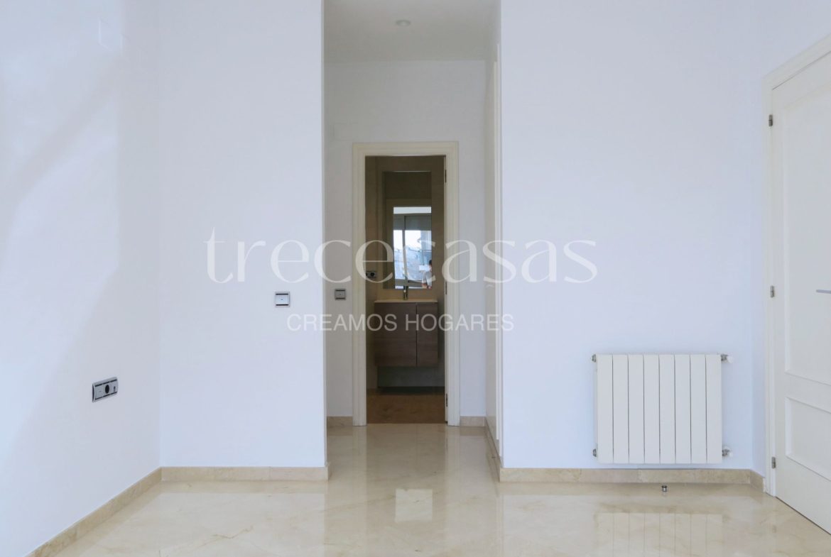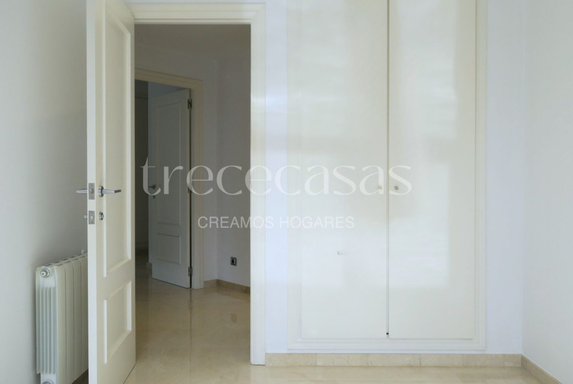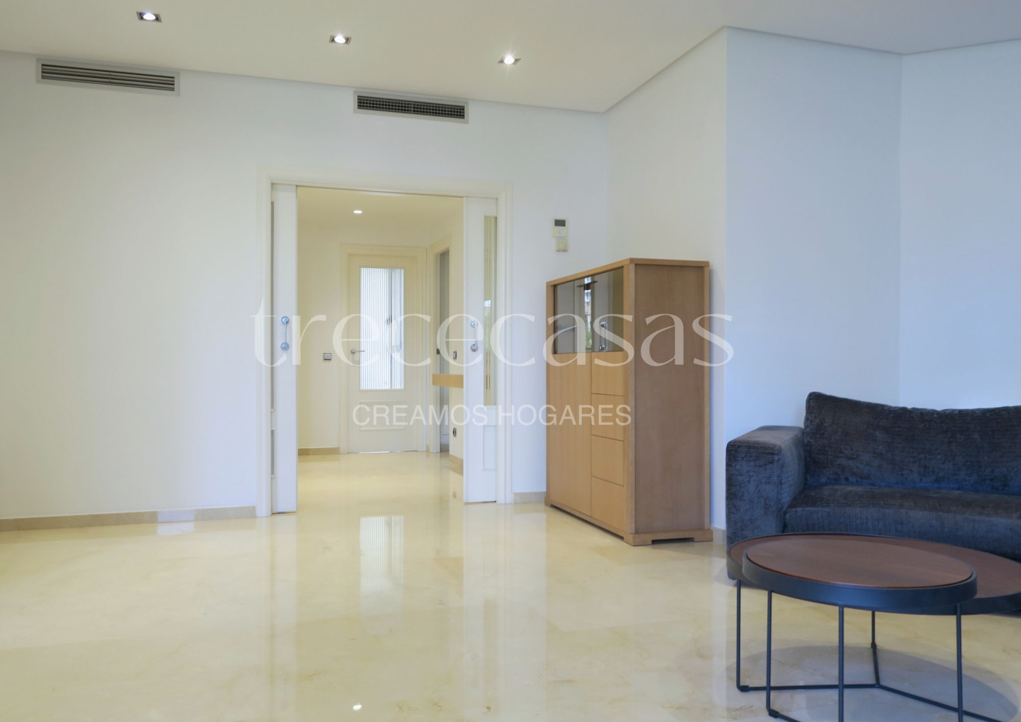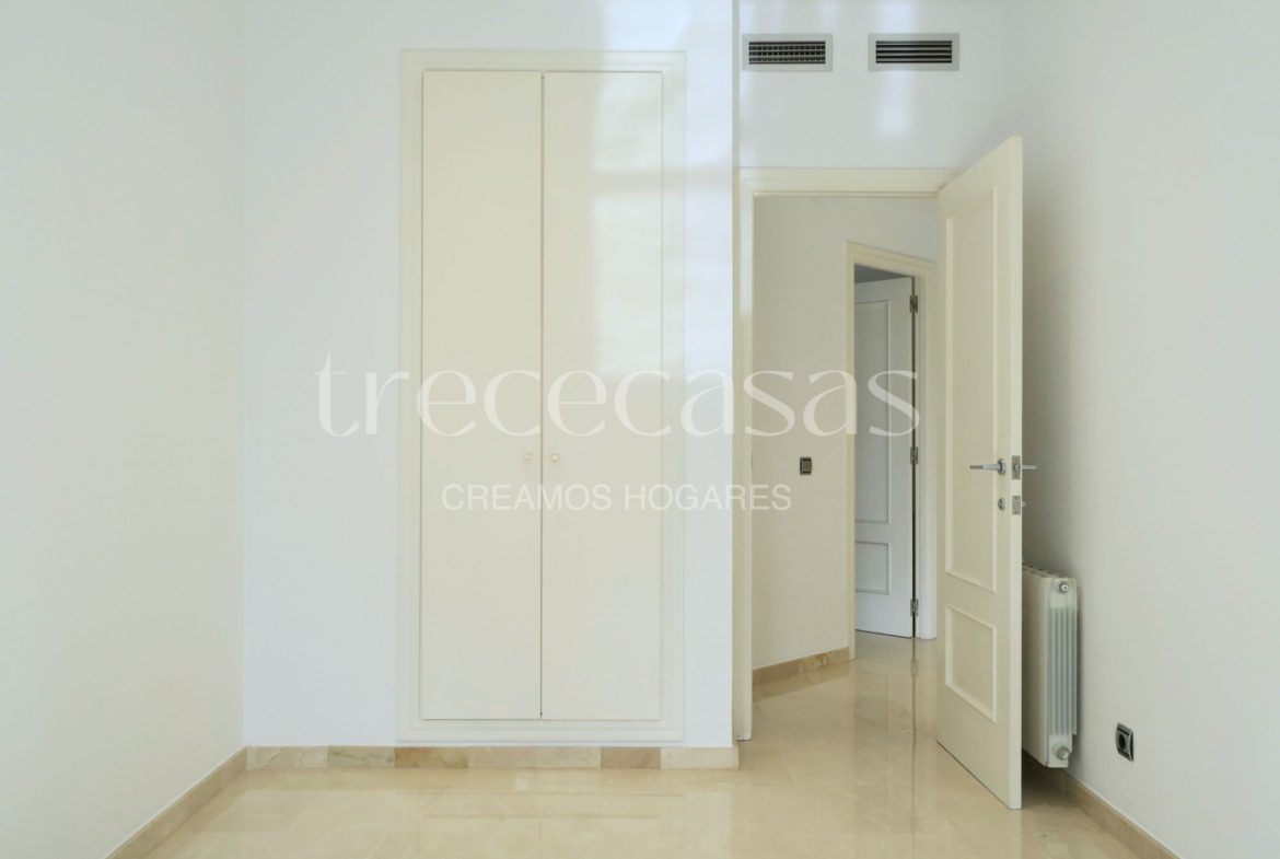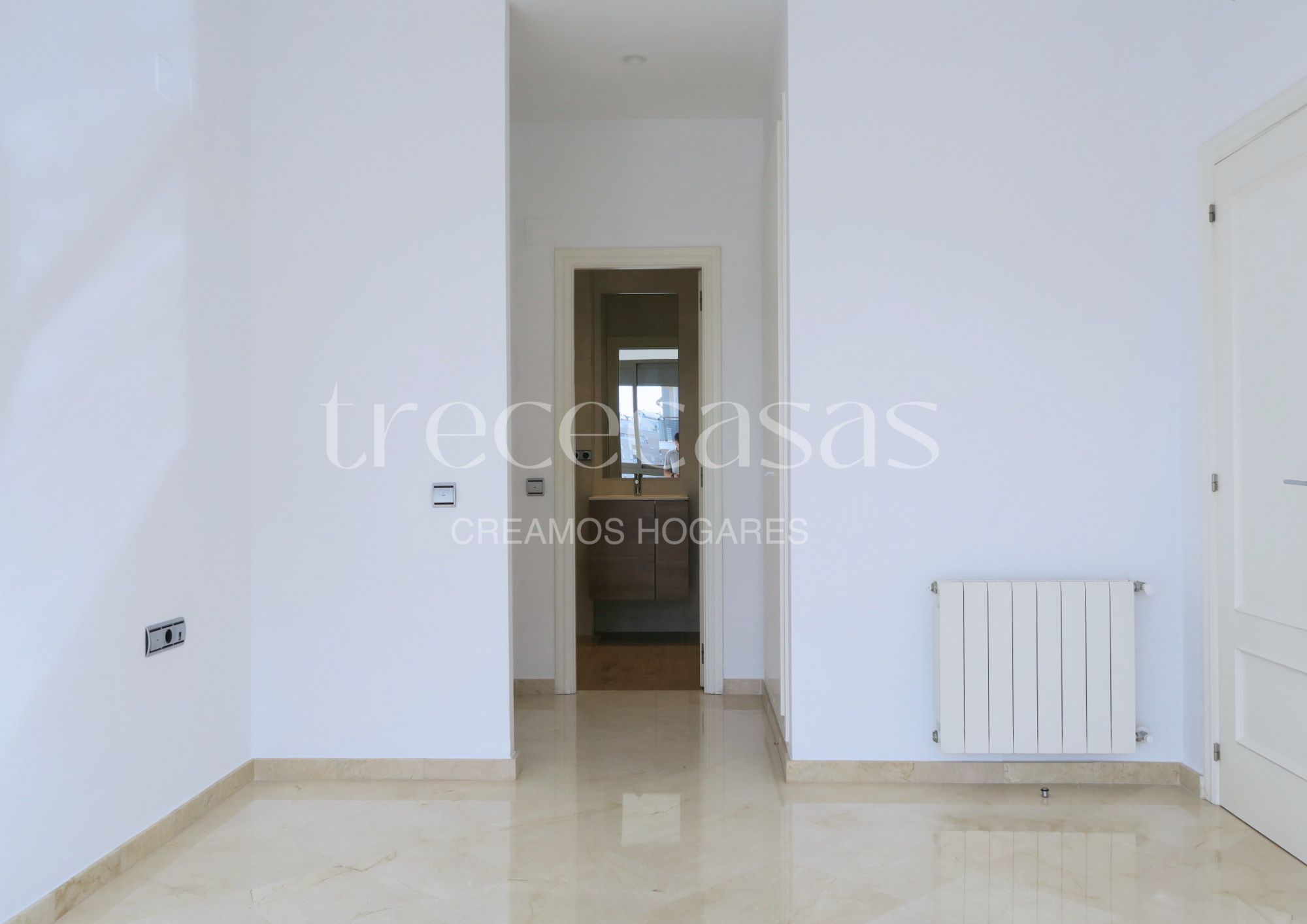 Los suelos de mármol, la carpintería lacada en blanco y los acabados neutros aportan una sensación de elegancia y continuidad en todas las estancias. La vivienda dispone de aire acondicionado por conductos y calefacción por radiadores, garantizando confort en cualquier estación del año.