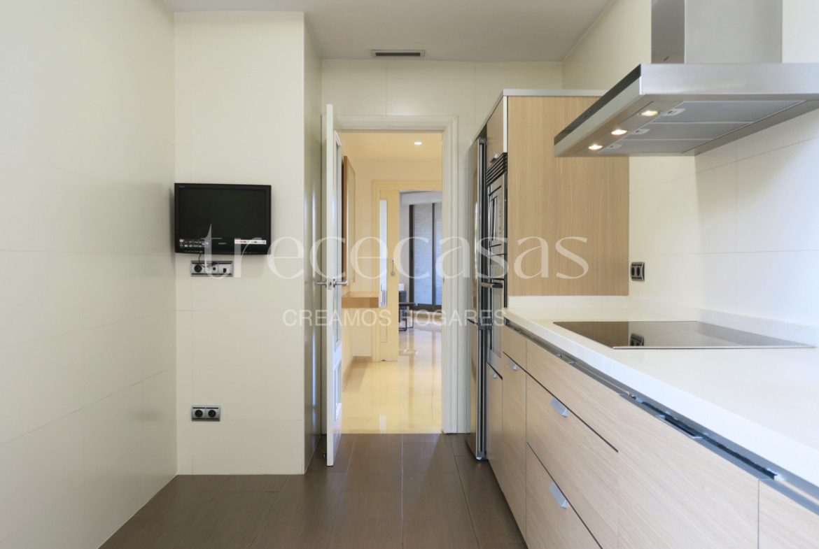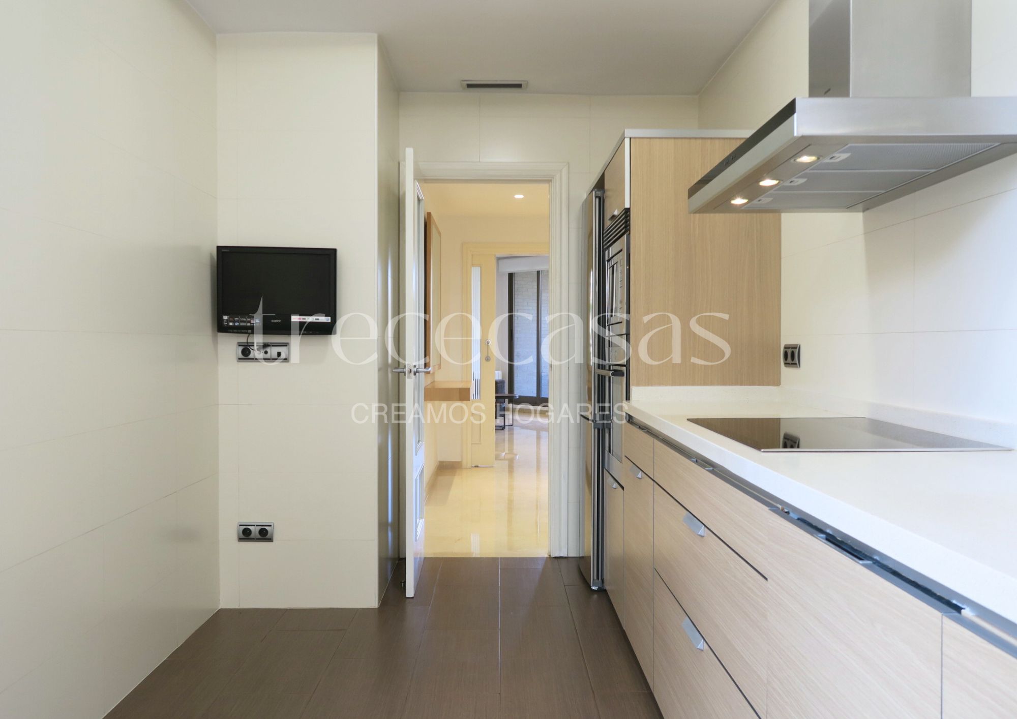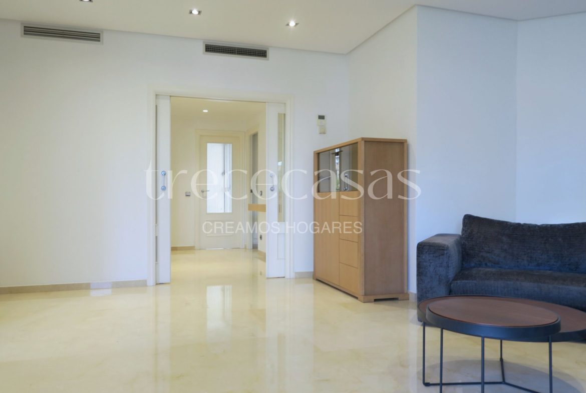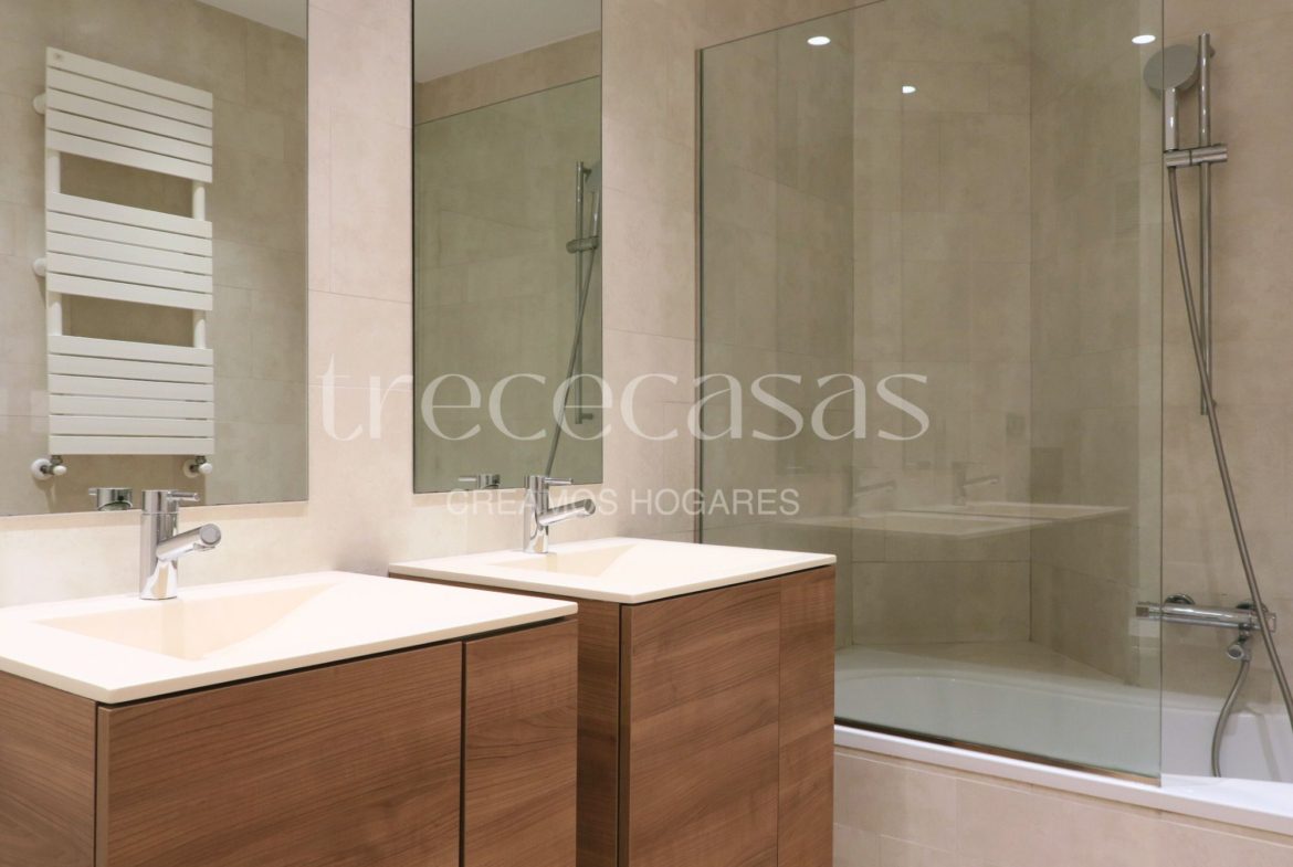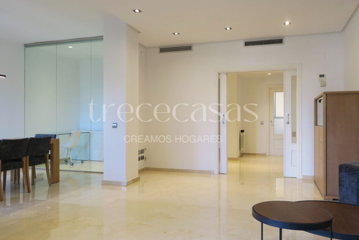 Los suelos de mármol, la carpintería lacada en blanco y los acabados neutros aportan una sensación de elegancia y continuidad en todas las estancias. La vivienda dispone de aire acondicionado por conductos y calefacción por radiadores, garantizando confort en cualquier estación del año.