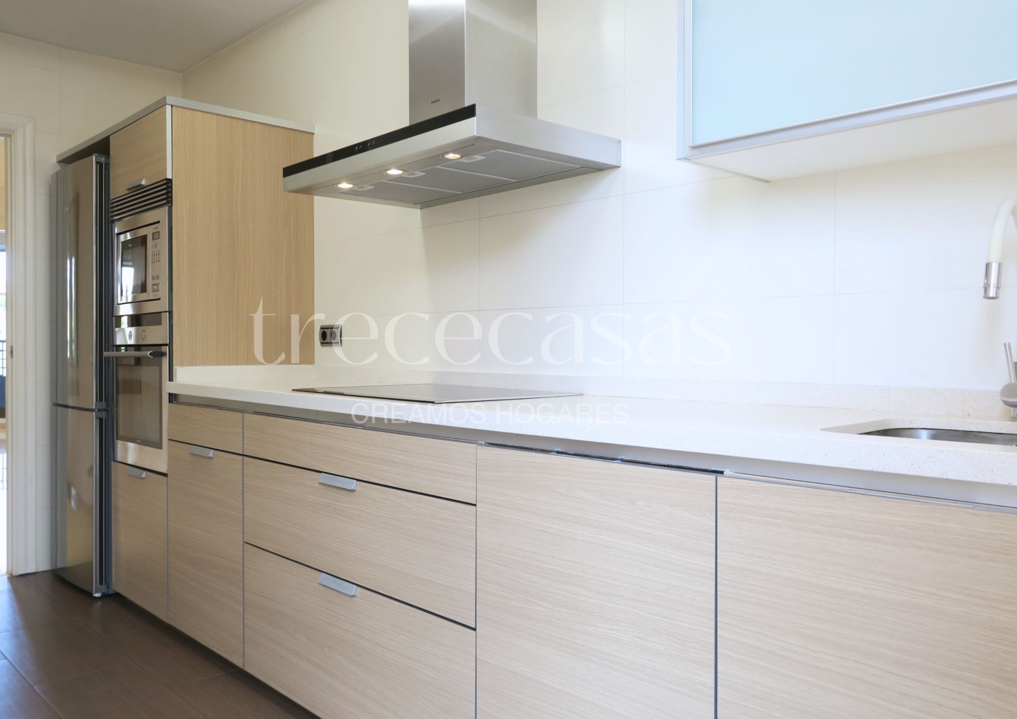 Con 148 m² construidos, la vivienda ofrece una distribución equilibrada y funcional. El salón comedor, amplio y luminoso, se abre a una terraza perfecta para disfrutar del aire libre o compartir comidas en los meses templados. La cocina, reformada y totalmente equipada, destaca por su diseño moderno y su comodidad para el día a día.